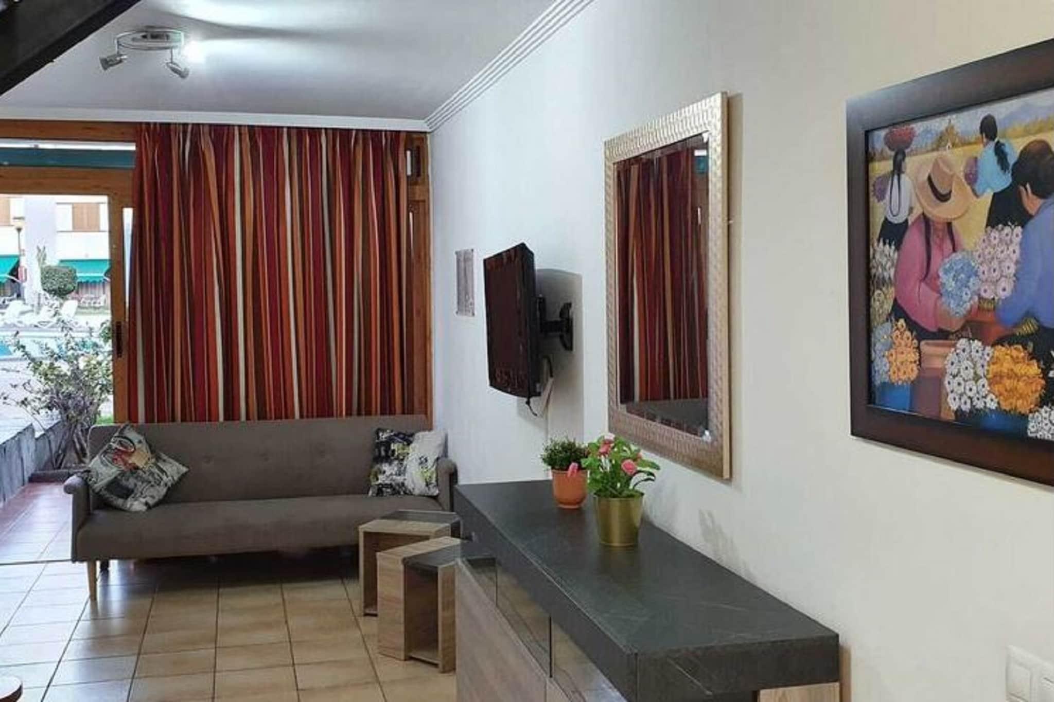 Dette hyggelige feriehus i Maspalomas har 2 soveværelser. Dette hus, ideelt til en familie eller en gruppe på en eventyr ferie kan rumme 4 personer komfortabelt. Huset har en swimmingpool, hvor du kan lave skød eller have forfriskende dukkert. Øen Gran Canaria er ideel til både vandsportentusiaster og vandrere. De hvide sandstrande ligger kun 600 m væk, mens du kan planlægge en vandretur til bjergtoppen 47 km væk. Få ro i kirken 750 m væk, og slå bolden på golfbanen kun 200 m væk fra huset. Supermarked og restauranter er tilgængelige på mindre end 2 km fra huset. Du kan slappe af på liggestolene og få en solbrun efter at have tilbragt tid i vandet i swimmingpoolen. I varme sommerdage kan du forblive komfortabel inde i huset takket være aircondition og for at holde din bil sikker kan du bruge den tilgængelige parkering for gæsten. Gran Canaria lufthavn ligger 28,2 km fra dette sted.