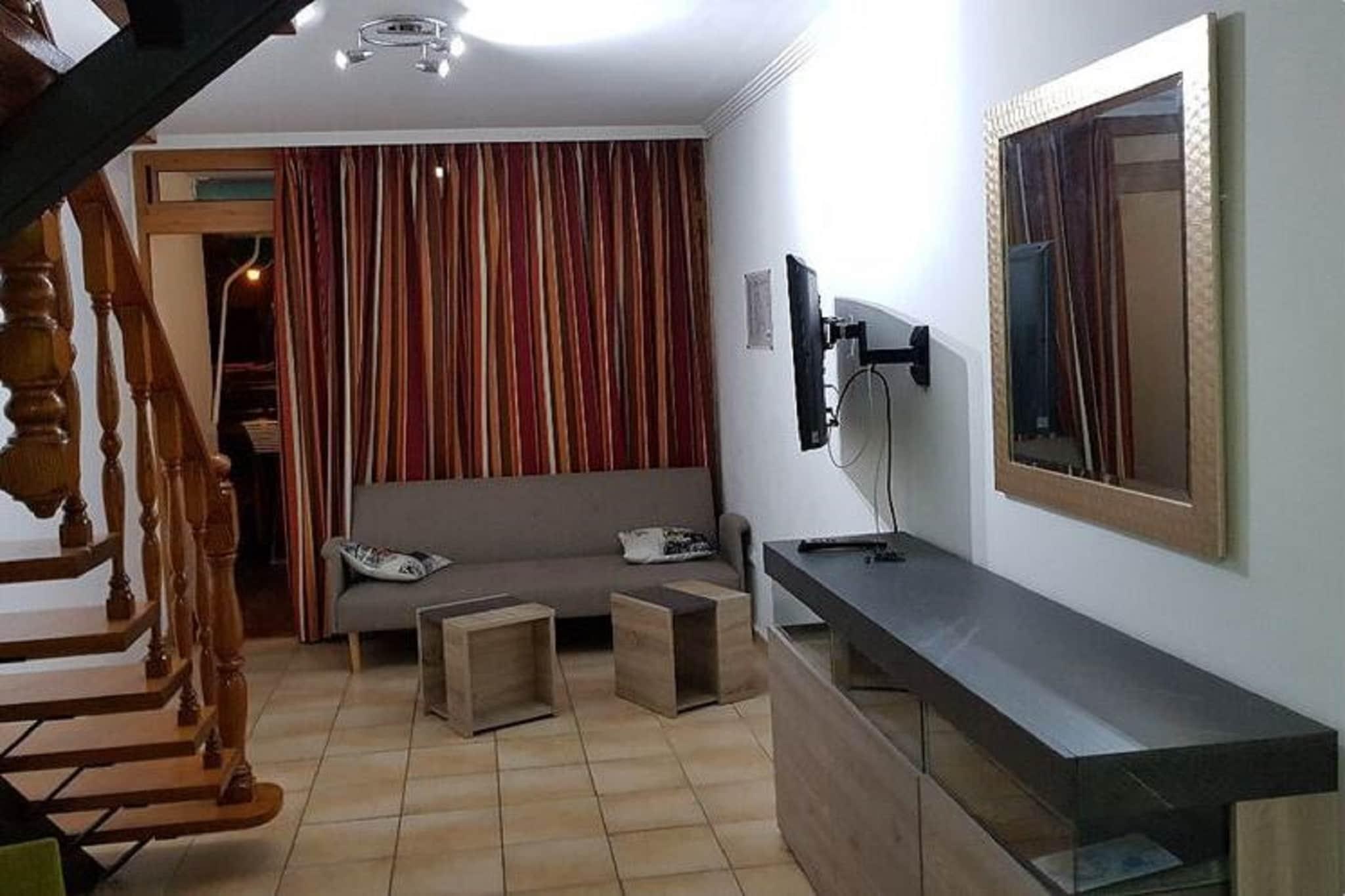 På 1. etage: (Køkken(cooker, brødrister, kaffemaskine, ovn, mikrobølgeovn, køle-fryseskab), stue / spisestue(Fjernsyn, sofahjørne), vaskerum (vaskemaskine, tørreskab)) På 2. etage: (soveværelse(dobbeltseng eller 2 enkeltsenge Senge, klimaanlæg), soveværelse(dobbeltseng eller 2 enkeltsenge Senge, klimaanlæg), badeværelse(bruser, håndvask, toilet)) swimmingpool(deles med andre gæster, udendørs)