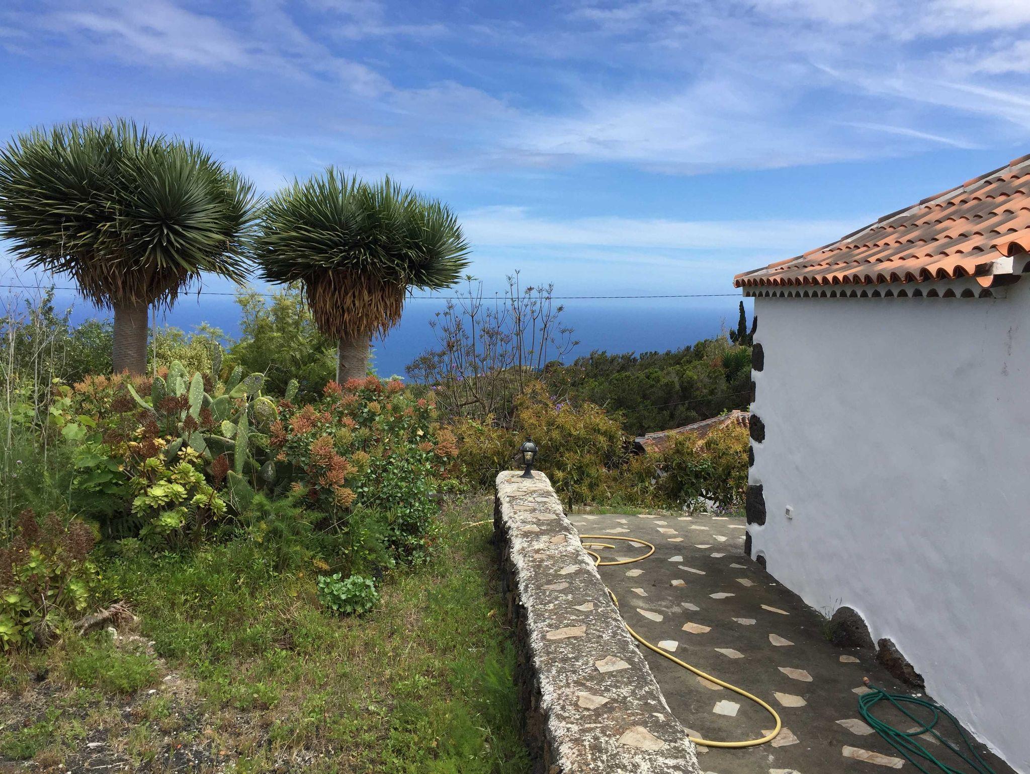 Eine in einem Winkel des Hauses angelegte Terrasse bietet ebenfalls wunderbaren Meer- und Inselblick auf Teneriffa, ist nach Süden geöffnet und sehr geschützt. Einzigartig ist der Sonnenaufgang mit Blick auf den Teide. Auf der Terrasse unmittelbar oberhalb des Hauses befinden sich Schaukel und Sandkasten für Kinder.