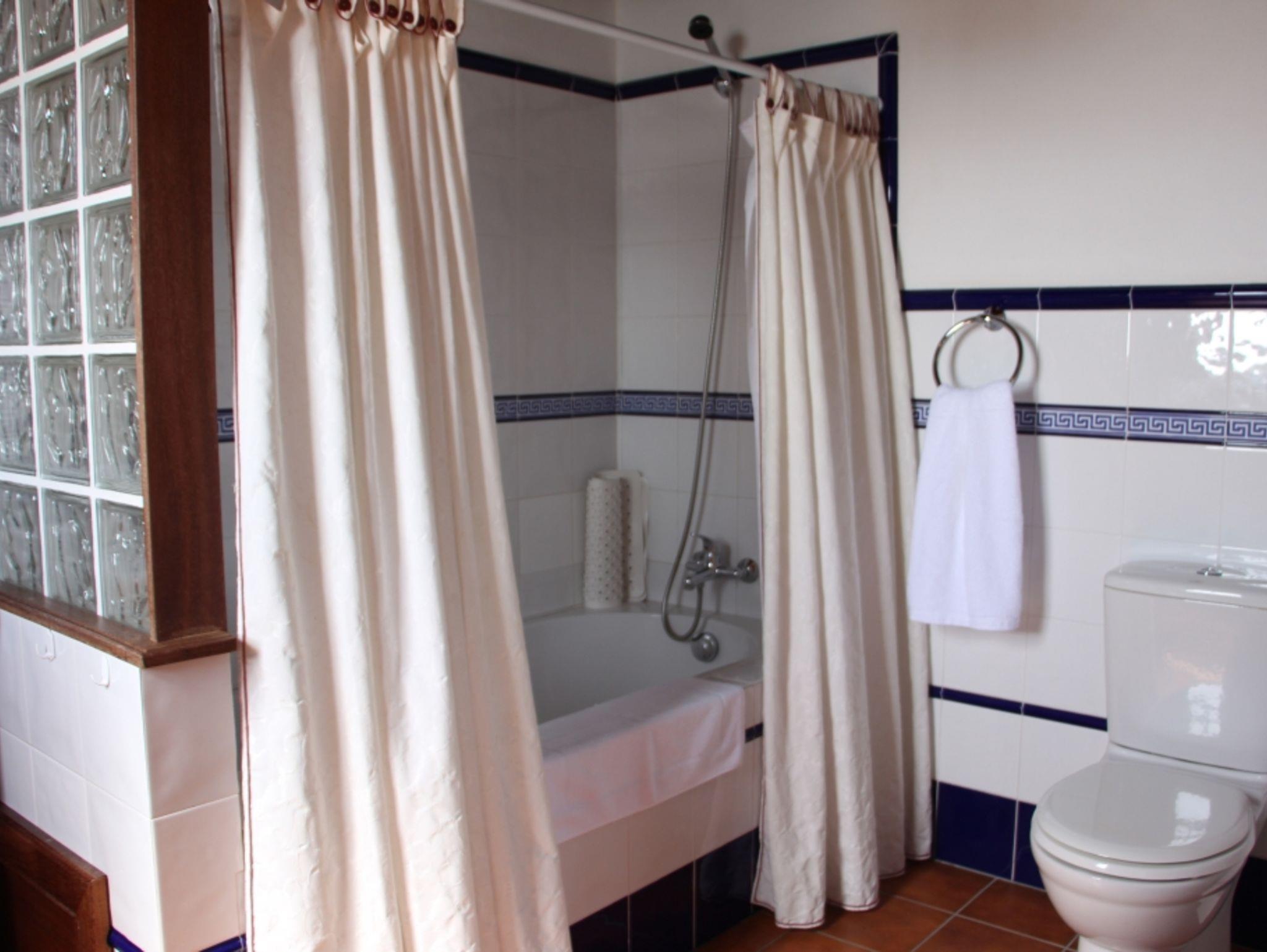 Zwei der Schlafzimmer haben ensuite Bäder, jeweils mit Dusche/WC. Insgesamt gibt es drei Bäder, das dritte Bad mit Dusche/WC ist separat. Alle Schlafzimmer haben fest installierte elektrische Heizkörper, sowie große Schränke für Ihre Urlaubsgarderobe.