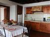 Das 28qm große Wohnzimmer unterteilt sich in einen gemütlichen Wohnbereich mit Kamin, Sofa und zwei Schaukelstühlen sowie einen Essbereich mit großem Esstisch und integrierter Küchenzeile. Die Küche ist gut ausgestattet.