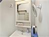 Neben der Küche befindet sich eine Nische, in der sich die Waschmaschine, ein Trockner und Putzmittel, etc befinden. Auch zum kleinen Duschbad geht es durch die Küche. Neben einem Schnellheizgerät, Vergrößerungsspiegel, Duschkabine, Waschbecken, Toilette und etwas Stauraum gibt es hier nur wenig Platz. Anzumerken ist an dieser Stelle, dass es auf der oberen Etage, wo sich die beiden Hauptschlafzimmer befinden, kein Badezimmer gibt.