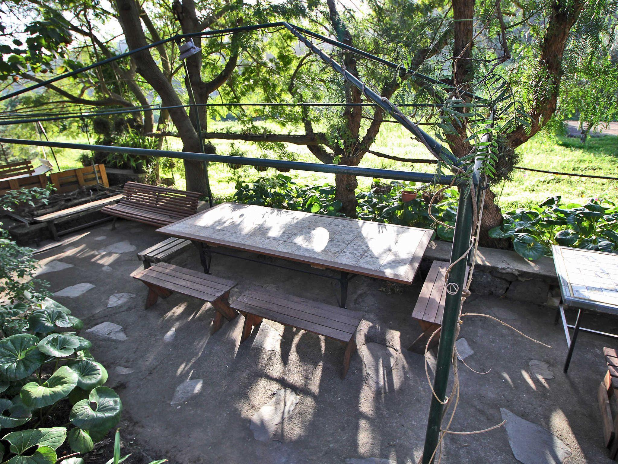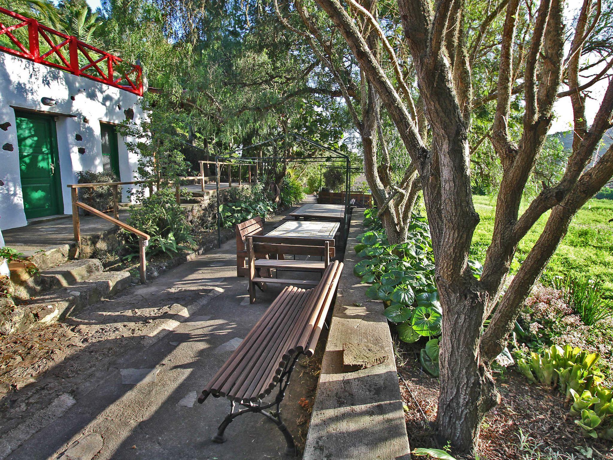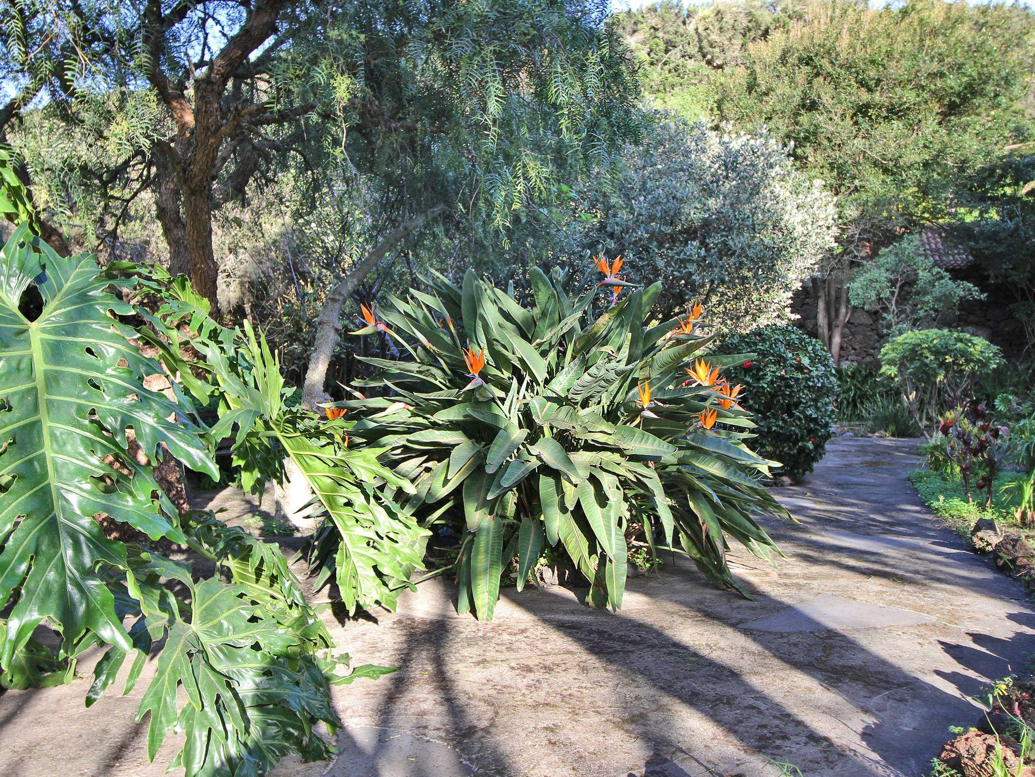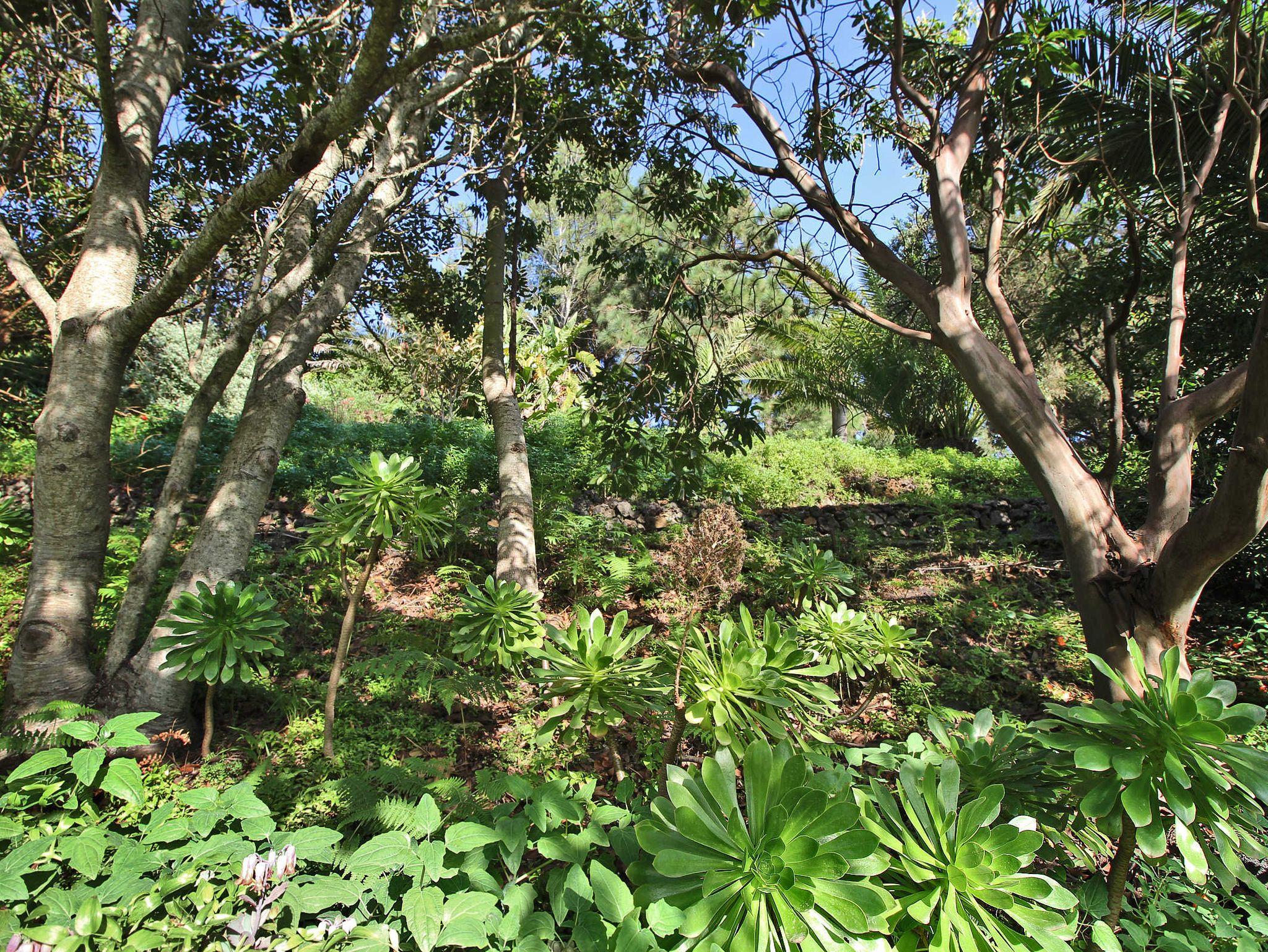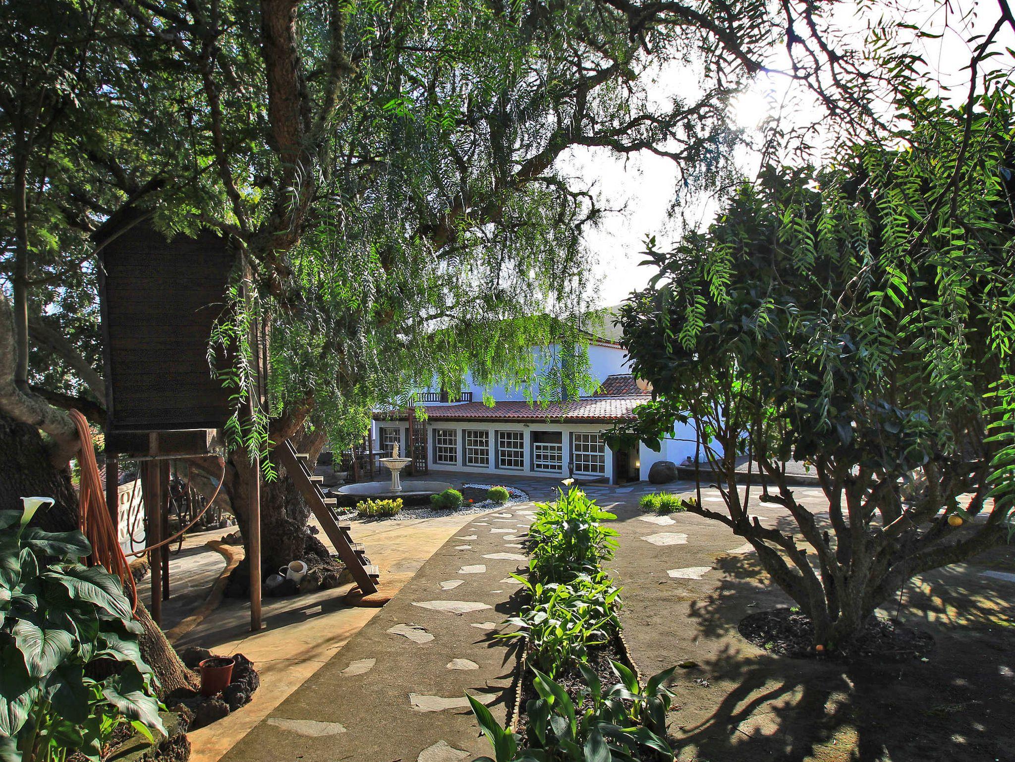 Auf dem Grundstück wachsen autochthone Bäume, die für den thermophilen Lorbeewald typisch sind, wie z. B. Barbusano (Apollonias barbujana), der Kanarische Erdbeerbaum (Arbustus canariensis), der Drachenbaum (Dracaena draco), der wilde Olivenbaum (Olea cerasiformis) und der Palo blanco (Picconia excelsa). Auch findet man hier einheimische Pflänzchen, wie die Kanarische Glockenblume Bicácaro oder eingeschleppte Zierpflanzen, wie Strelitzien und andere beeindruckende subtropische Gewächse sowie Obst- und Zitrusbäume.
