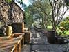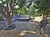 Der Platz vor dem Haus ist sehr schön angelegt mit einem Springbrunnen, Schattenbäumen, Astschaukel, Beleuchtung, Bänken sowie einem idyllischen, etwas geschützten Essplatz.