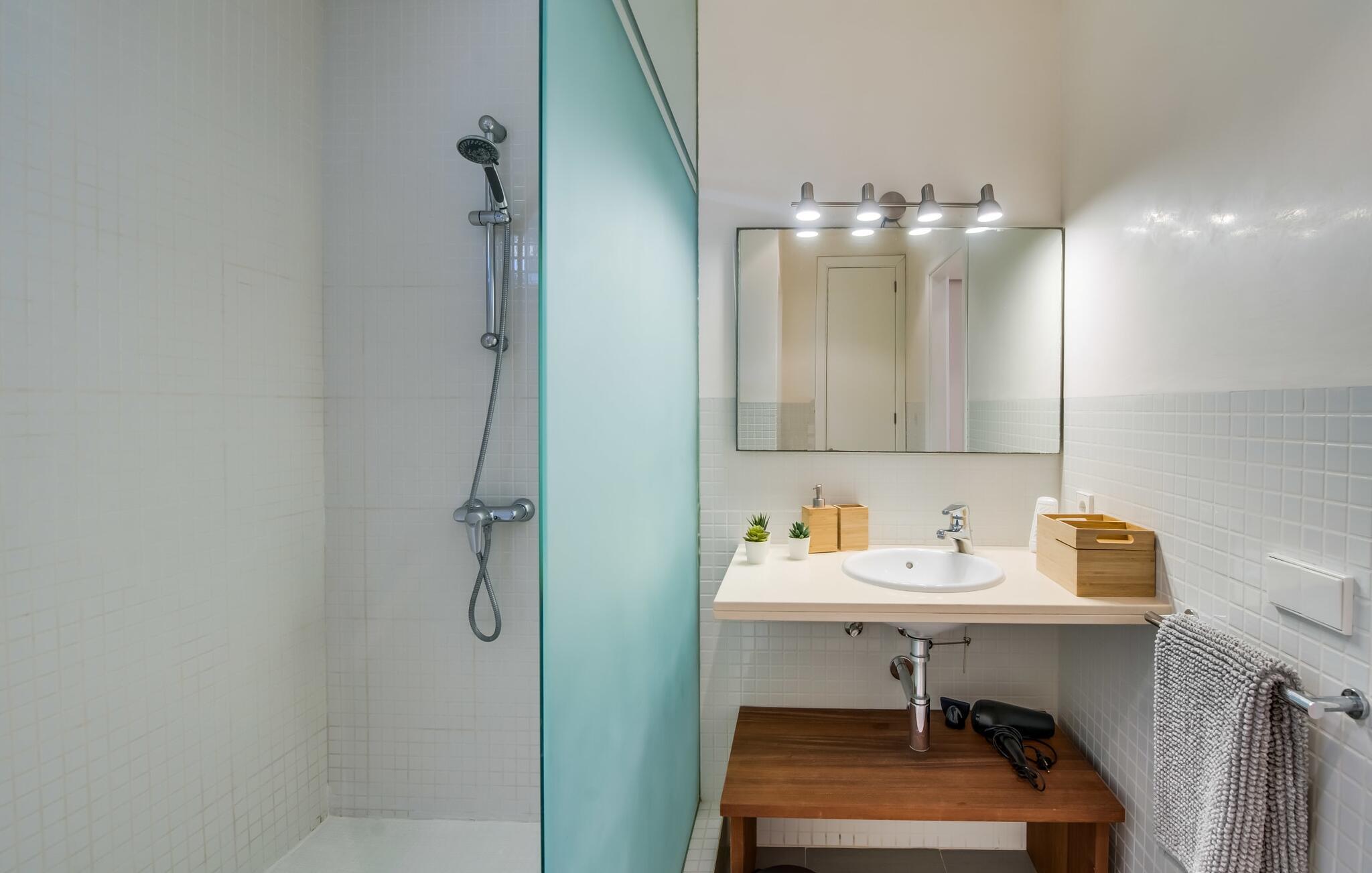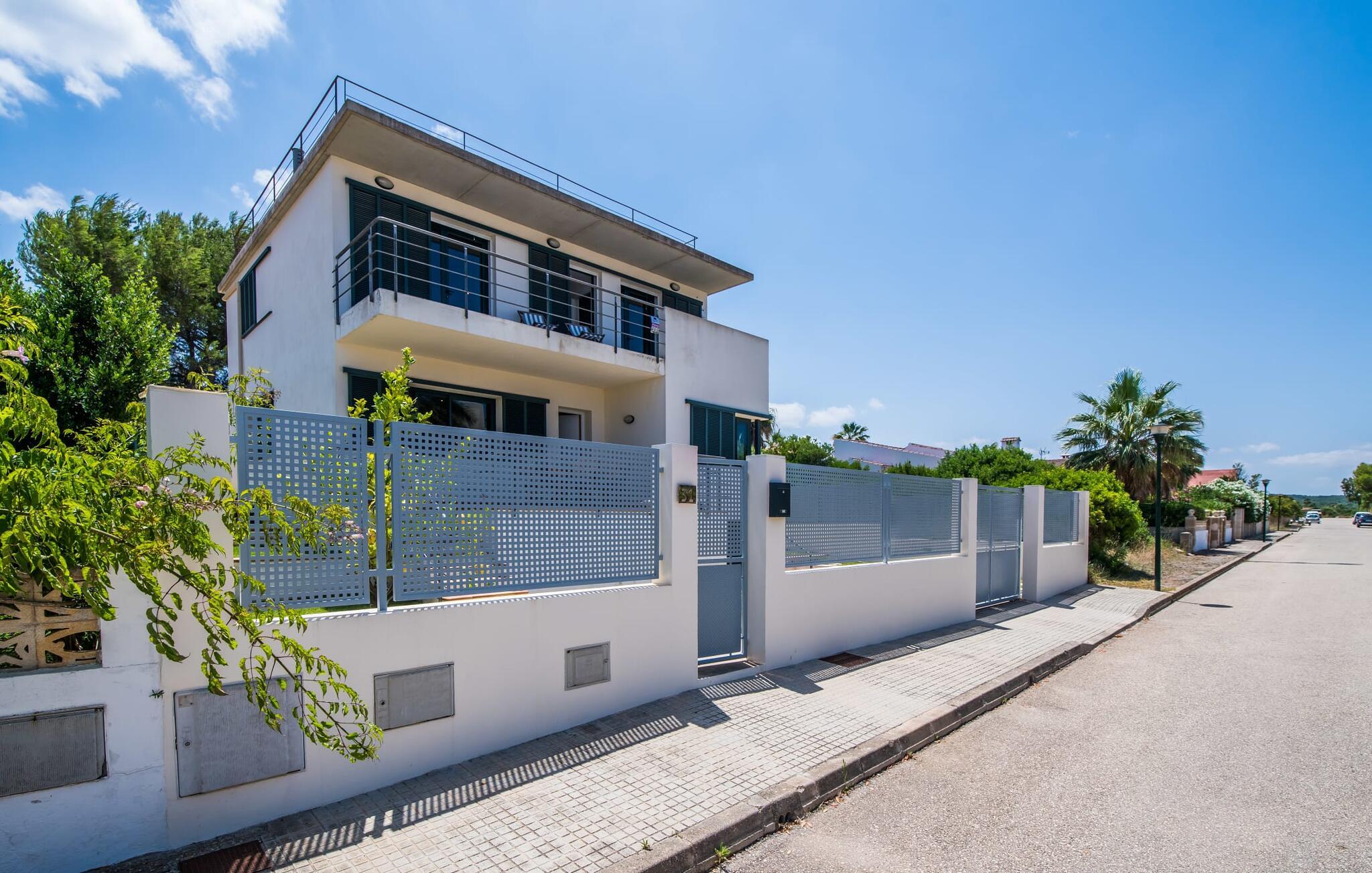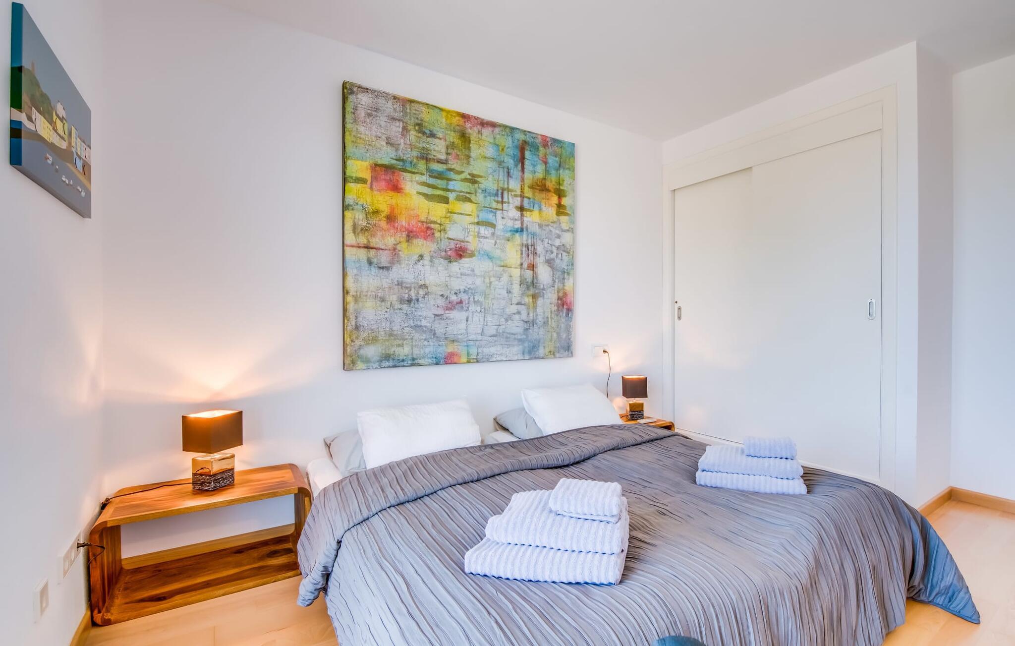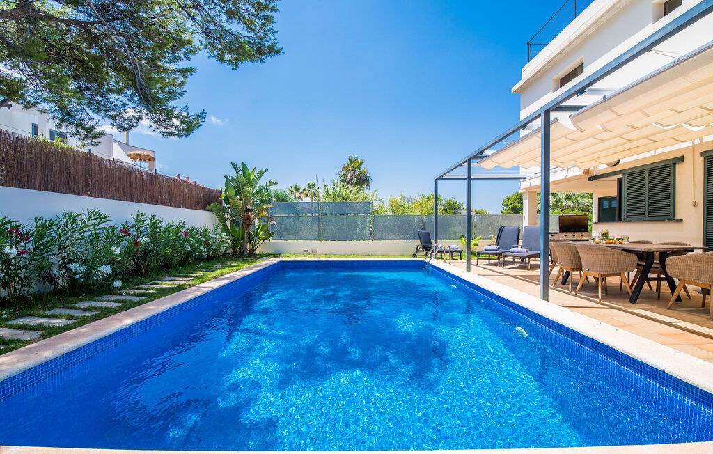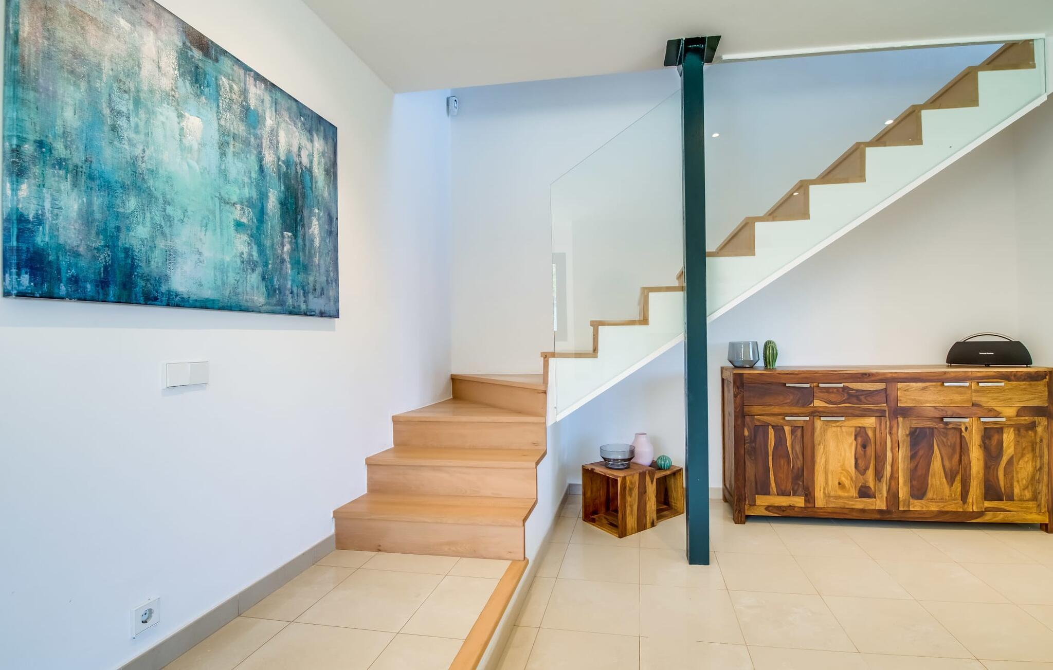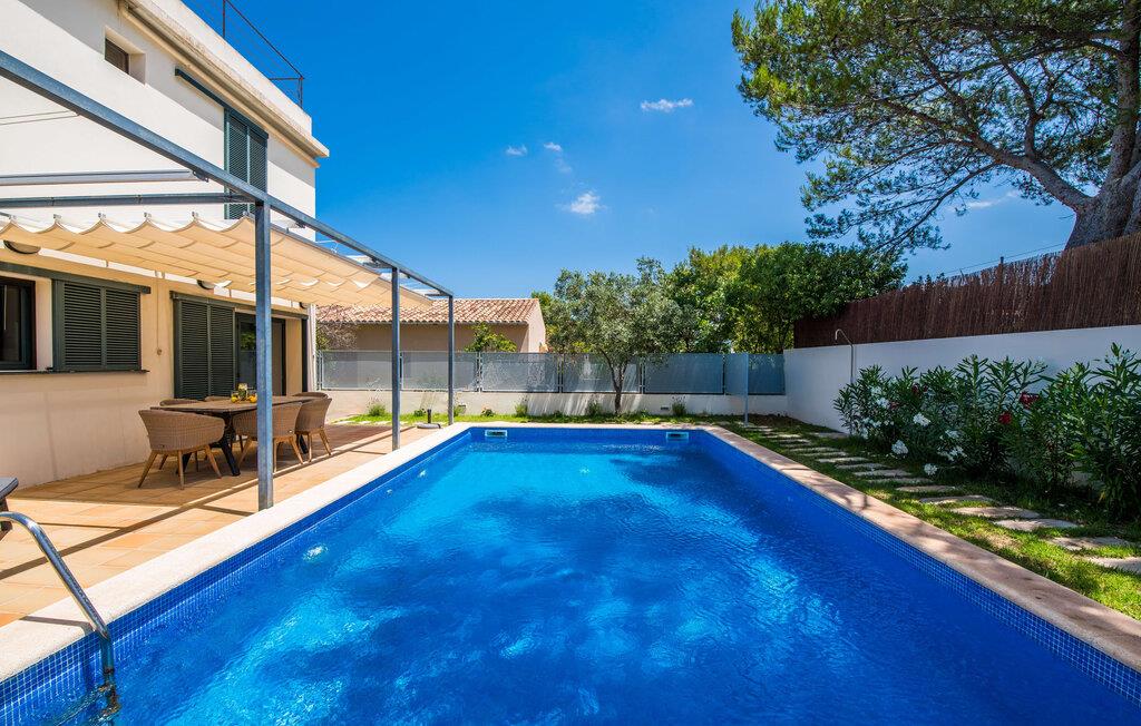Villa "Mediterra" inviterer jer til at slappe af og nyde middelhavslivsstilen. Fra balkonen kan I nyde udsigten over det turkise hav, mærke den blide brise og indånde den friske kystluft. For dem, der ønsker at slappe af, fører kun få skridt fra huset til den bageste terrasse med pool, perfekt til en forfriskende svømmetur. Komfortable liggestole og en moderne gasgrill venter på jer, ideel til en eftermiddag med afslapning og udendørs spisning. Nyd jeres måltider ved træbordet med rattanstole og nyd de rolige omgivelser. Villaen har også en tagterrasse med en fantastisk udsigt over Alcudia-bugten og bjergene. Indenfor forbinder en stor terrassedør poolområdet med opholds- og spiseområdet i åbent plan. Den lyse, sommerlige indretning har hvide vægge, varme træaccenter og farverige kunstværker. Et moderne fjernsyn, en åben pejs og en behagelig sofa skaber en indbydende atmosfære til køligere aftener. Det veludstyrede køkken byder på alt hvad I behøver til en afslappende ferie, lige fra en mikrobølgeovn til en kaffemaskine. Med fire dobbeltværelser og tre badeværelser (to en suite) sikrer Villa "Mediterra" et behageligt ophold for alle. Den smukke, moderne finca "Mediterra" ligger i Alcúdia-bugten, i det mangfoldige østlige Mallorca. Beliggende midt i den velholdte urbanisering af Montferrutx, er supermarkeder, små butikker og gode restauranter inden for nem gåafstand. Den charmerende middelalderby Artà ligger kun 13 km væk. Stranden i Colònia de Sant Pere ligger kun 10 minutters gang væk, mens hvis I tager mod vest, vil I snart nå stranden i Son Serra de Marina.