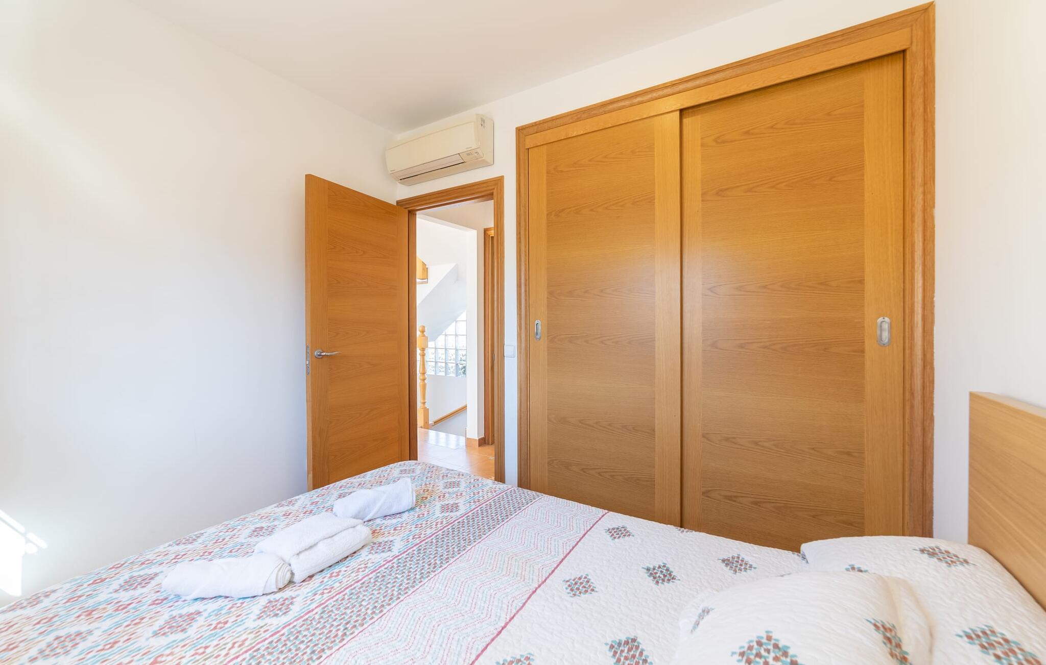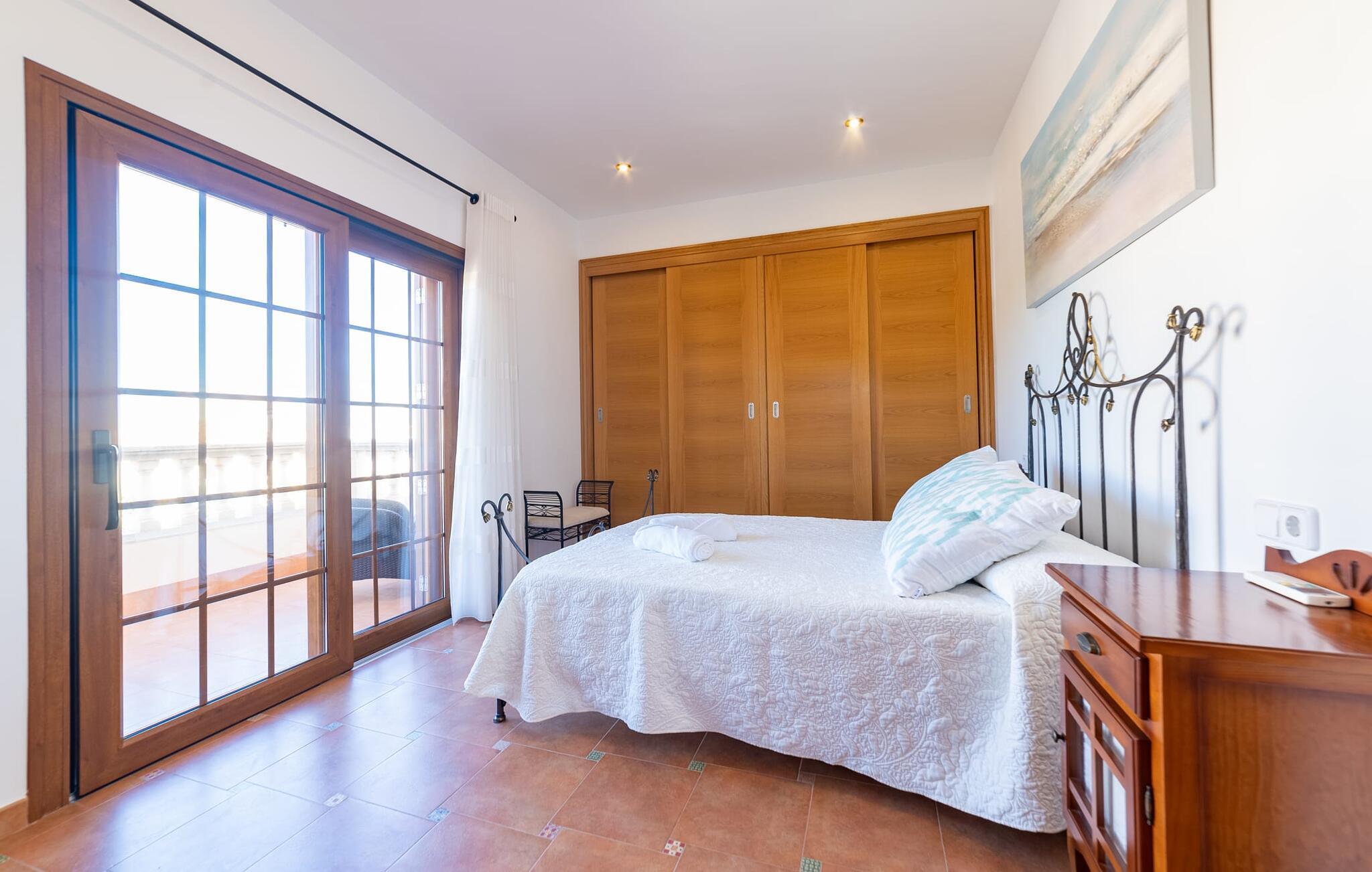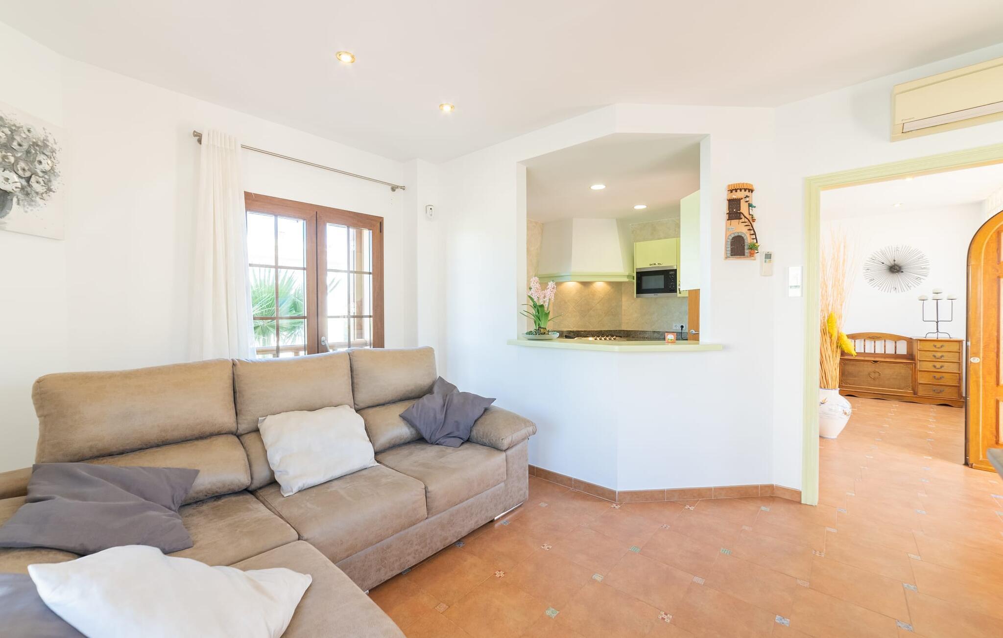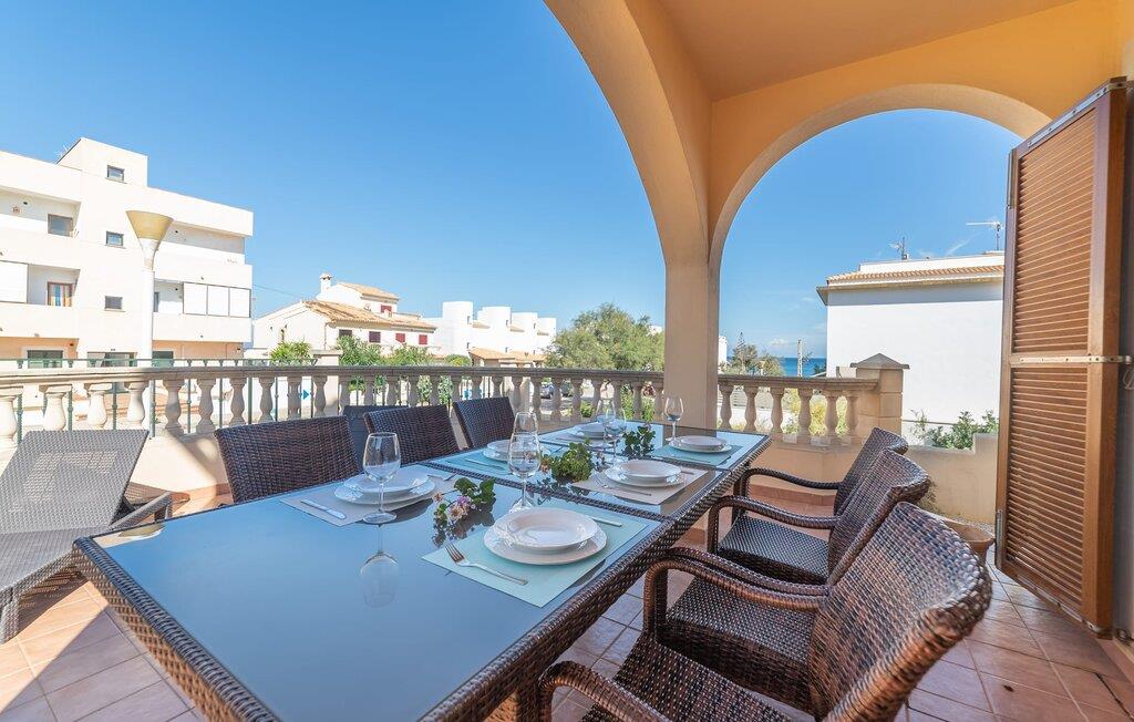 Den familievenlige ferievilla "Mes Blanc" byder på en unik strandoplevelse. Denne to-etagers bolig ligger i udkanten af ??Son Serra de Marina, kun et stenkast fra havet. Nyd den betagende havudsigt og middelhavsklimaet fra den velholdte veranda med spiseplads og muret grill til lækre al fresco måltider. Villaen har et separat spillelokale med bordfodbold og bordtennis, ideel til familiehygge. Hvis I længes efter lange gåture på stranden og bekvemmeligheden ved nærliggende restauranter og strandbarer, er denne veludstyrede villa ideel til jer og jeres familie. Indenfor skinner middelhavscharmen igennem i de lyse rum og varme farver. I stueetagen er der en rummelig opholds- og spiseplads, som er problemfrit forbundet med et fuldt udstyret køkken via en praktisk luge - perfekt til at tilberede lækre måltider, især med grillen. "Mes Blanc" byder på tre soveværelser med dobbeltsenge: et i stueetagen og to på øverste etage, hver med adgang til en privat balkon med havudsigt. Med et badeværelse på hver etage vil denne indbydende ferievilla virkelig give jer lyst til at holde ferie ved havet! Villa “Mes Blanc” er et velholdt feriehus med havudsigt terrasse og altan i top beliggenhed i den populære kystby Son Serra de Marina. Kystbyen med en lille havn ligger på den østlige del af øen og byder på shopping, restauranter og barer. Alternativt kan I tage til Artá ????eller Can Picafort eller besøge de livlige ugentlige markeder i området.