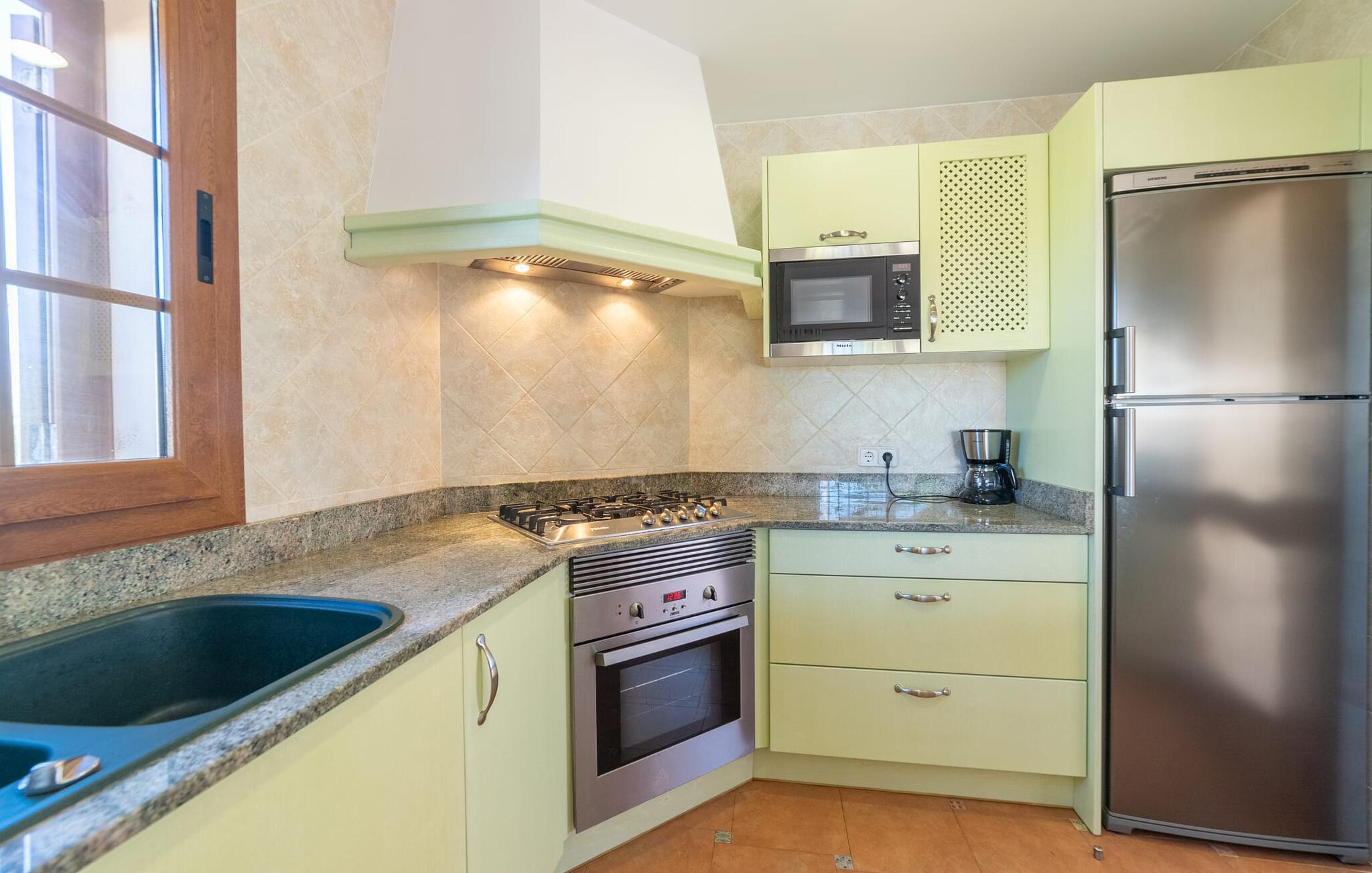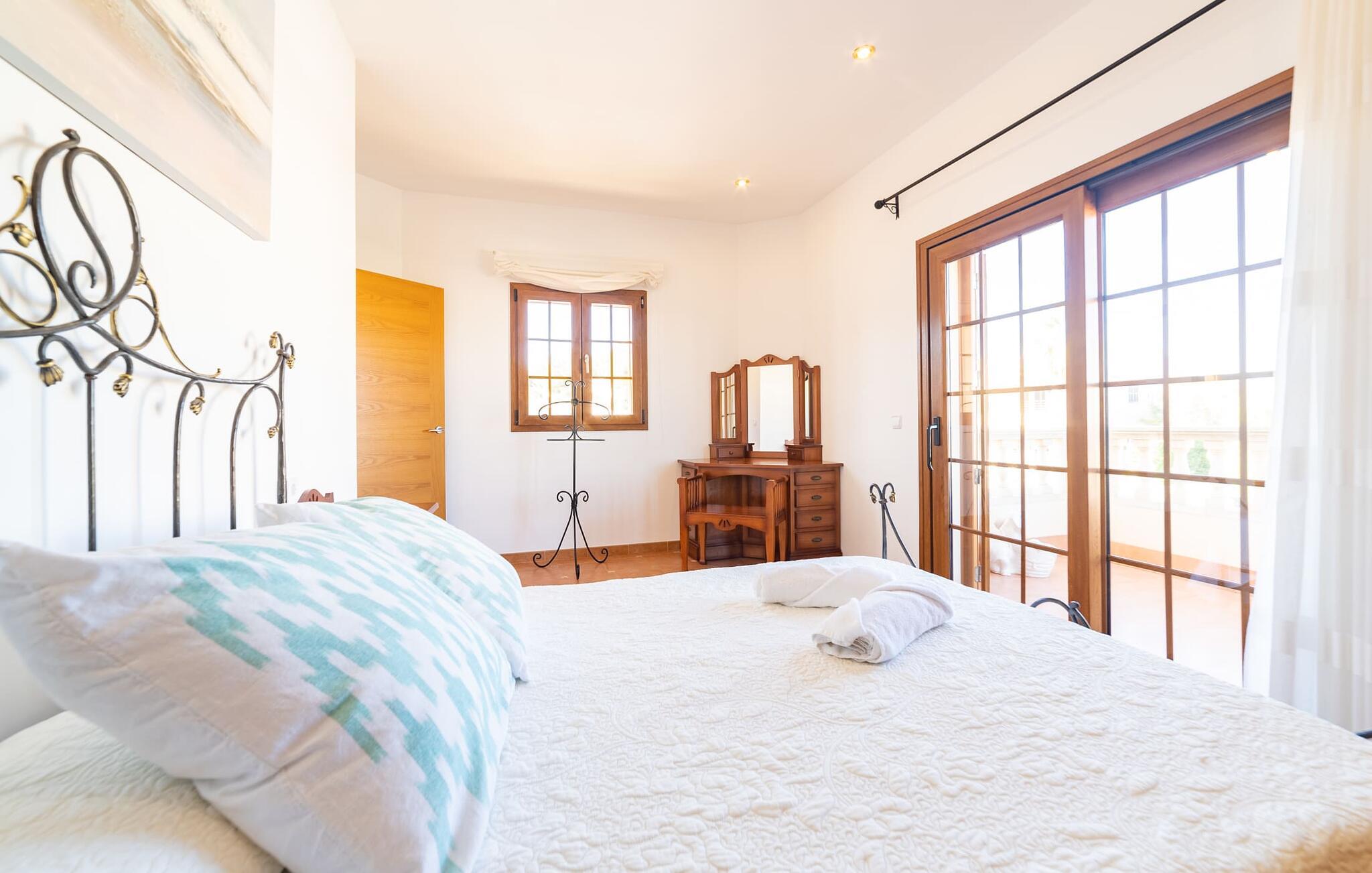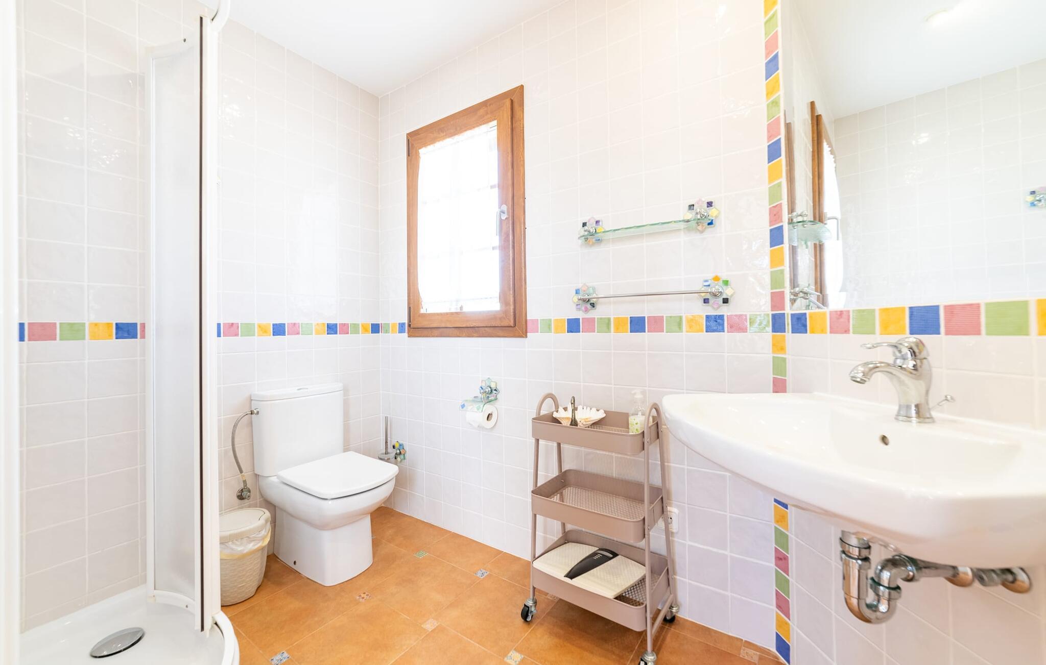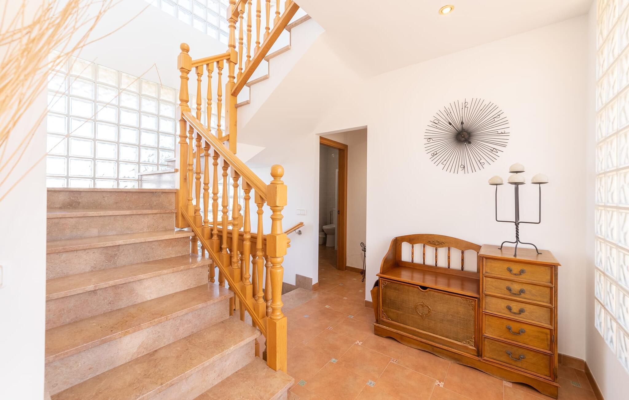 Den familievenlige ferievilla "Mes Blanc" byder på en unik strandoplevelse. Denne to-etagers bolig ligger i udkanten af ??Son Serra de Marina, kun et stenkast fra havet. Nyd den betagende havudsigt og middelhavsklimaet fra den velholdte veranda med spiseplads og muret grill til lækre al fresco måltider. Villaen har et separat spillelokale med bordfodbold og bordtennis, ideel til familiehygge. Hvis I længes efter lange gåture på stranden og bekvemmeligheden ved nærliggende restauranter og strandbarer, er denne veludstyrede villa ideel til jer og jeres familie. Indenfor skinner middelhavscharmen igennem i de lyse rum og varme farver. I stueetagen er der en rummelig opholds- og spiseplads, som er problemfrit forbundet med et fuldt udstyret køkken via en praktisk luge - perfekt til at tilberede lækre måltider, især med grillen. "Mes Blanc" byder på tre soveværelser med dobbeltsenge: et i stueetagen og to på øverste etage, hver med adgang til en privat balkon med havudsigt. Med et badeværelse på hver etage vil denne indbydende ferievilla virkelig give jer lyst til at holde ferie ved havet! Villa “Mes Blanc” er et velholdt feriehus med havudsigt terrasse og altan i top beliggenhed i den populære kystby Son Serra de Marina. Kystbyen med en lille havn ligger på den østlige del af øen og byder på shopping, restauranter og barer. Alternativt kan I tage til Artá ????eller Can Picafort eller besøge de livlige ugentlige markeder i området.