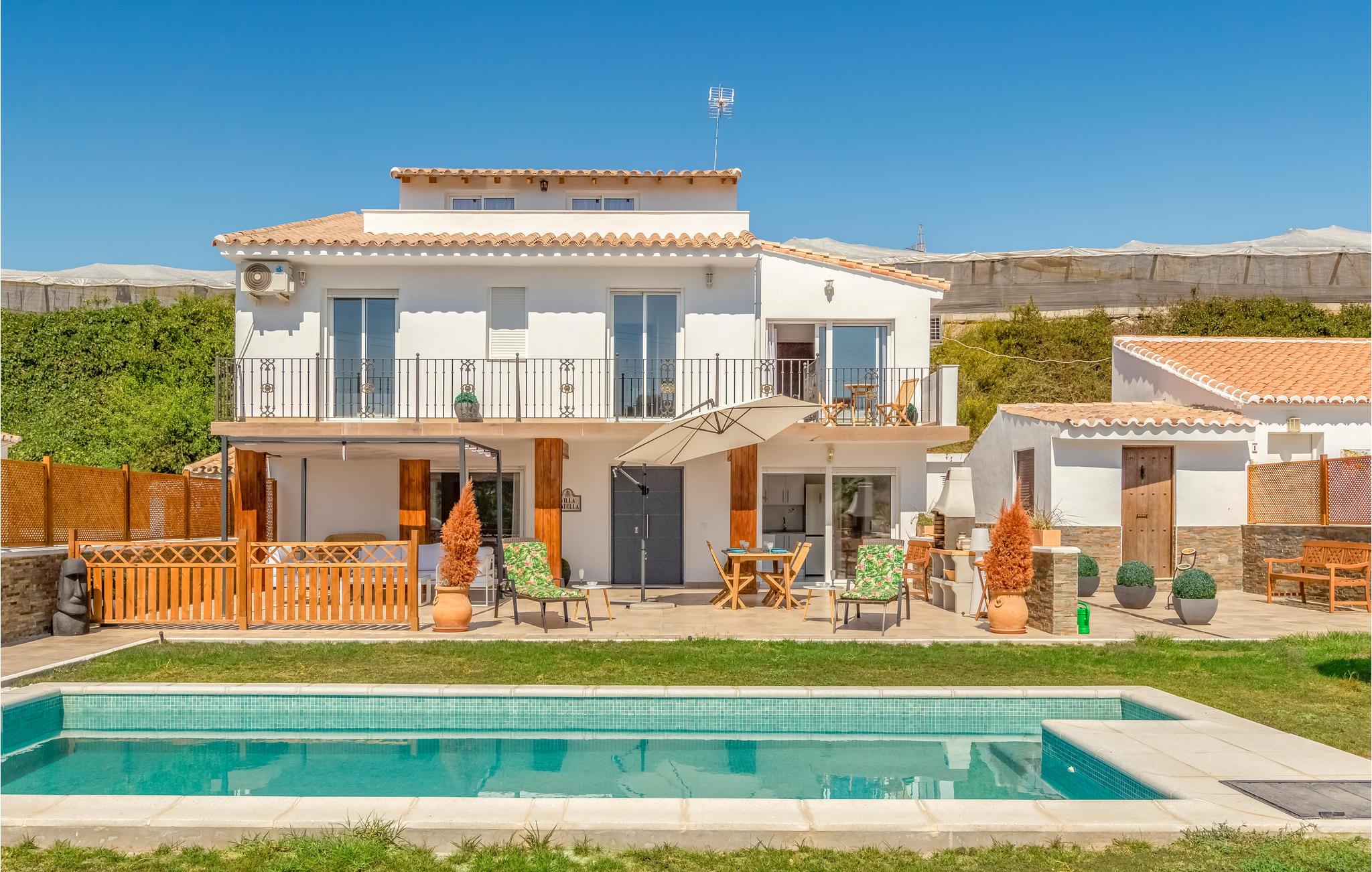 Huset er komfortabelt og attraktivt indrettet og byder på alt, hvad I behøver til en vellykket ferie. Der er tre soveværelser og to badeværelser til rådighed. Klimaanlægget sørger for varme temperaturer selv på varme sommerdage.