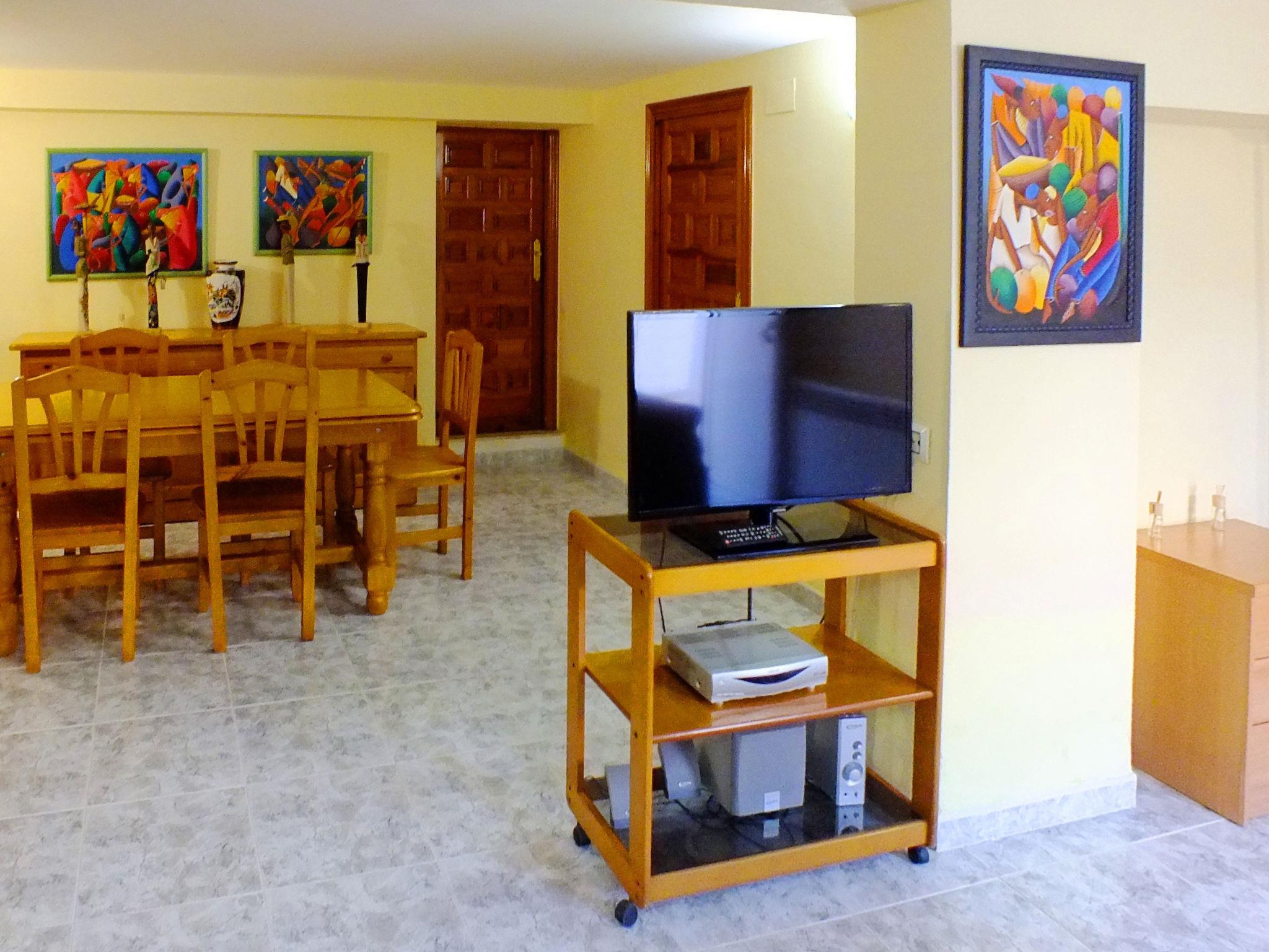 "Villa Mar", 9-room villa 180 m2 on 2 levels. Comfortable and cosy furnishings: living/dining room with dining table, digital TV and fan. Exit to the veranda. 1 room with 1 french bed (150 cm, length 190 cm), fan. 2 rooms, each room with 2 beds (90 cm, length 190 cm). Kitchen (oven, dishwasher, 4 ceramic glass hob hotplates, toaster, kettle, microwave, electric coffee machine). Bath/WC, shower/WC, double hand-basin with corner bath. Heating. On the lower ground floor: living/dining room with dining table and digital TV. 1 room with 1 bed (150 cm, length 190 cm). 2 rooms (90 cm, length 190 cm). 2 rooms, each room with 2 beds (90 cm, length 190 cm). Bath/WC. Heating. Patio. Terrace furniture, barbecue, covered balcony. Facilities: washing machine, iron, children's high chair, baby cot, hair dryer. Internet (WiFi, free). Parking (fenced 2 cars). Please note: suitable for families. Maximum 2 pets/ dogs allowed. TV only ES. HUTT007585