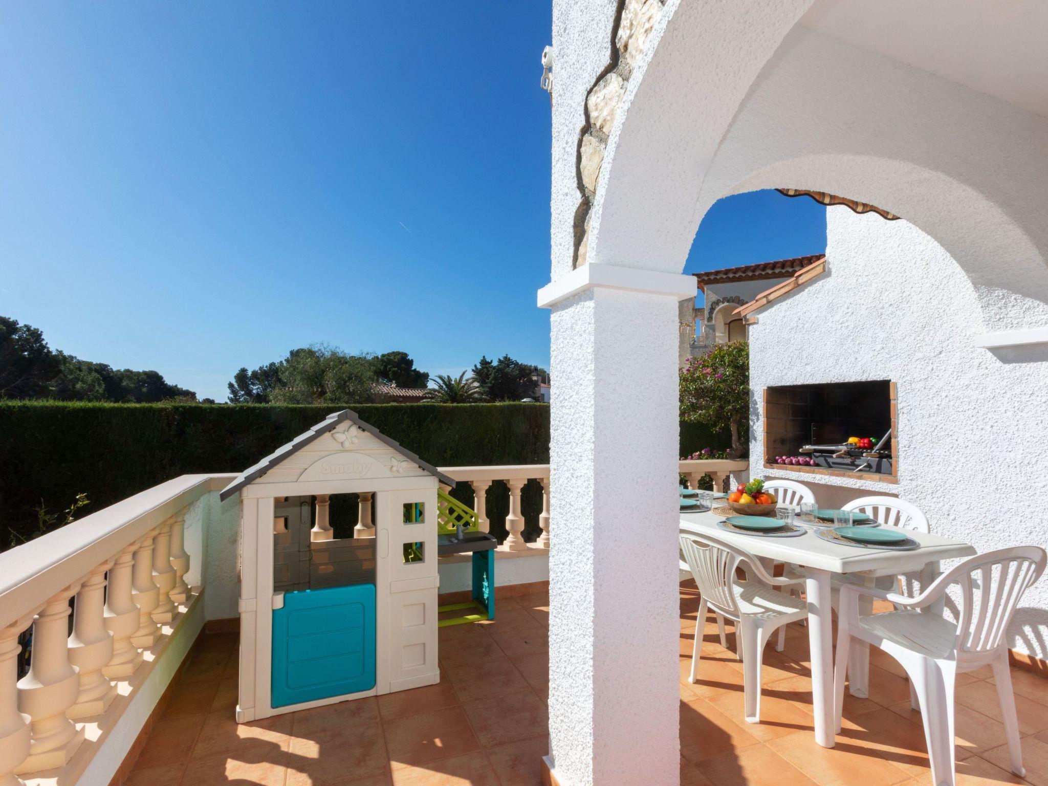 Pino Alto: Cosy, comfortable terraced house "Cristal", 2 storeys. 20 houses in the resort. 700 m from the sea, 700 m from the beach. For shared use: swimming pool angular (13 x 6 m, depth 80 - 190 cm, seasonal availability: 01.Jan. - 31.Dec. pool opening hours: 09:00-22:00). Outdoor shower, pool maintenance by the owner/gardener. Private: garden (fenced) with lawn. Patio, garden furniture, barbecue, parking at the house. Shop 1 km, supermarket, restaurant, bakery, café 500 m, bus stop 280 m, railway station "Hospitalet de l'infant" 2.4 km, sandy beach "Platja Cristal" 700 m. Sports harbour 1.2 km. Nearby attractions: Parque Portaventura 28 km, parque acuático Aquopolis 31 km, parque Natural del Delta del Ebro 53 km, Tarragona 37 km, Reus 30 km, Barcelona 132 km. Please note: car recommended. Groups of teenagers on request only.