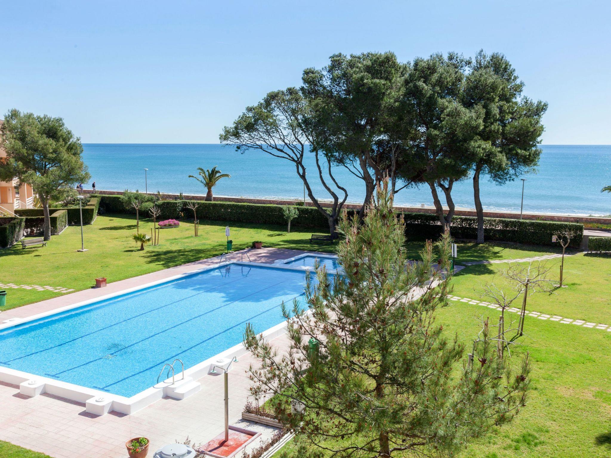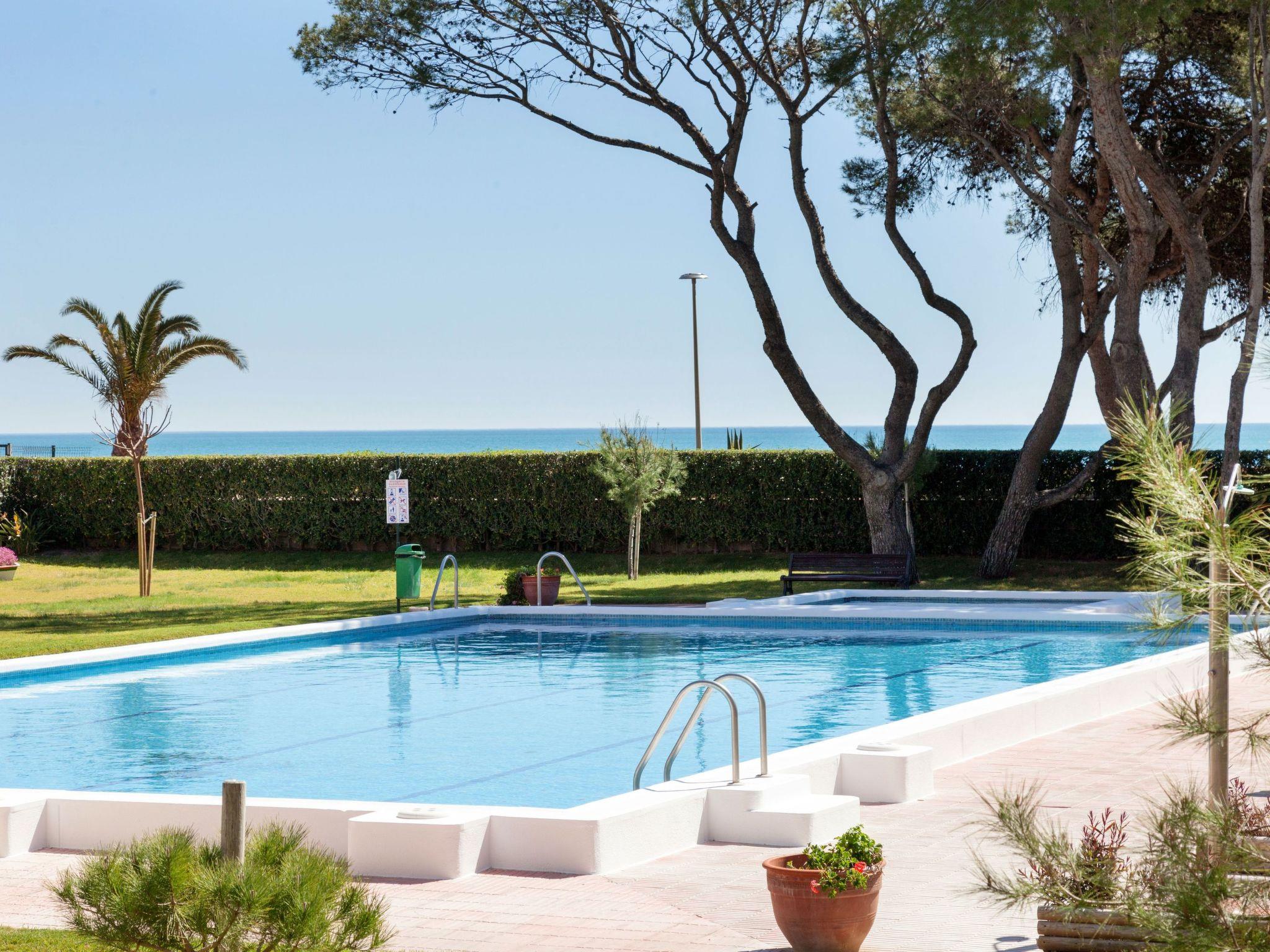 Residencial Guardamar 3 km from Miami Platja: Apartment block "Guardamar". In a quiet position, 10 m from the sea, 10 m from the beach, in a cul-de-sac. For shared use: beautiful, well-kept garden (fenced) with lawn 600 m2, plants, swimming pool angular (12 x 8 m, depth 80 - 190 cm, seasonal availability: 01.Jan. - 31.Dec. pool opening hours: 09:00-21:00). Children's pool, outdoor shower, pool maintenance by the owner/gardener. Grocery 300 m, supermarket 3 km, bus stop 300 m, railway station "Hospitalet de l'Infant" 6 km, sandy beach 10 m. Nearby attractions: Parque Portaventura 28 km, parque acuático Aquopolis 31 km, parque Natural del Delta del Ebro 53 km, Tarragona 37 km, Reus 30 km, Barcelona 132 km. Please note: car recommended, no lift. Groups of teenagers on request only.