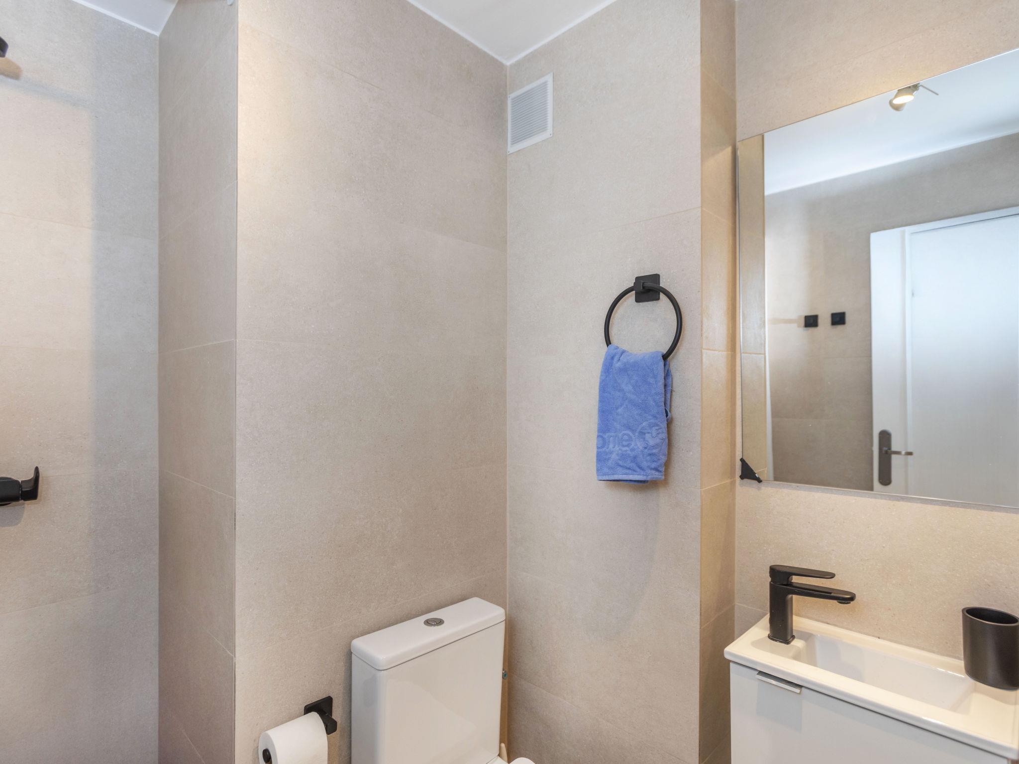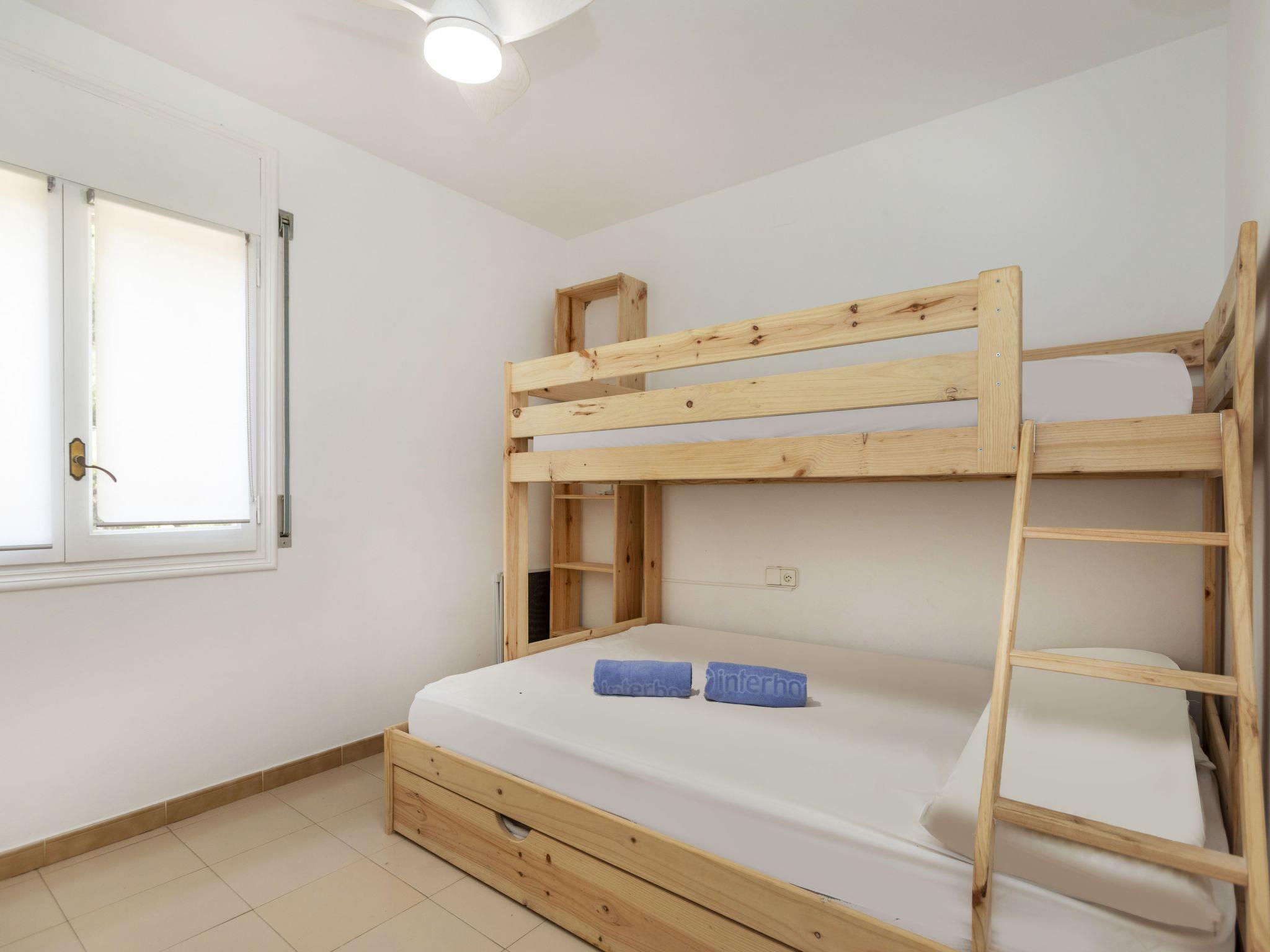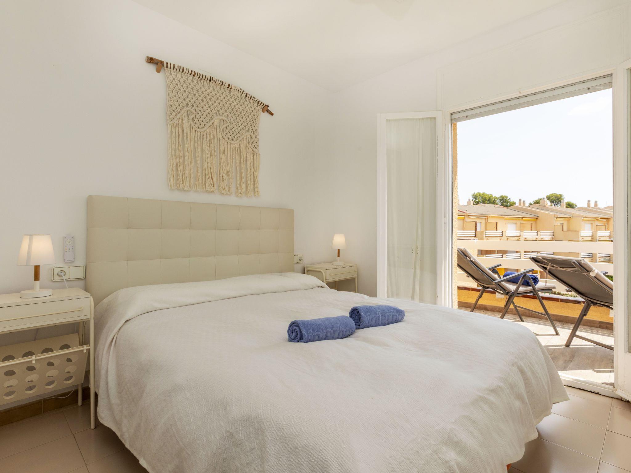 "Guardamar", 3-room apartment 65 m2. Practical and comfortable furnishings: living/dining room 25 m2 with dining table and digital TV. Exit to the terrace. 1 room with 1 french bed (140 cm, length 200 cm), bath/bidet/WC. Exit to the terrace. 1 room with 1 x 2 bunk beds (90 cm), 1 french bed (140 cm), air conditioning. Kitchen (oven, dishwasher, 4 ceramic glass hob hotplates, toaster, kettle, microwave, electric coffee machine). Shower/WC. No heating option. Terrace 24 m2. Terrace furniture. View of the sea and the swimming pool. Facilities: washing machine, iron, children's high chair, baby cot, hair dryer. Please note: maximum 1 small pet/ dog allowed. No lift. HUTT-004905 // Reg. Nr.: ESFCTU00004303200003700200000000000000000HUTT-0049052