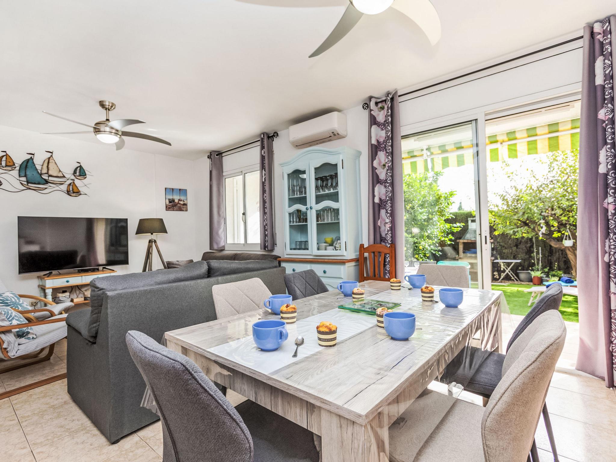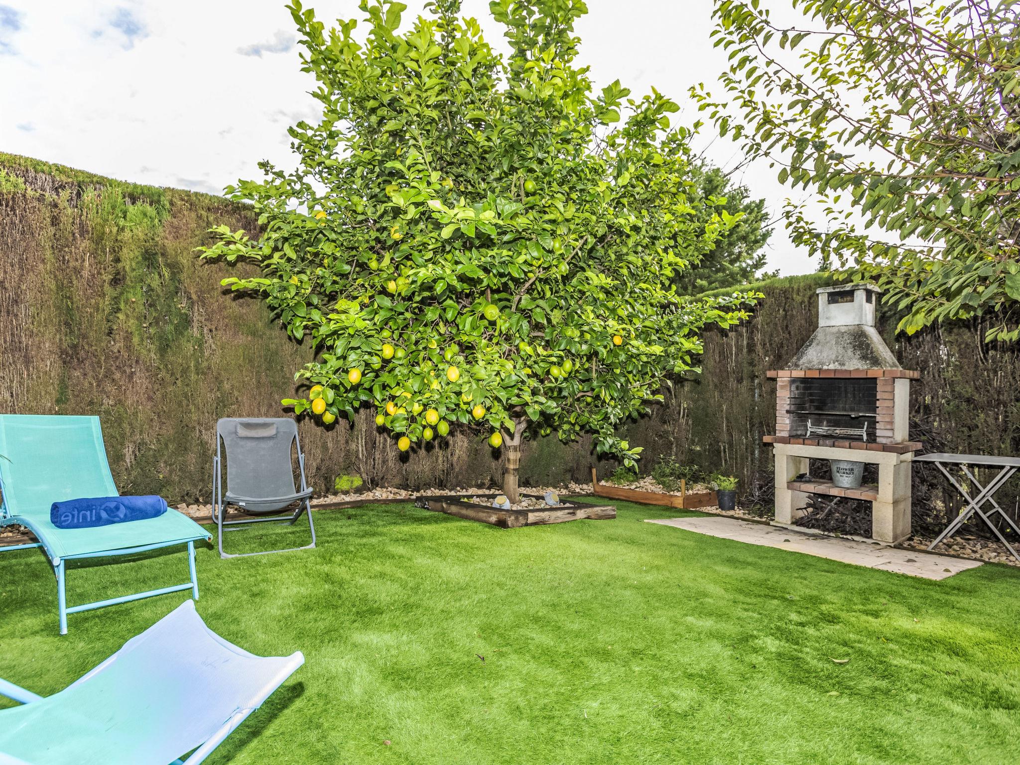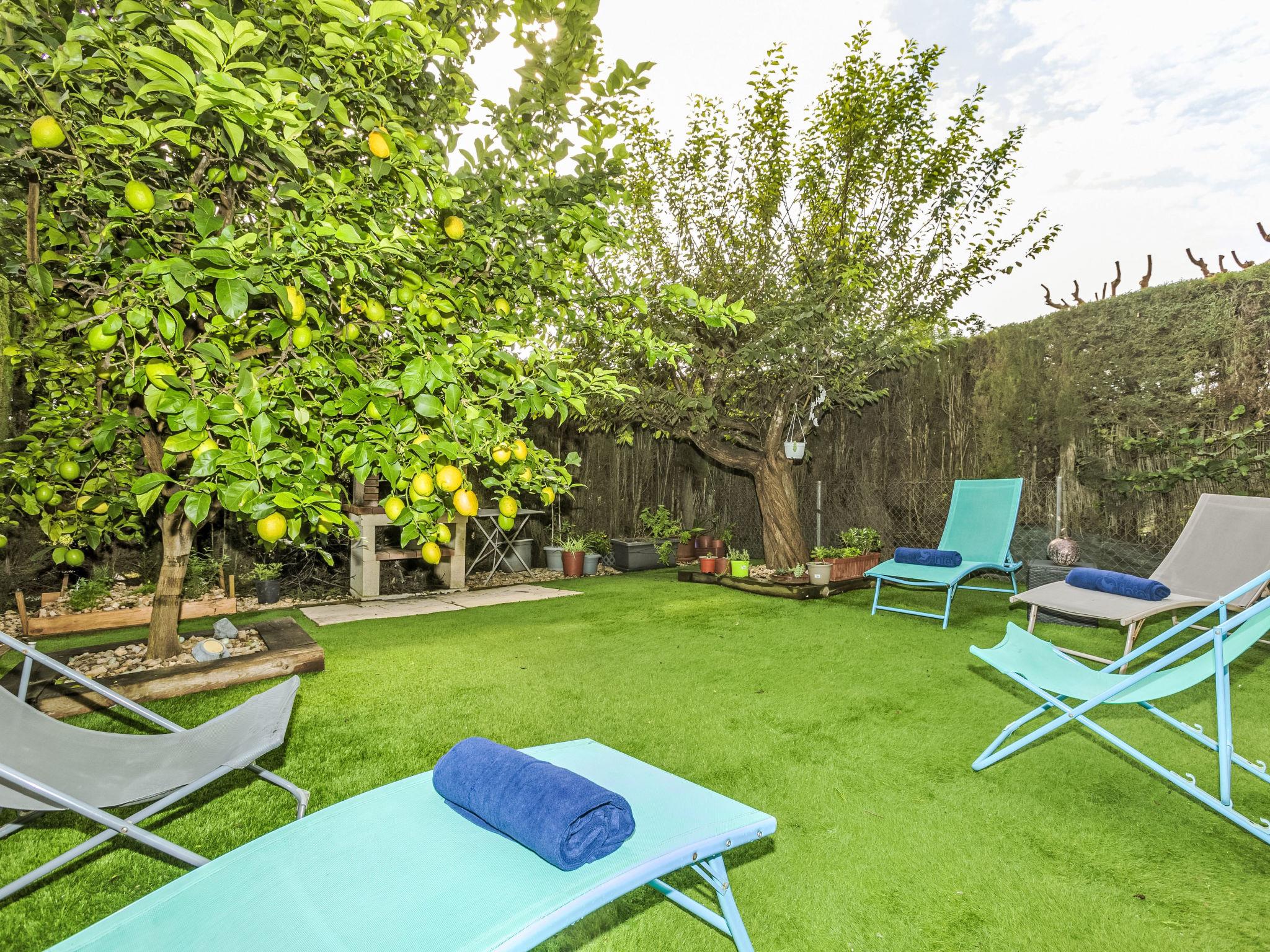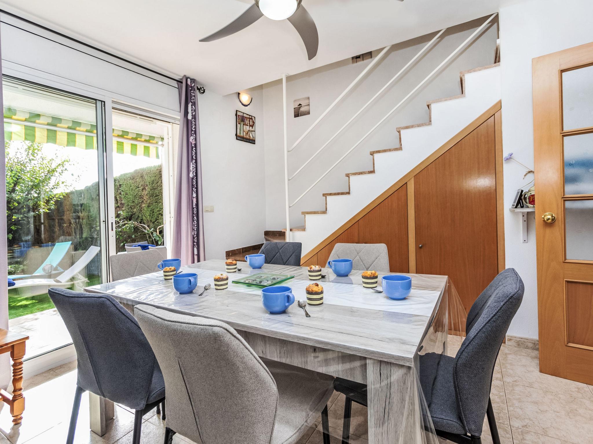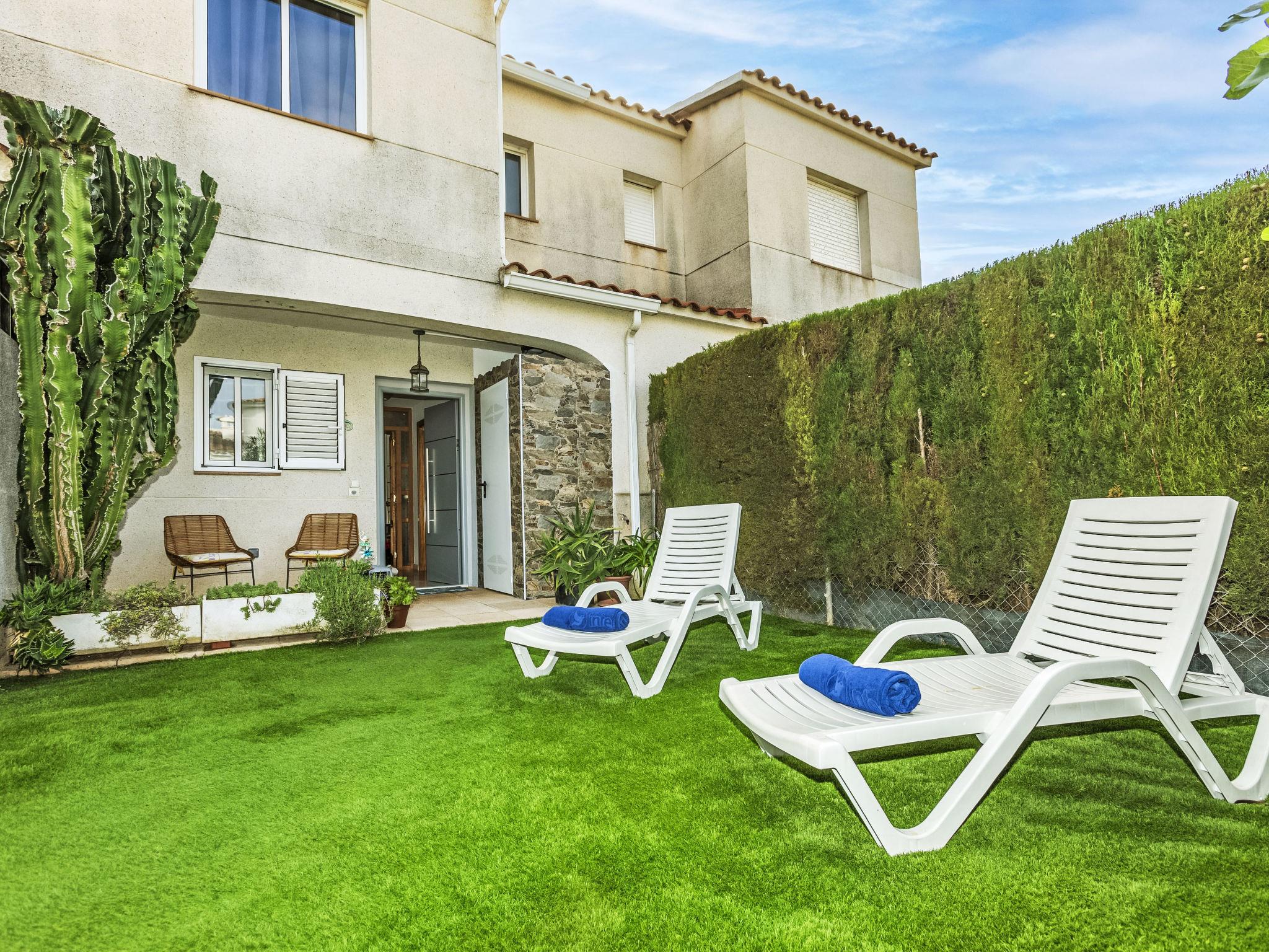 "Espigol", 4-room terraced house 100 m2 on 2 levels, south-east facing position. Comfortable and cosy furnishings: living/dining room 30 m2 with dining table, digital TV, air conditioning and fan. Exit to the terrace. Kitchen (oven, dishwasher, 3 induction hot plates, toaster, kettle, microwave, freezer, electric coffee machine). Shower, sep. WC. No heating option. Upper floor: 1 room with 1 french bed (160 cm), air conditioning and fan. 1 room with 2 beds (90 cm), air conditioning and fan. Exit to the terrace. 1 room with 2 beds (90 cm), air conditioning and fan. Exit to the terrace. Bath/bidet/WC. Porch. Terrace furniture, barbecue. Facilities: washing machine, iron, hair dryer. Suitable for families. Maximum 1 small pet/ dog allowed. HUTT-01479800 // Reg. Nr.: ESFCTU000043032000093121000000000000000HUTT-014798001