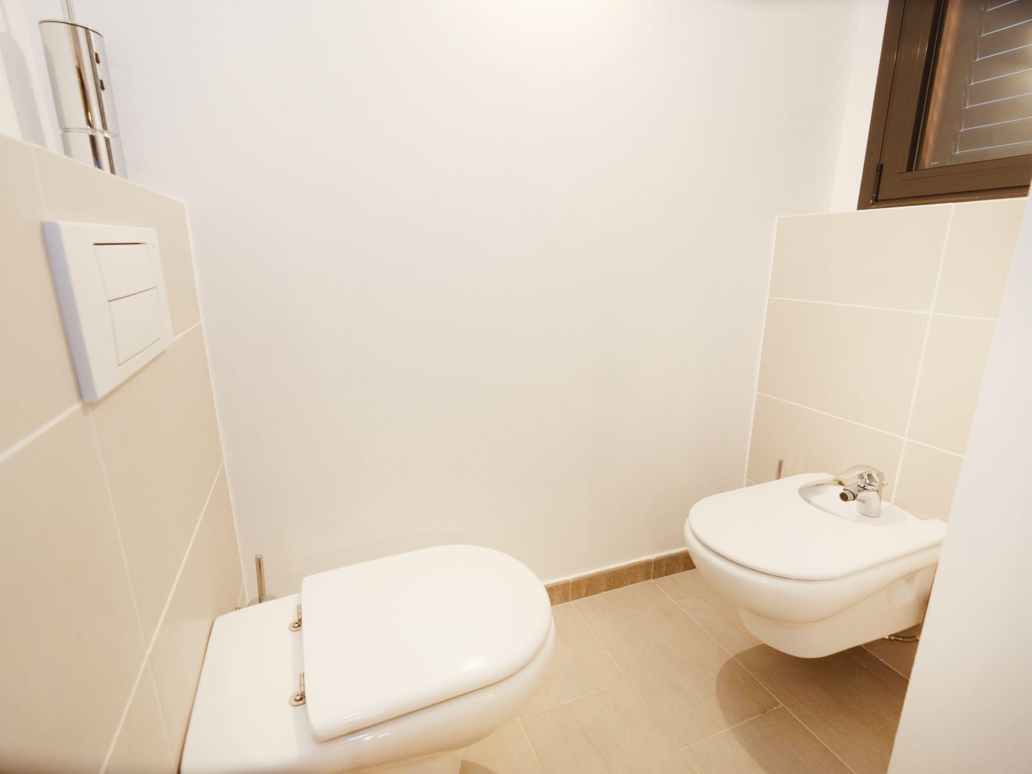 "Villa Perla", 4-room villa 150 m2 on 2 levels. Comfortable and cosy furnishings: living/dining room with dining table, digital TV and flat screen. 1 room with 2 wall-trunk beds (90 cm). Kitchen (oven, dishwasher, 4 ceramic glass hob hotplates, toaster, kettle, microwave, electric coffee machine). Shower/WC. Air-conditioning. No heating option. Upper floor: 1 room with 1 french bed (135 cm), bath/WC and air conditioning. 1 room with 2 beds (90 cm), air conditioning. Shower/WC. No heating option. Patio. Terrace furniture, barbecue (portable). Distant view of the sea and the mountains. Facilities: washing machine, iron, children's high chair, baby cot, hair dryer. Internet (WiFi, free). HUTT-007543 // Reg. Nr.: ESFCTU00004303200018186600000000000000000HUTT-0075431