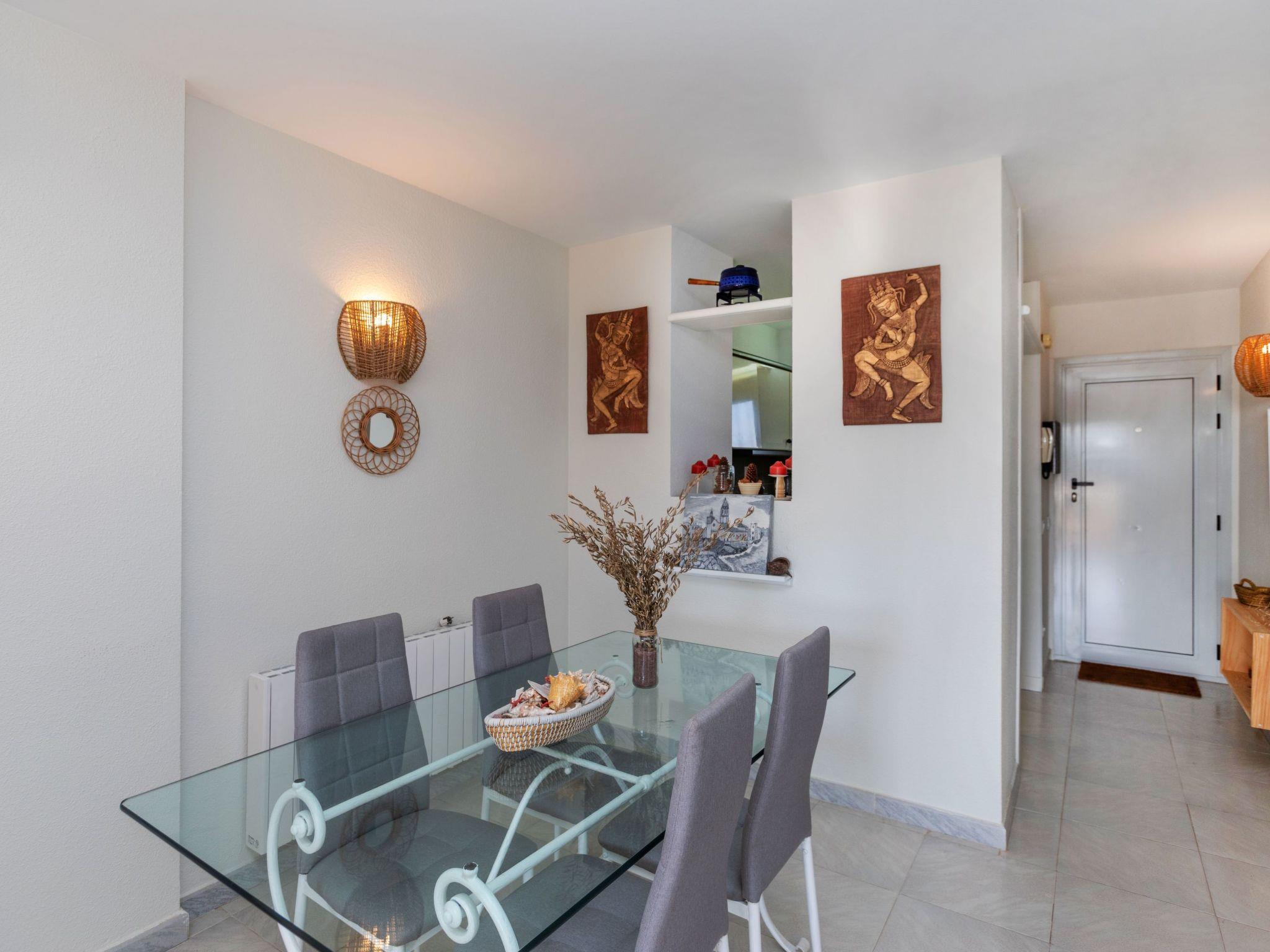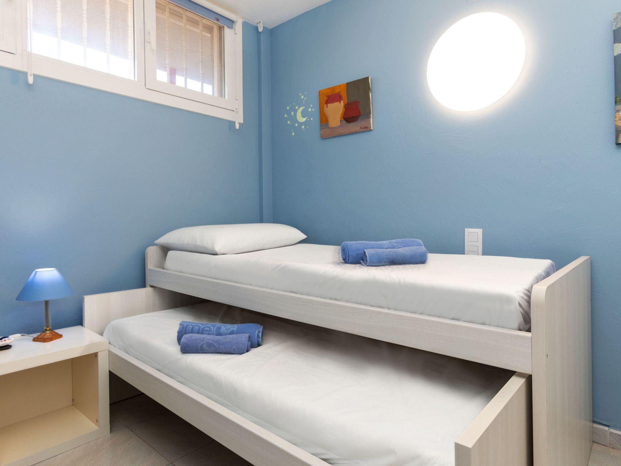 "Edificio Luxor II", 3-room apartment 65 m2. Practical and comfortable furnishings: living/dining room with dining table, digital TV and air conditioning. Exit to the balcony. 1 room with 1 french bed (140 cm, length 190 cm), fan. 1 room with 2 beds (90 cm, length 190 cm), fan. Open kitchen (oven, dishwasher, 3 ceramic glass hob hotplates, toaster, kettle, microwave, electric coffee machine, combination microwave). Bath/bidet/WC. No heating option. Small balcony. Balcony furniture. View of the sea and the swimming pool. Facilities: washing machine, iron, mosquito net, hair dryer. Internet (WiFi, free). Parking space n 27. Please note: non-smokers only. TV only ES. HUTT-004796 // Reg. Nr.: ESFCTU00004303200005667600000000000000000HUTT-0047964