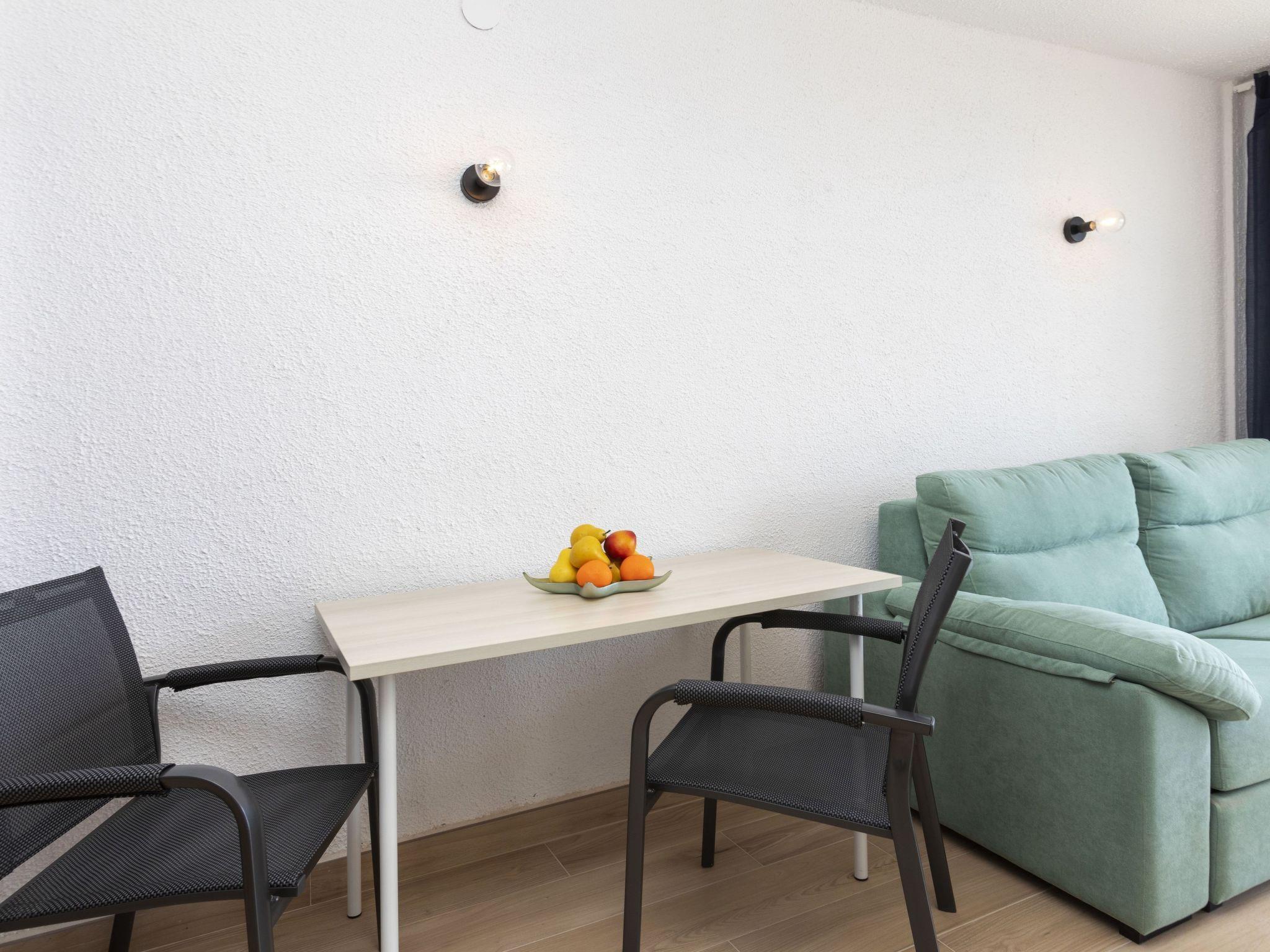 "Miami Palace II", 2-room apartment 35 m2 on 9th floor. Comfortable and cosy furnishings: living/dining room with 1 double sofabed (135 cm), dining table and digital TV. Exit to the terrace. 1 room with 1 french bed (135 cm). Exit to the terrace. Kitchen (oven, 2 ceramic glass hob hotplates, toaster, kettle, microwave, electric coffee machine, Capsules for coffee machine (Dolce gusto) extra). Shower/WC. No heating option. Terrace 14 m2. Terrace furniture. View of the sea. Facilities: washing machine, iron, hair dryer. Parking space n 17. HUTT-056044 // Reg. Nr.: ESFCTU00004303200026983000000000000000000HUTT-0560447