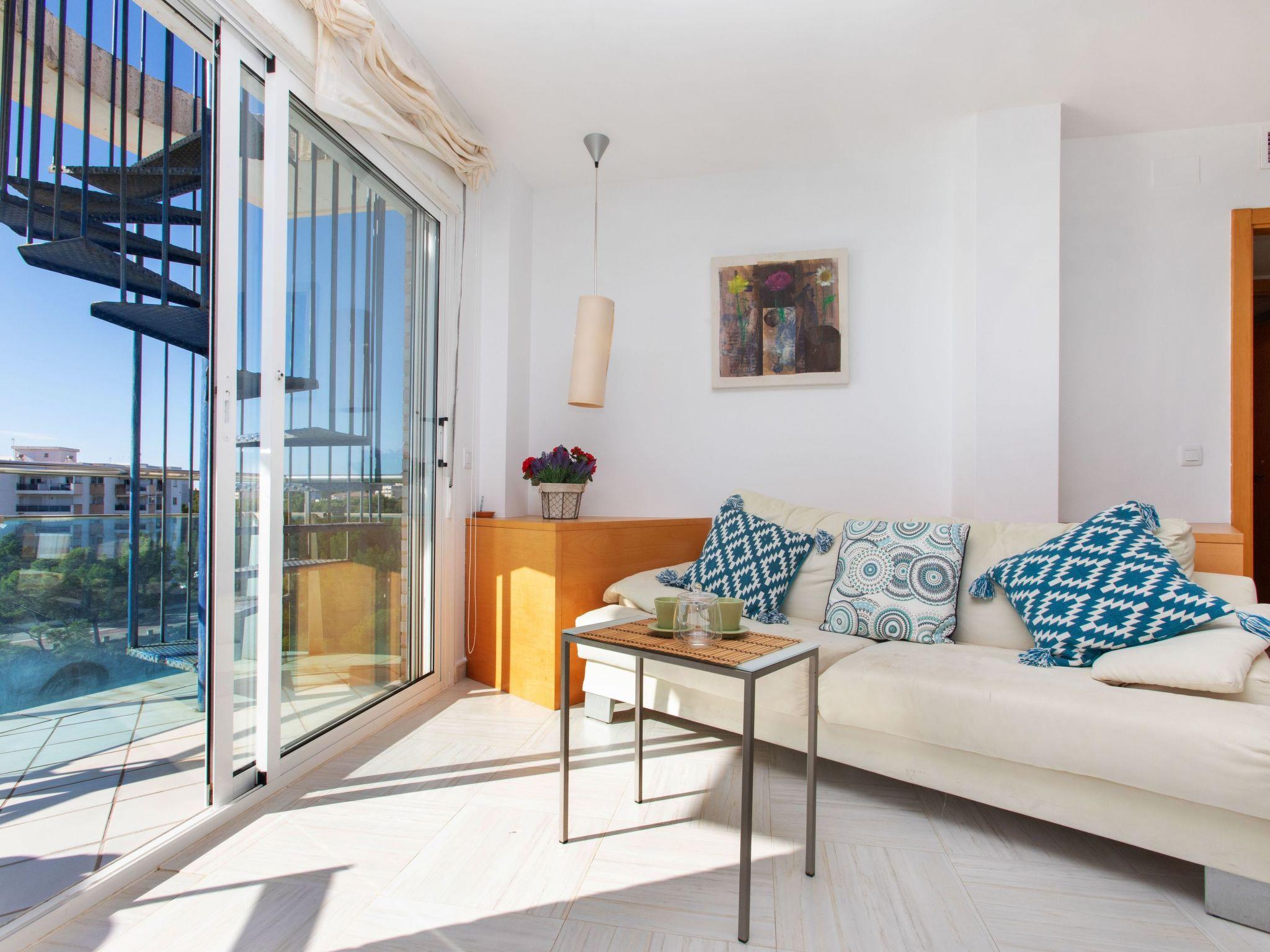 "Gala I", 3-room penthouse 70 m2, south-east facing position. Spacious and bright, practical and comfortable furnishings: living/dining room with digital TV. Exit to the balcony. 1 room with 1 french bed (135 cm). 1 room with 1 pull-out bed (2 x 90 cm). Kitchen (oven, dishwasher, 4 ceramic glass hob hotplates, toaster, kettle, electric coffee machine, combination microwave). Bath/bidet/WC. Air-conditioning, boiler (100 litres). No heating option. Balcony furniture. Panoramic view of the sea. Facilities: washing machine, iron, hair dryer. Internet (WiFi, free). Please note: TV only ES. HUTT-008224 // Reg. Nr.: ESFCTU00004303200010899300000000000000000HUTT-0082248