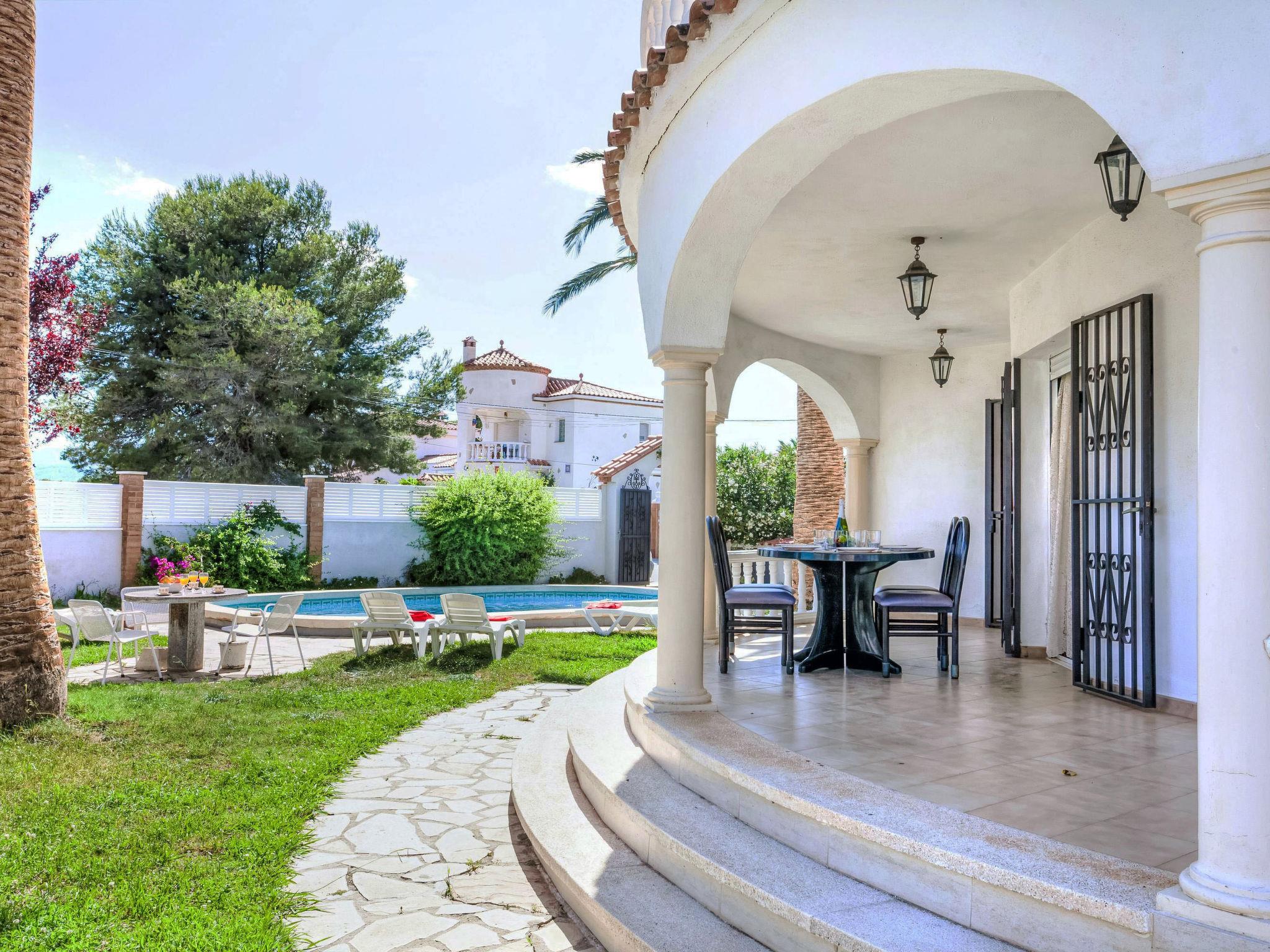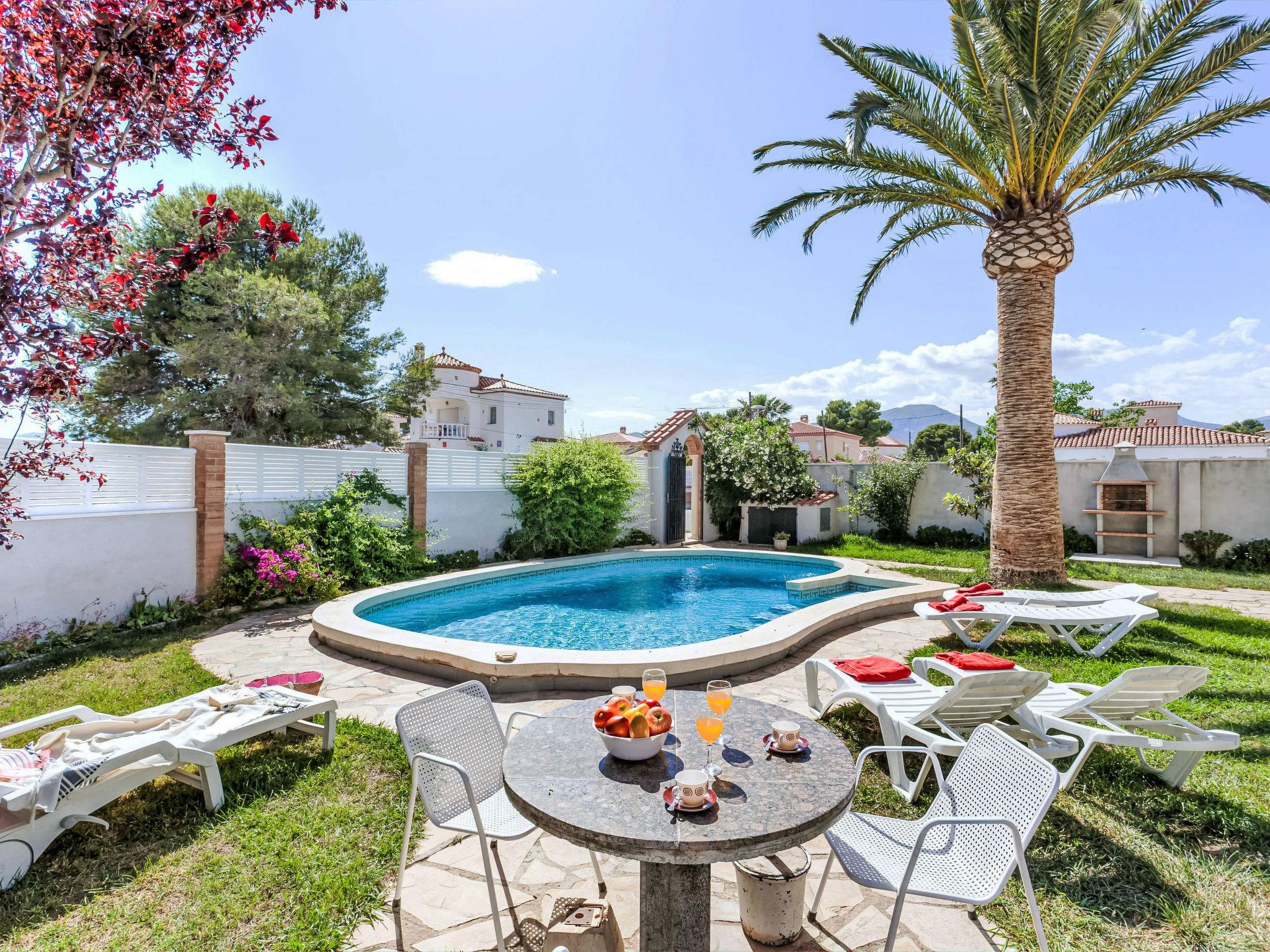 Miami Platja: Large, beautiful, comfortable villa "Villa Mar", 2 storeys. Outside the resort, 3 km from the centre of Miami Playa, in a quiet, sunny position, 1.3 km from the sea, 1.3 km from the beach. Pool maintenance by the owner/gardener. Private: property (fenced) with lawn and wildlife garden, swimming pool angular (8 x 4 m, depth 80 - 190 cm, seasonal availability: 01.May. - 31.Oct.) with internal staircase. Outdoor shower, patio, pergola, garden furniture, barbecue. In the house: washing machine. Parking (for 2 cars). Shop 2.5 km, supermarket 2 km, restaurant 800 m, bakery 2 km, bus stop 1.3 km, railway station "Hospitalet de l'Infant" 5 km, sandy beach 1.3 km. Nearby attractions: Parque Portaventura 28 km, parque acuático Aquopolis 31 km, parque Natural del Delta del Ebro 53 km, Tarragona 37 km, Reus 30 km, Barcelona 132 km. Groups of teenagers on request only.
