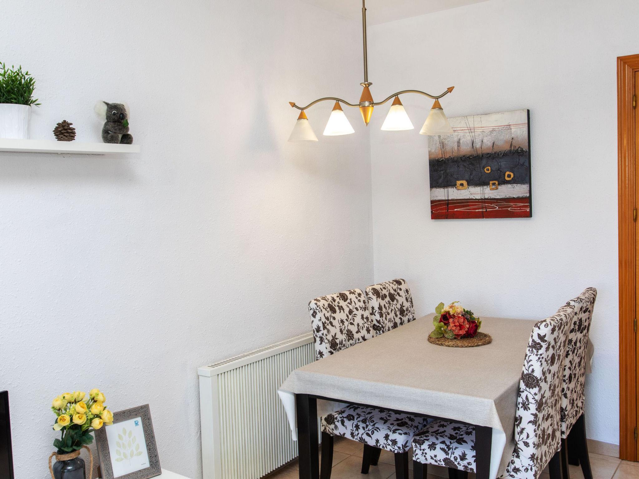"Villa Zefir", 3-room villa 70 m2 on 2 levels. Comfortable and cosy furnishings: living/dining room with dining table and digital TV. Exit to the terrace. Open kitchen (oven, 4 ceramic glass hob hotplates, toaster, kettle, microwave, electric coffee machine). Sep. WC. No heating option. Upper floor: 1 room with 2 x 2 bunk beds (90 cm). 1 room with 1 french bed (150 cm), air conditioning. Exit to the terrace. Shower/bidet/WC. Patio. Terrace furniture, barbecue. View of the swimming pool and the garden. Facilities: washing machine, iron, children's high chair, baby cot, hair dryer. Internet (WiFi, free). Parking at the house. HUTT060117 // Reg. Nr.: ESFCTU000043032000106920000000000000000000HUTT0601176