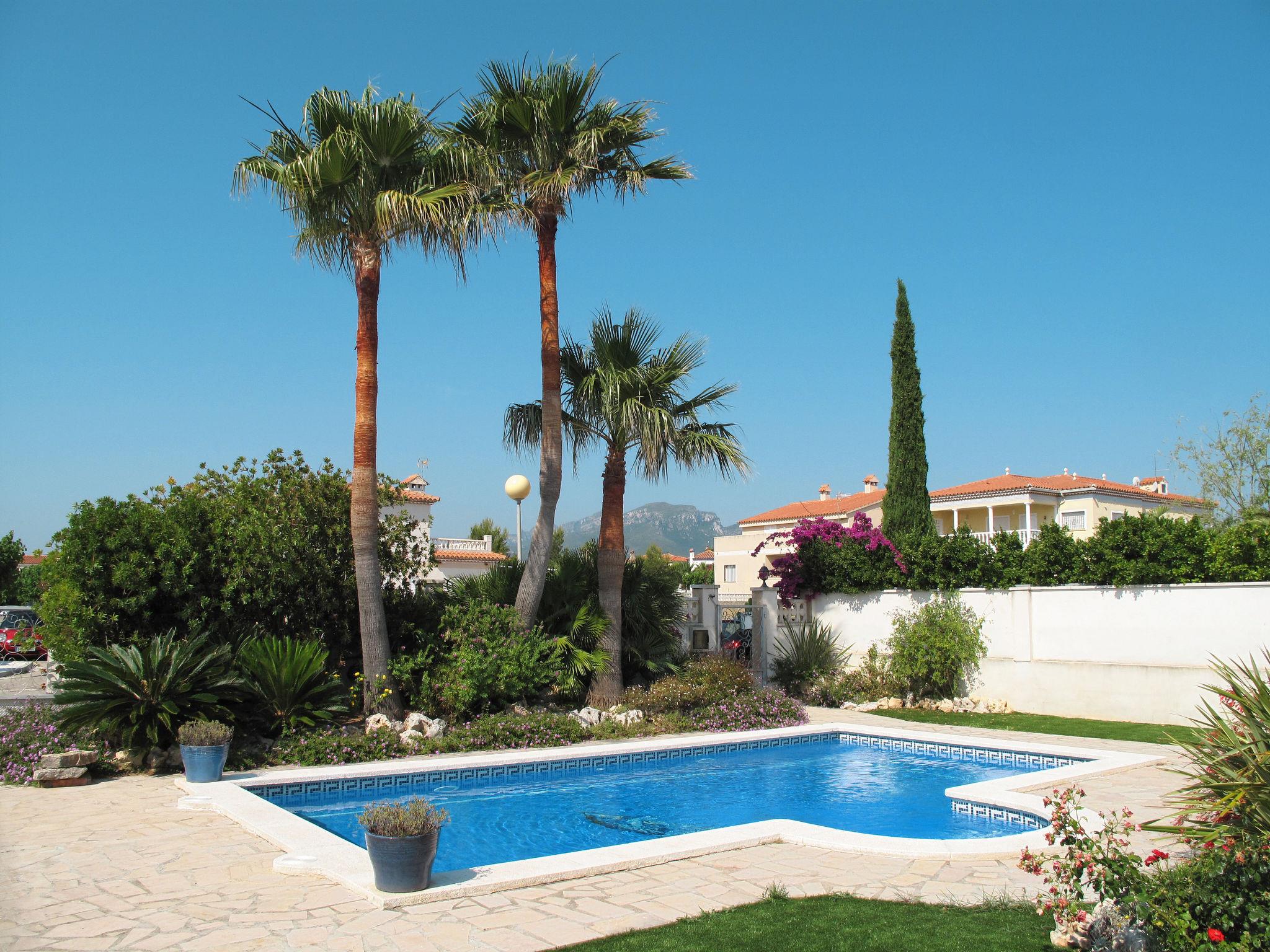 Single-family house "Villa Silvia", built in 2007. In the district of Costa Zefir 2.8 km from the centre of Miami Playa, 12 km from the centre of Cambrils, in the residential district, 1.7 km from the sea. Private: property 600 m2 with wildlife garden and trees, swimming pool (8 x 4 m, depth 150 cm, seasonal availability: 01.Jan. - 31.Dec.). Outdoor shower. Stepped path (1 step) to the house. Supermarket 500 m, bus stop 1.5 km, railway station "Hospitalet de l'Infant" 3.5 km, sandy beach 1.7 km. Golf course (18 hole) 3 km. The owner does not accept any youth groups.