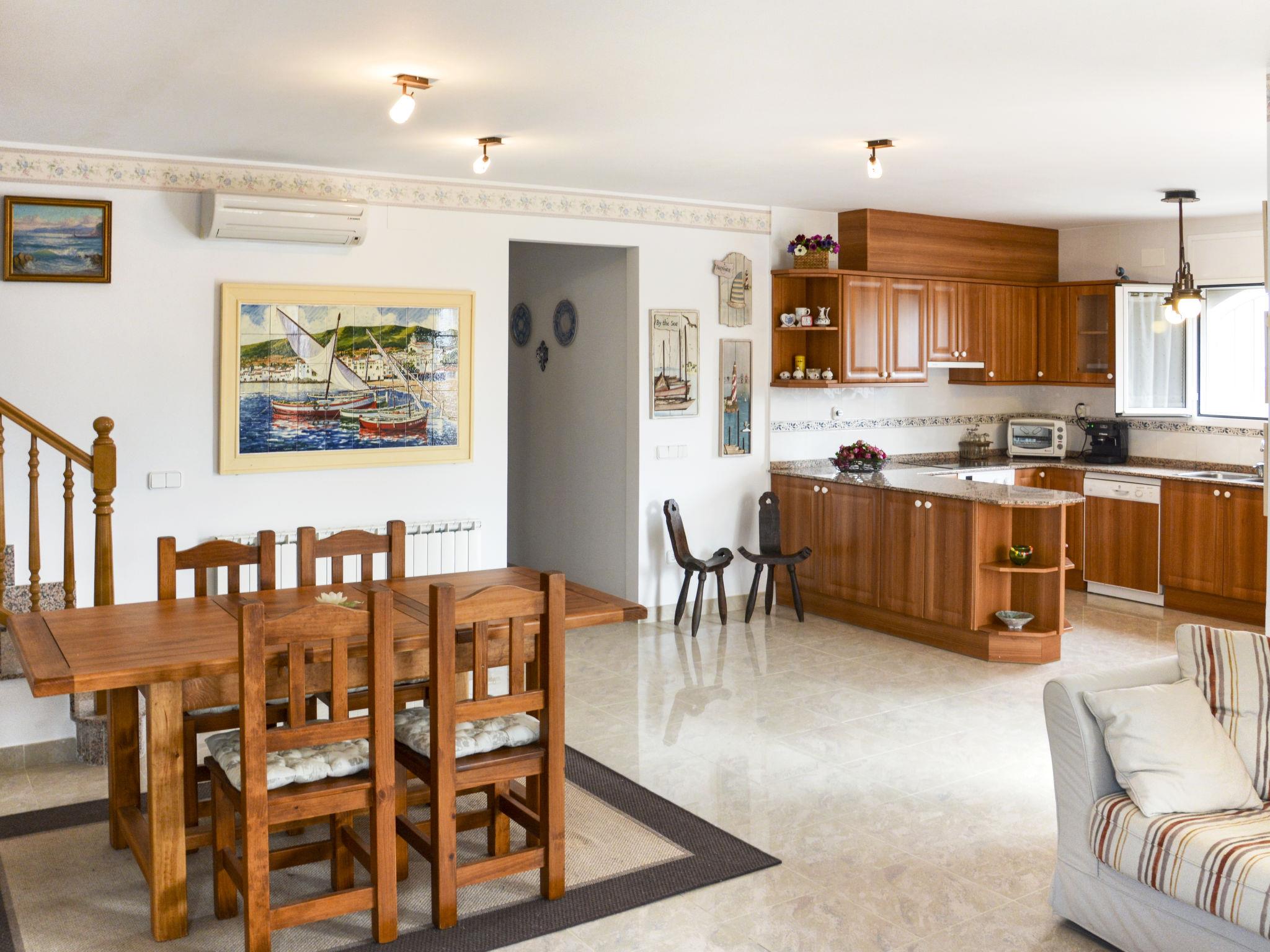 "Silvia", 4-room villa 160 m2 on 2 levels. Cosy furnishings: living/dining room with open-hearth fireplace, dining table, satellite TV, radio, DVD, electric heating and air conditioning. Exit to the terrace. 1 room with 1 french bed (160 cm, length 190 cm), bath/WC and double hand-basin. 1 room with 2 beds (80 cm, length 190 cm). Open kitchen (oven, dishwasher, 4 ceramic glass hob hotplates, microwave, freezer, grill, electric coffee machine). Shower/WC. Upper floor: 1 room with 1 french bed (140 cm, length 190 cm), bath/WC, double hand-basin, electric heating and air conditioning. Exit to the balcony. Balcony, terrace roofed. Terrace furniture, barbecue, deck chairs (6). Facilities: washing machine, iron, mosquito net, baby cot (extra). Internet (WiFi, free). HUTT011676 // Reg. Nr.: ESFCTU00004303200013386500000000000000HUTT-011676-446