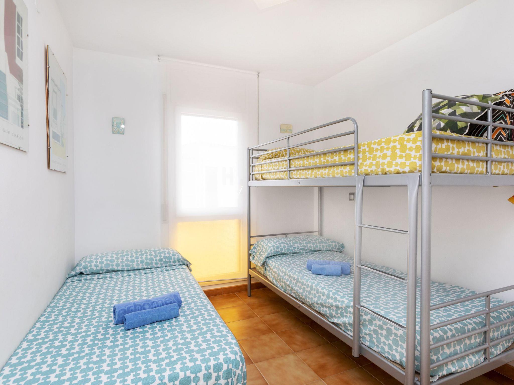 "Geminis", 4-room apartment 65 m2 on 3rd floor. Practical and comfortable furnishings: with dining table and digital TV. Exit to the terrace. 2 rooms, each room with 1 french bed (135 cm). 1 room with 1 bed (90 cm), 1 x 2 bunk beds (90 cm). Kitchen (3 hot plates, oven, dishwasher, toaster, kettle, microwave) with bar. Bath/WC, shower/WC. Air-conditioning. No heating option. Terrace 6 m2. Terrace furniture. View of the sea. Facilities: washing machine, iron, hair dryer. Internet (WiFi, free). Parking space n 19 at the house. Please note: no lift. HUTT-000157 // Reg. Nr.: ESFCTU00004300100052632800000000000000000HUTT-0001579