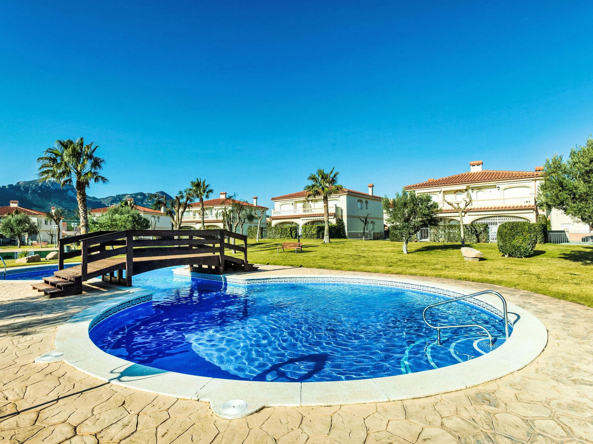 Urb El Casalot: Beautiful resort "Jalisco 2". 3 km from the centre of Miami-Platja, 3.5 km from the sea, 3.5 km from the beach. For shared use: large, beautiful garden with lawn 600 m2, swimming pool (6 x 4 m, depth 80 - 190 cm, seasonal availability: 01.Apr. - 30.Oct. pool opening hours: 10:00-21:00). Children's pool, outdoor shower, parking. Grocery 150 m, supermarket 1.5 km, restaurant, bar 150 m, bus stop 600 m, railway station "Hospitalet Infant" 5 km. Nearby attractions: Parque Portaventura 28 km, parque acuático Aquopolis 31 km, parque Natural del Delta del Ebro 53 km, Tarragona 37 km, Reus 30 km, Barcelona 132 km. Please note: car recommended.