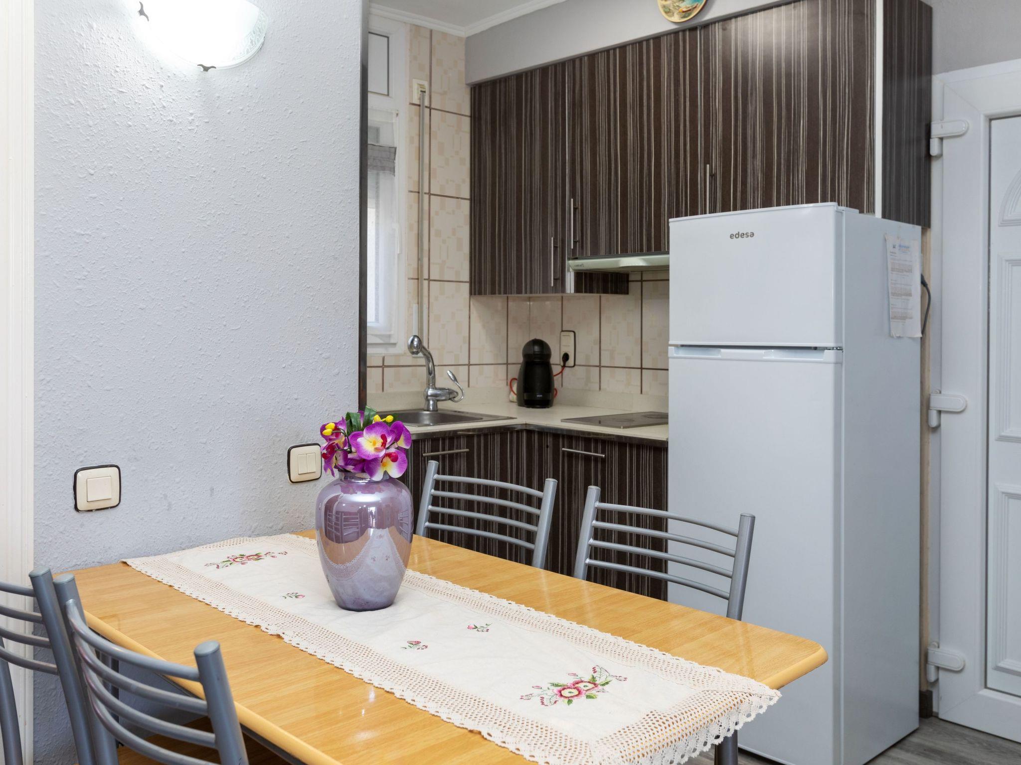"Eden Park 2", 4-room villa 65 m2 on 2 levels. Comfortable and cosy furnishings: living/dining room with dining table, digital TV and air conditioning. Exit to the patio. 1 room with 1 bed (135 cm), 1 x 2 bunk beds (90 cm), digital TV. Kitchen (oven, 4 ceramic glass hob hotplates, toaster, kettle, microwave, electric coffee machine). Shower/WC. Upper floor: 1 room with 1 french bed (135 cm), air conditioning. 1 room with 1 french bed (150 cm). Shower/WC. No heating option. Patio. Terrace furniture, barbecue. Facilities: washing machine, iron, baby cot for up to 2 year olds, hair dryer. Internet (WiFi, free). Parking at the house. Exterior ground floor bathroom. HUTT-000165 // Reg. Nr.: ESFCTU00004303200006896900000000000000000HUTT-0001650