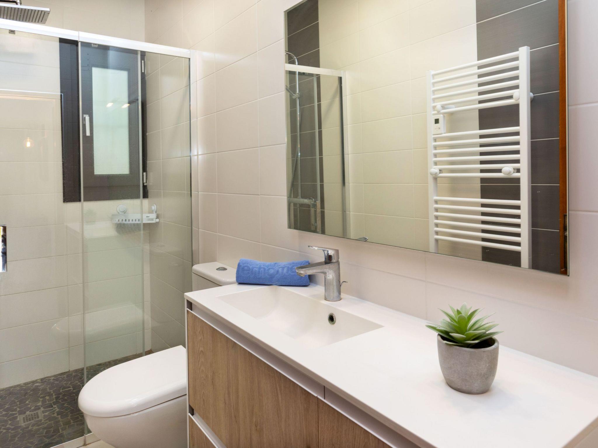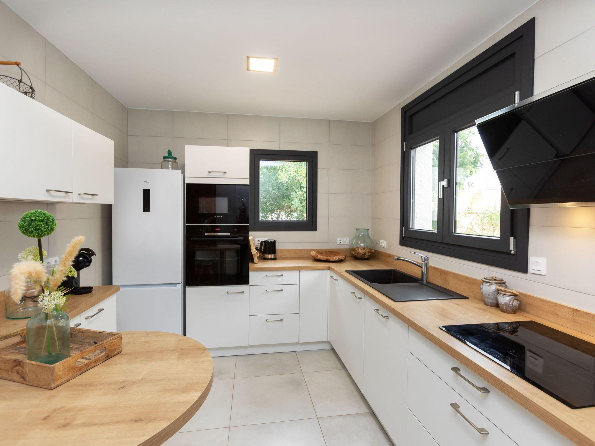 "Villa Gaia", 4-room villa 97 m2. Comfortable and cosy furnishings: living/dining room with dining table, satellite TV and air conditioning. Exit to the patio. 1 room with 1 french bed (135 cm), air conditioning. 2 rooms, each room with 2 beds (90 cm), air conditioning. Kitchen (oven, dishwasher, 3 induction hot plates, kettle, microwave, electric coffee machine, Capsules for coffee machine (Dolce gusto) extra). 2 showers/WC. (120 litres). No heating option. Large terrace, garden. Terrace furniture, barbecue, covered balcony. Facilities: washing machine, iron, hair dryer. Internet (WiFi, free). Parking at the house. Please note: non-smoking house. TV only FR. HUTT-058910 // Reg. Nr.: ESFCTU00004303200000887300000000000000000HUTT-0589101