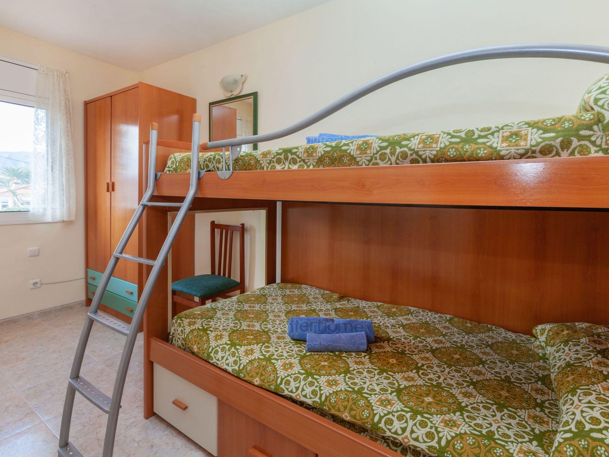 "Villa Formentera", 4-room villa 105 m2 on 2 levels. Comfortable and cosy furnishings: living/dining room with 1 sofabed (120 cm), dining table, satellite TV and digital TV. Exit to the terrace. Kitchen (oven, dishwasher, 4 ceramic glass hob hotplates, toaster, kettle, microwave, electric coffee machine). Shower/WC. No heating option. Upper floor: 1 room with 1 french bed (135 cm). 1 room with 1 x 2 bunk beds (90 cm). 1 room with 1 bed (90 cm). Bath/bidet/WC. Patio. Terrace furniture, barbecue. Facilities: washing machine, iron, children's high chair, baby cot, hair dryer. Internet (WiFi, free). Parking at the house. Please note: parking space for small car only. HUTT014665 // Reg. Nr.: ESFCTU000043032000119241000000000000000000HUTT0146653
