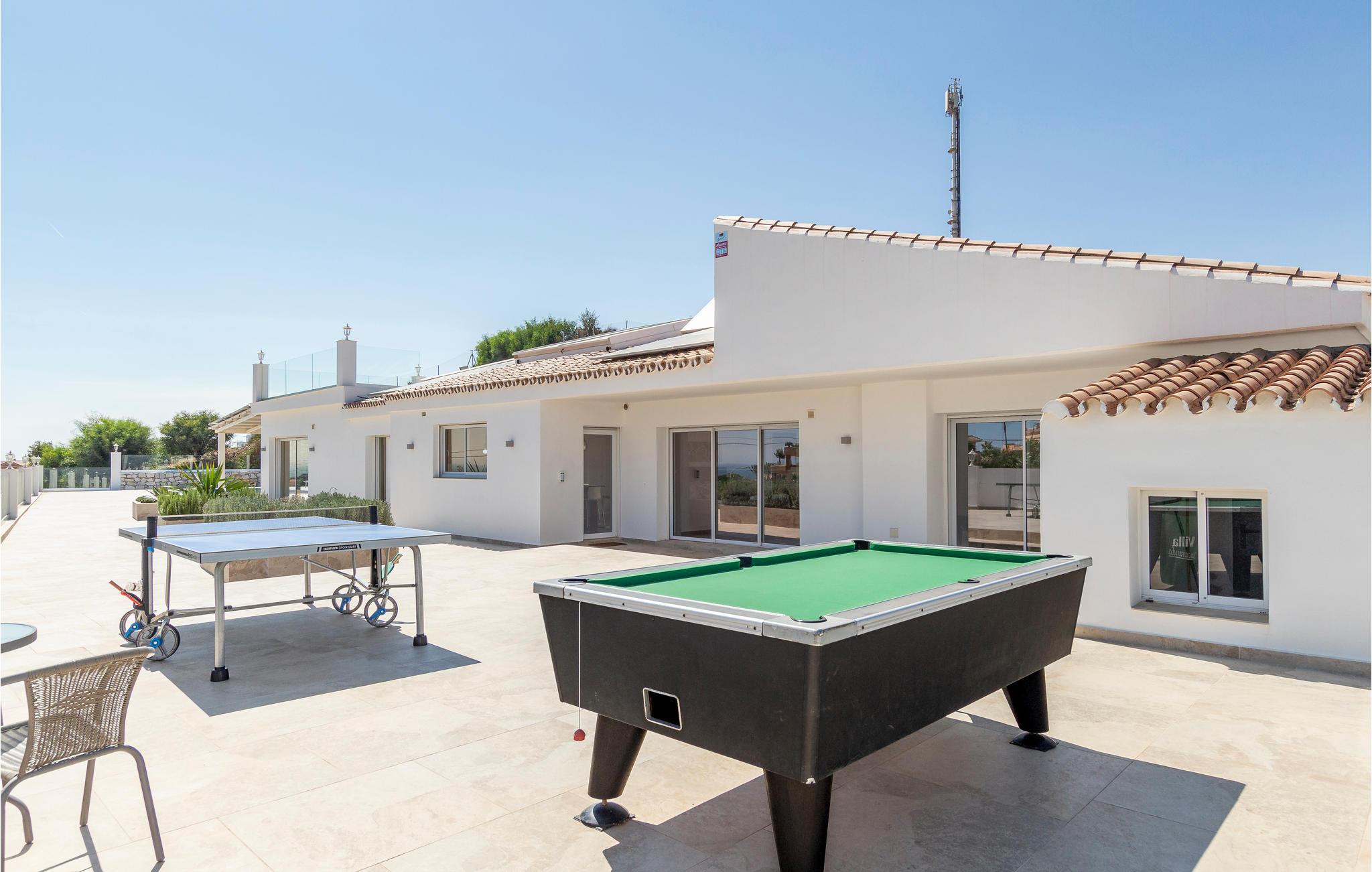 Feriehusets udendørsområde er virkelig imponerende.Slap af på terrassen og tilbered jeres måltider i udendørskøkkenet, hvor der både er elektrisk grill og kulgrill. Et poolbord og bordtennis er også tilgængelige.