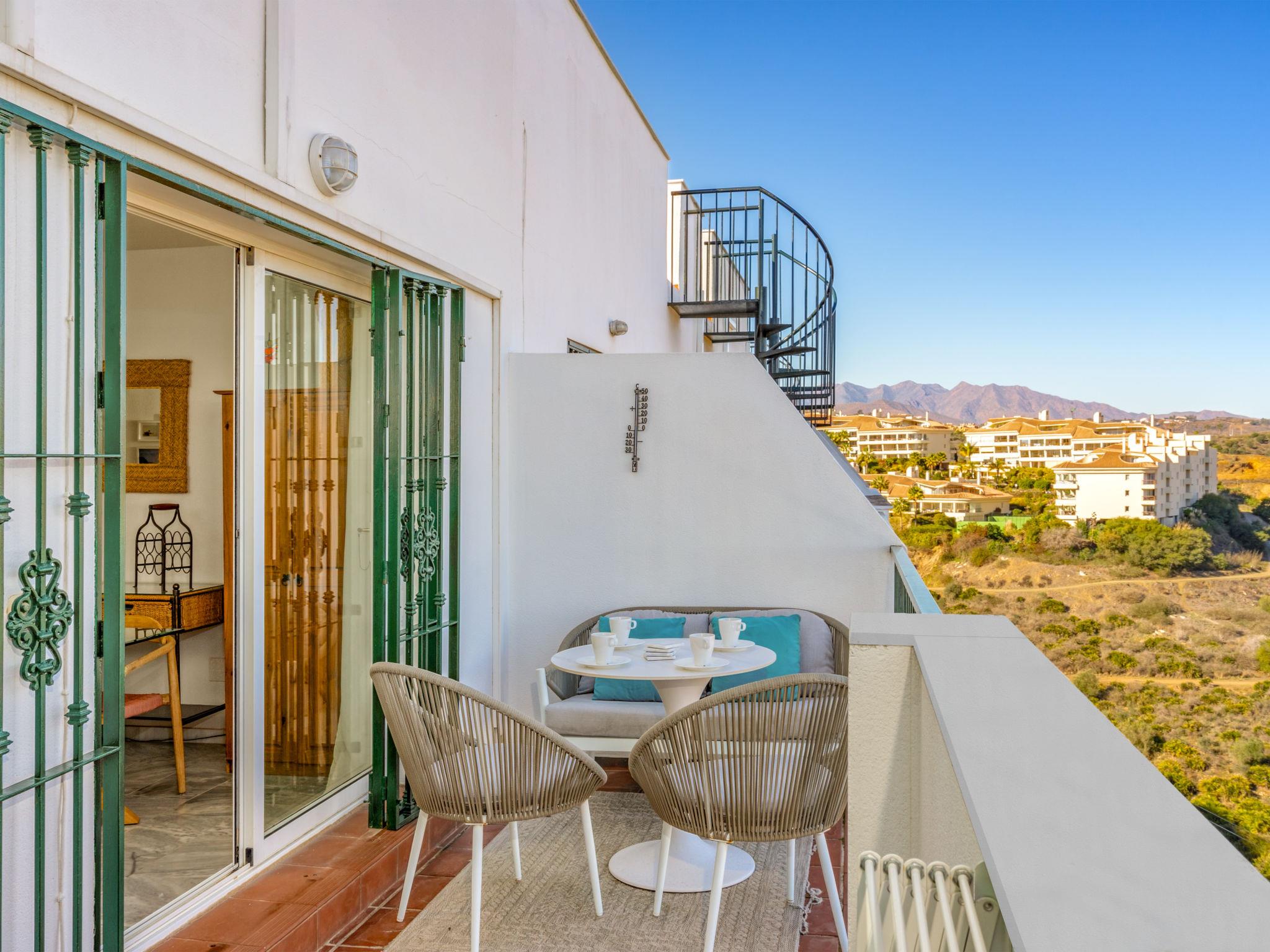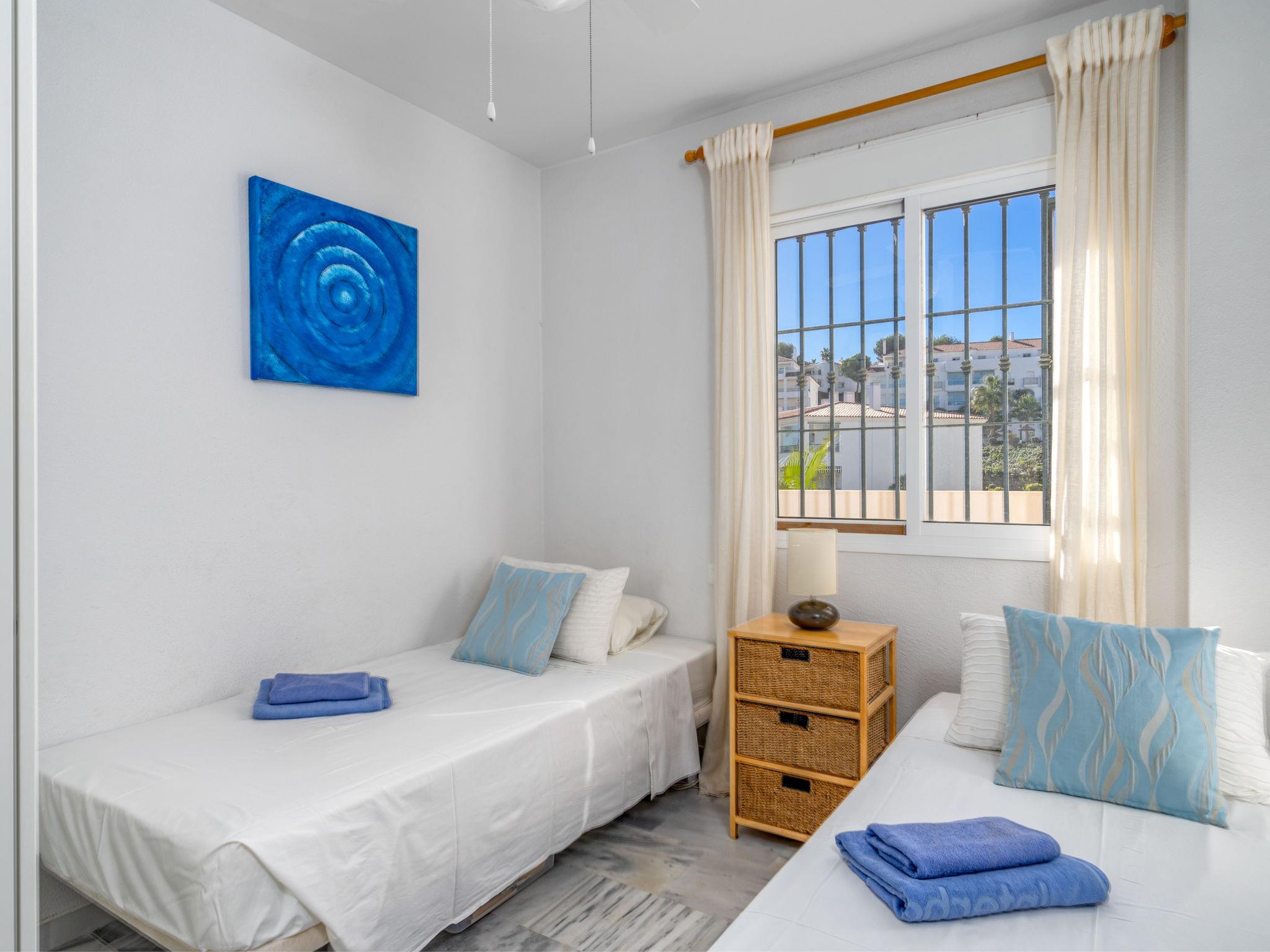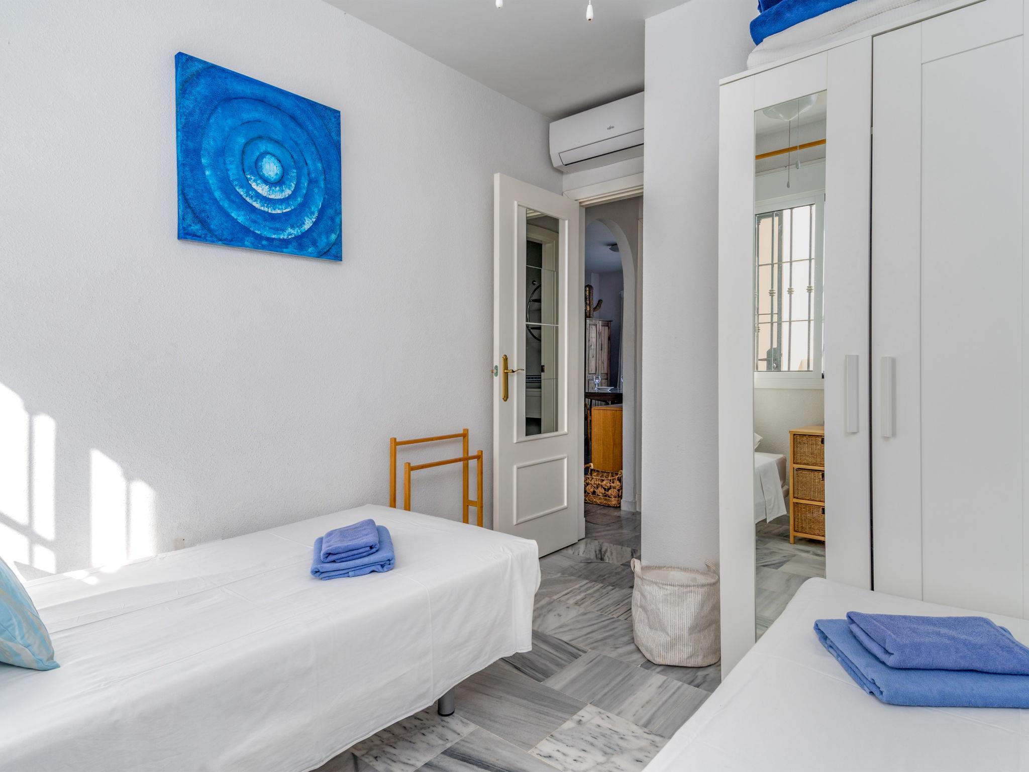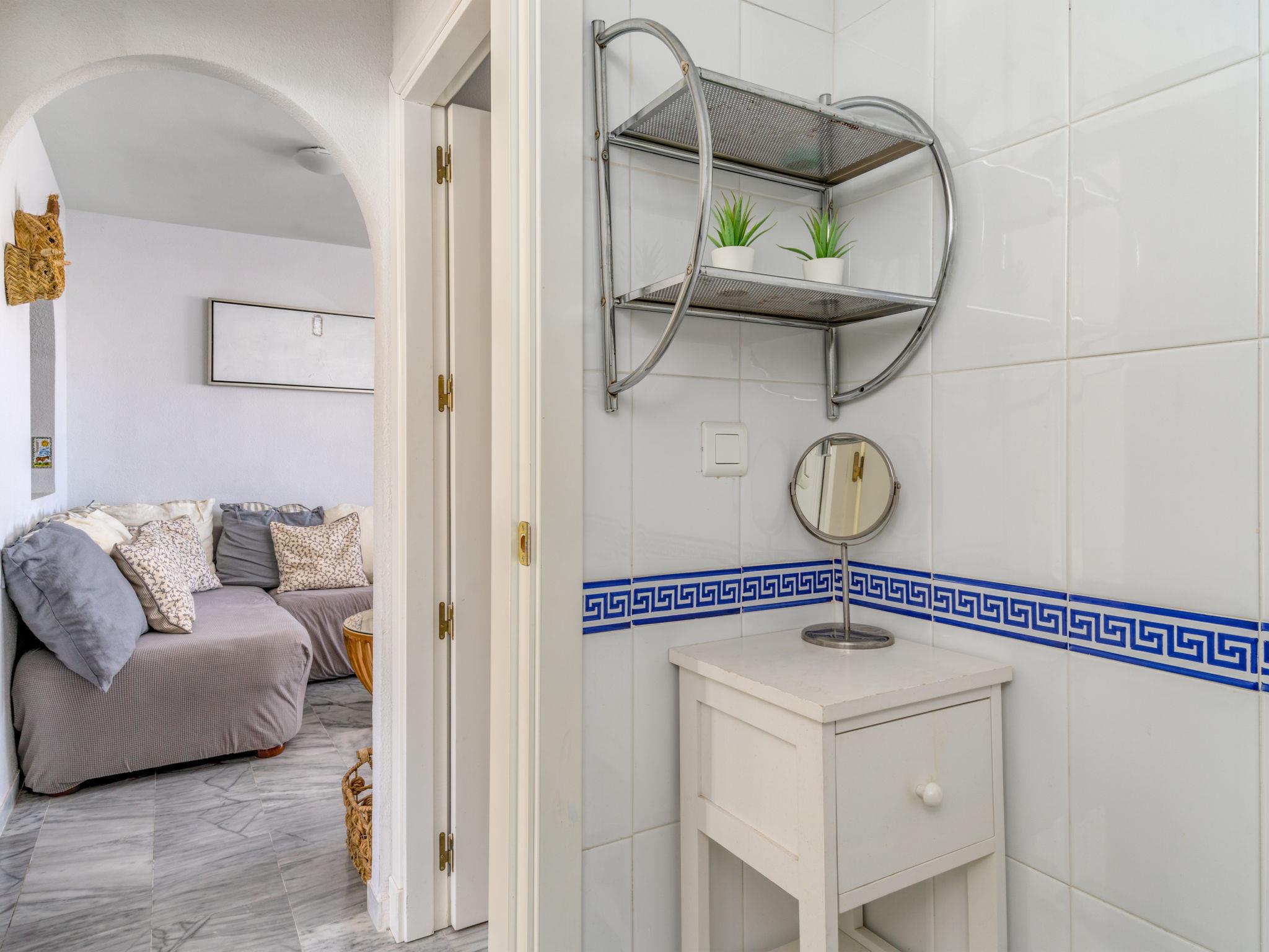 Beautiful, cosy apartment block "Angel Blanco". On the outskirts, 1.5 km from the centre of La cala de Mijas, 500 m from the sea, in a cul-de-sac, east facing position. For shared use: terraced garden, 2 swimming pools (seasonal availability: 16.May. - 30.Sep. pool opening hours: 11:00-21:00). Children's pool. In the house: central heating system, air conditioning, washing machine. Parking. Grocery, restaurant, bar 400 m, bus stop "Torrenueva V" 900 m, sandy beach "El Bombo" 500 m. Object suitable for 4 adults. Please note: airfield 35 km from the property. Big rectangular swimming pool in the center of the complex (seasonal availability: around 16th of May until about mid or end of Sep depending on weather conditions. Pool opening hours 16th-31st May: 11:00-19:00, 1st Jun-31st Aug: 11:00-21:00, 1st-15th Sep: 11:00-20:00). Children’s pool next to the big swimming pool. Roundshaped salt water swimming pool at the other side of the complex.
