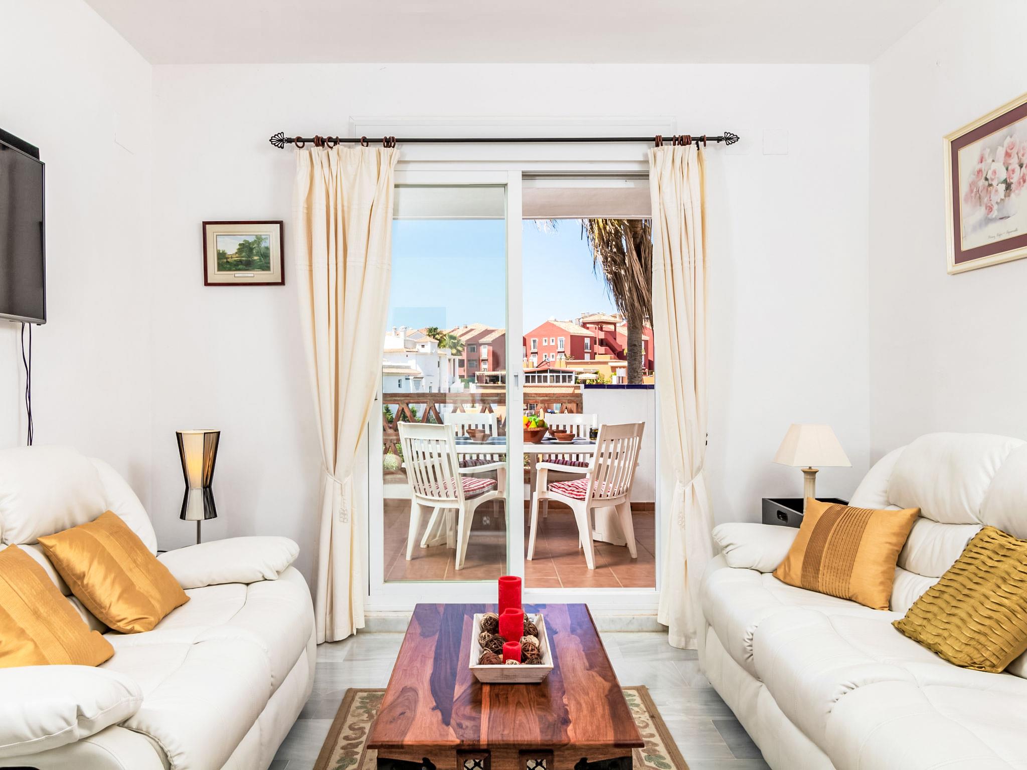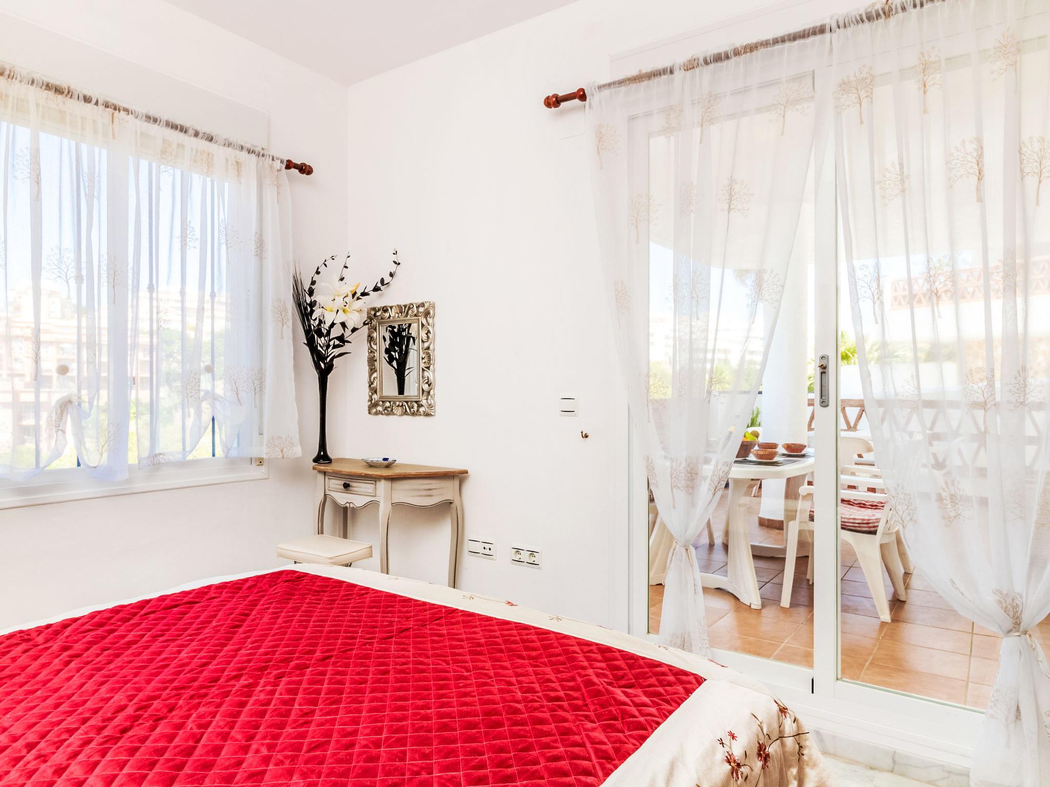 "Island of Riviera Golf", 3-room apartment 65 m2 on 1st floor, west facing position. Object suitable for 4 adults. Living/dining room with TV and international TV channels. Exit to the terrace. 1 room with 1 double bed and bath/bidet/WC (private). 1 room with 2 beds. Kitchen (oven, dishwasher, 4 ceramic glass hob hotplates, microwave, freezer). Shower/WC. Electric heating, air-conditioning, boiler (80 litres). Terrace 19 m2. Terrace furniture, barbecue. Partial view of the sea and the mountains. Facilities: washing machine. Internet (WiFi, free). Garage space n 48. Please note: non-smokers only. VUT/MA/27209 // Reg. Nr.: ESFCTU0000290440007094520000000000000000VUT/MA/272091