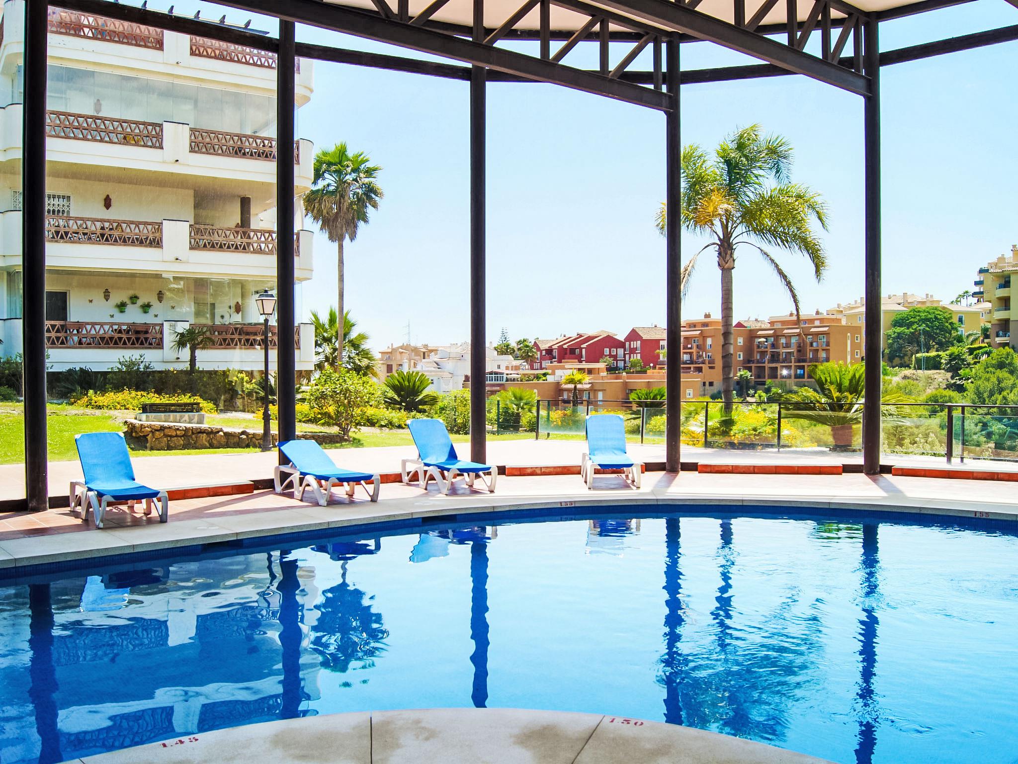 Riviera del sol: Modern, comfortable apartment block "Island of Riviera Golf", built in 2008. 800 m from the centre of Riviera del sol, 17 km from the centre of Marbella, outside the resort, 12 km from the centre of Fuengirola, in a sunny, elevated position, 1.5 km from the sea, in a cul-de-sac, on the golf course. For shared use: property (fenced), garden, swimming pool heated (15 x 10 m, seasonal availability: 01.Jan. - 31.Dec.). Shower/WC in the pool area, children's pool, tennis, floodlit. In the complex: lift. Communal covered parking. Shop 800 m, supermarket 1.8 km, bus stop "Golf Miraflores" 600 m, sandy beach "Cabopino" 5 km, shingle beach 1.5 km. Sports harbour 5 km, golf course (18 hole) 750 m.