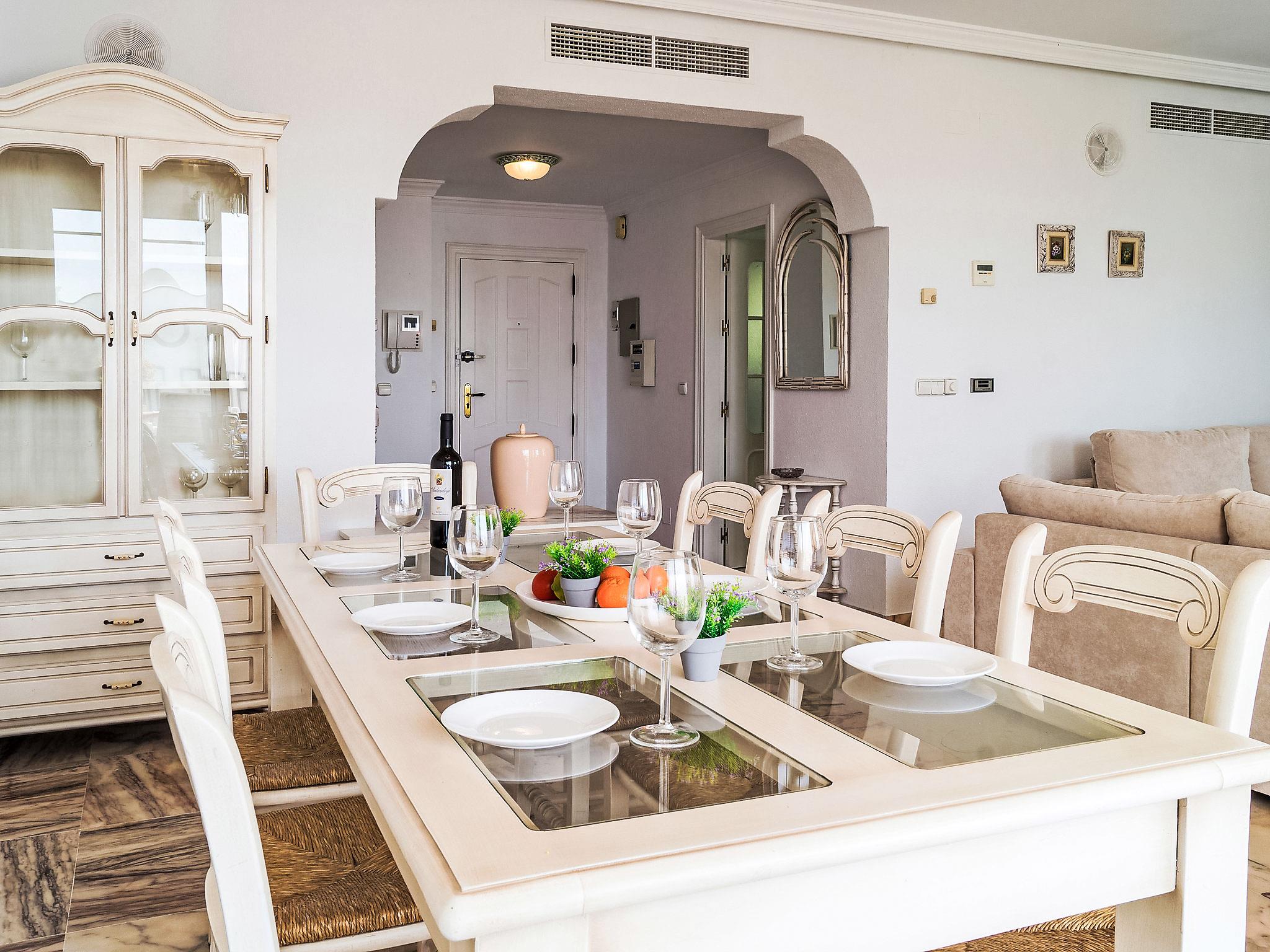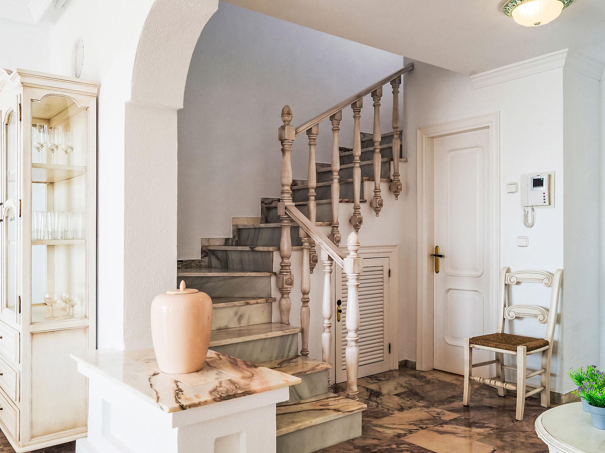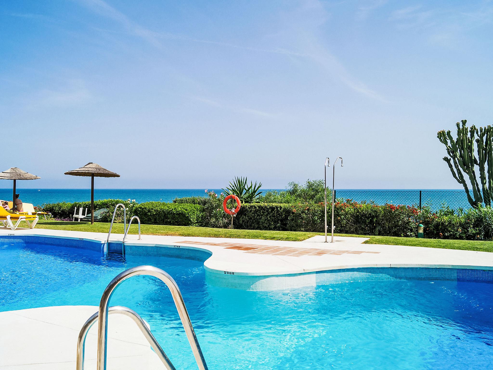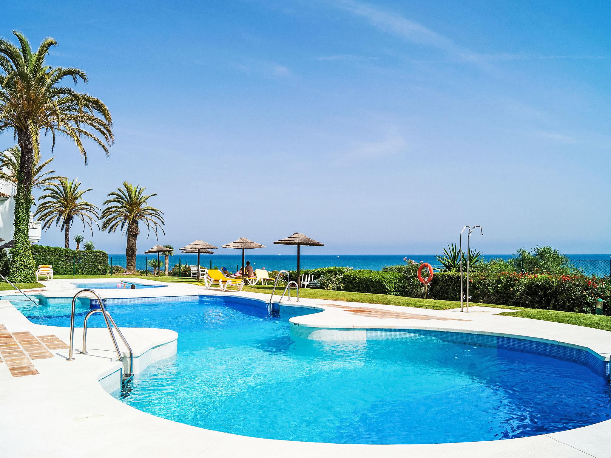 Holiday development "Mijas Beach". 3 km from the centre of La cala de Mijas, 15 km from the centre of Fuengirola, 200 m from the sea, 200 m from the beach. For shared use: garden 10'000 m2, swimming pool (depth 120 - 220 cm, seasonal availability: 15.Mar. - 30.Oct.). Children's pool, tennis, parking. Shop 300 m, supermarket 1 km, restaurant 500 m, bar 1 km, bus stop 20 m, sandy beach 200 m. Please note: part of the house is closed and unoccupied. Main road 30 m from the property. Neighbourhood highly sensitive to noise. Quietness and good behaviour expected.