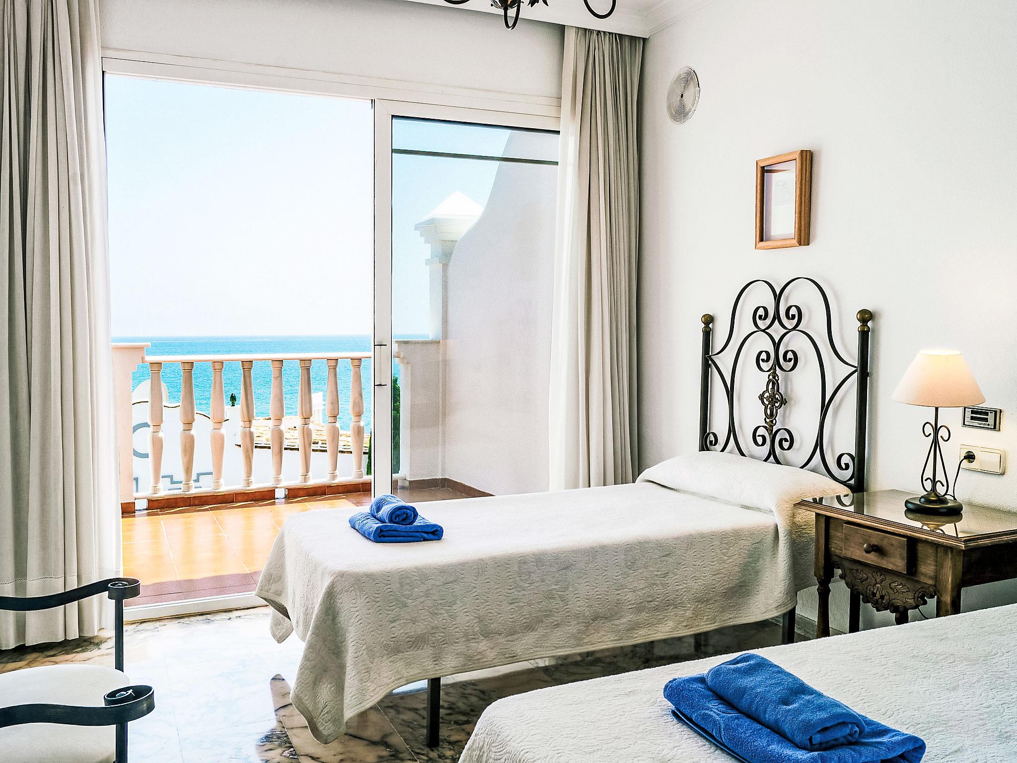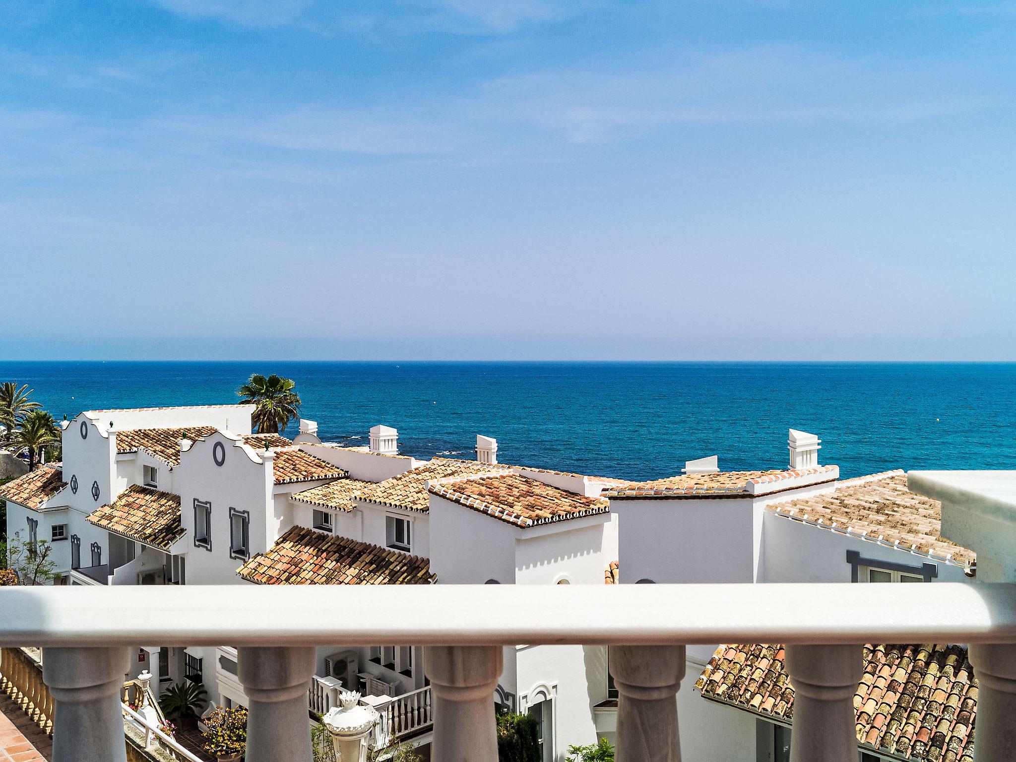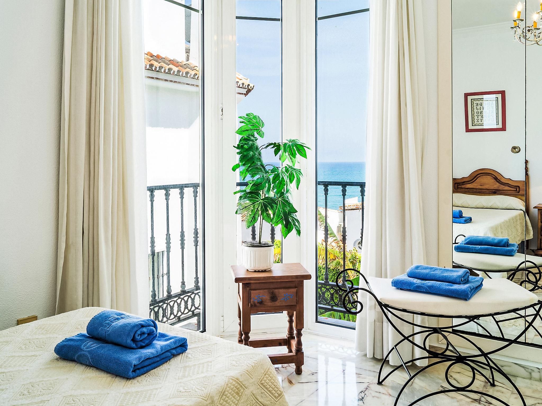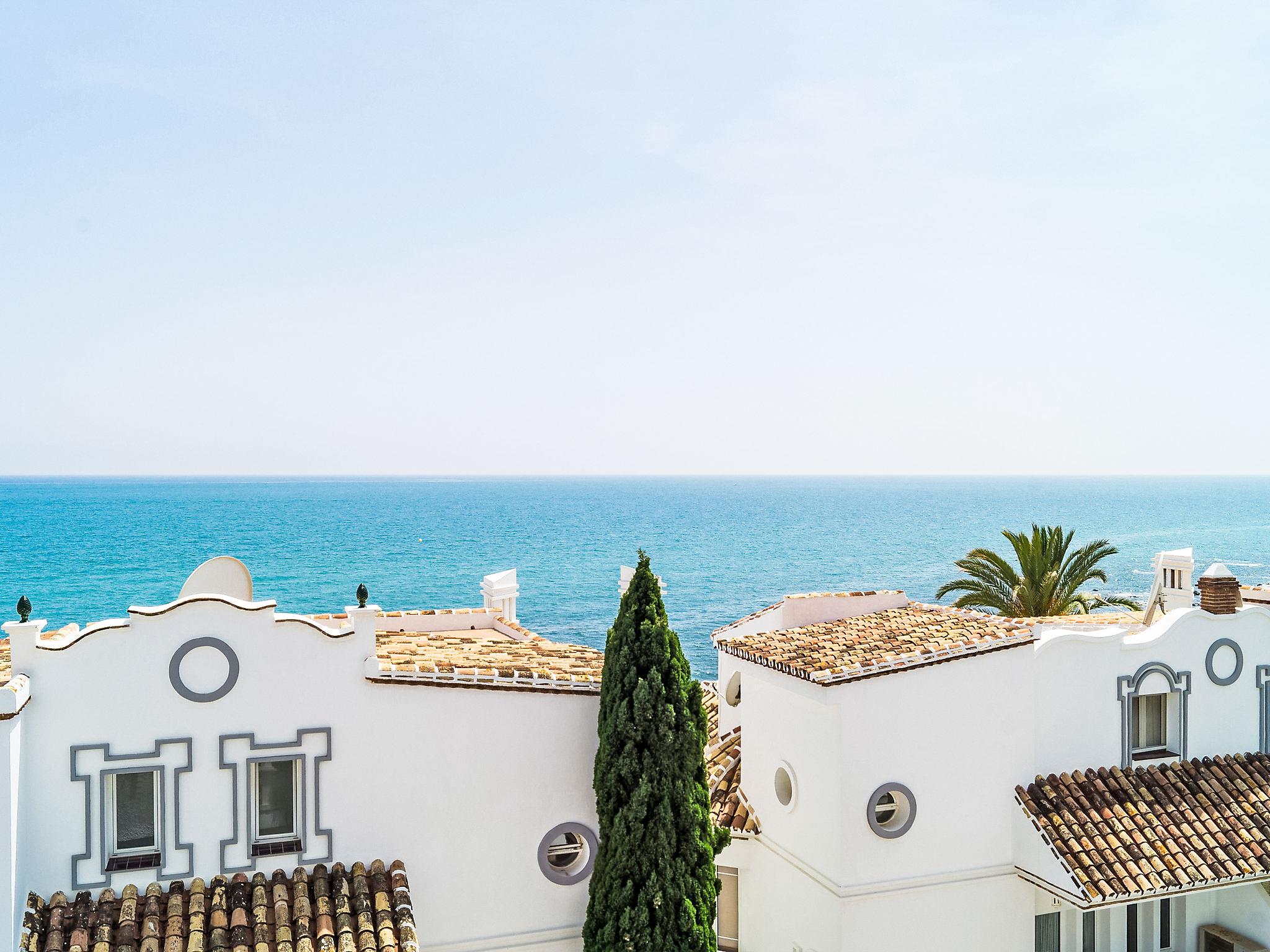 "Mijas Beach", 4-room terraced house 230 m2 on 2 levels. Object suitable for 6 adults + 2 children. Partly renovated in 2016: living/dining room 40 m2 with 1 double sofabed (135 cm, length 190 cm), digital TV, air conditioning and forced-air heating. Exit to the terrace. Kitchen (oven, dishwasher, 4 ceramic glass hob hotplates, microwave, freezer). Sep. WC. Underfloor heating. Upper floor: 1 room with 1 french bed, bath/bidet/WC, hand-basin and TV. Exit to the terrace. 1 room with 2 beds and TV. Exit to the terrace. 1 room with 2 beds. Bath/bidet/WC. Underfloor heating. Terrace 20 m2. View of the sea. Facilities: washing machine, children's high chair, baby cot. Internet (WiFi, free). Parking. VUT/MA/10340 // Reg. Nr.: ESFCTU0000290440001288710000000000000000VUT/MA/103401