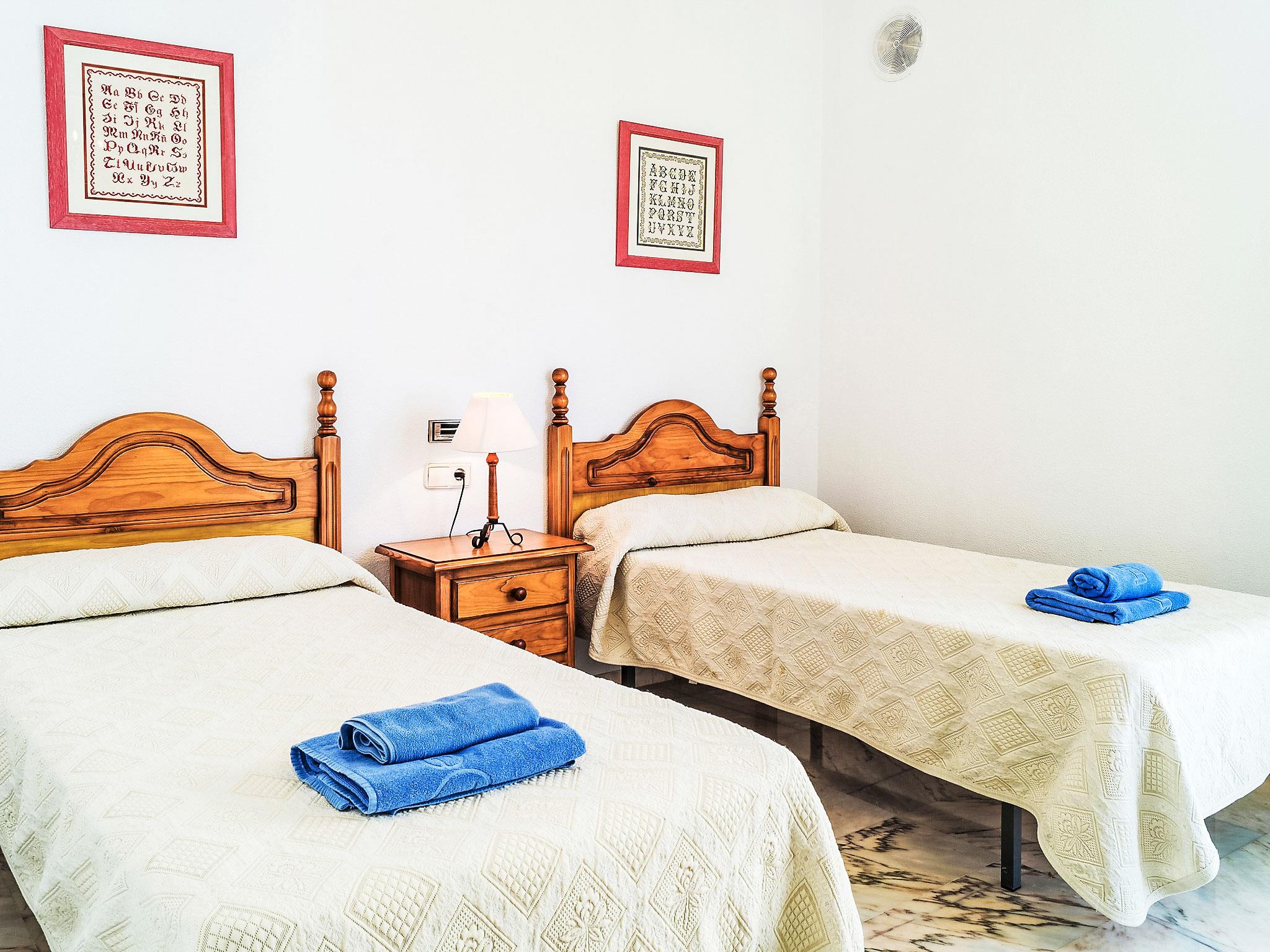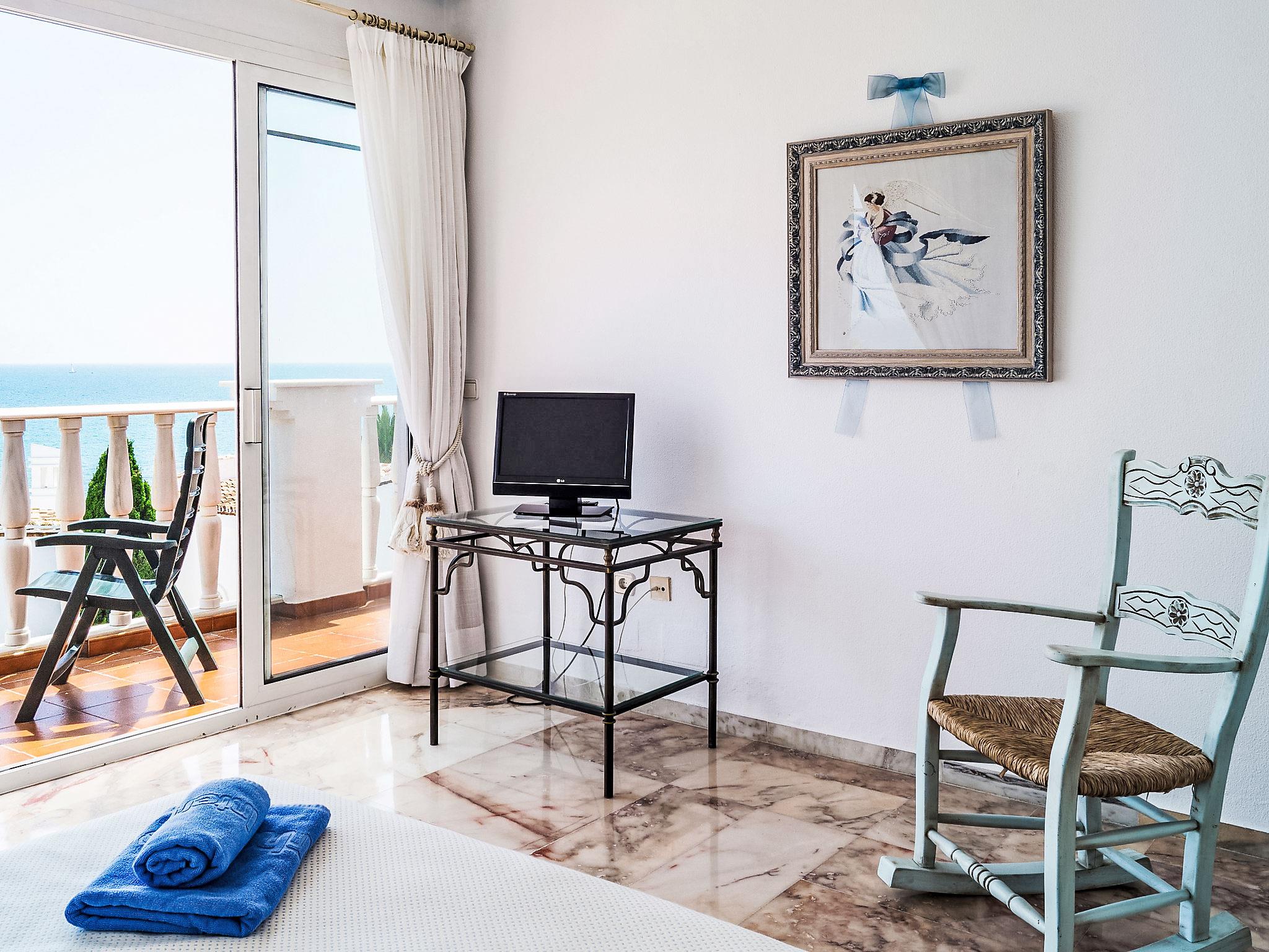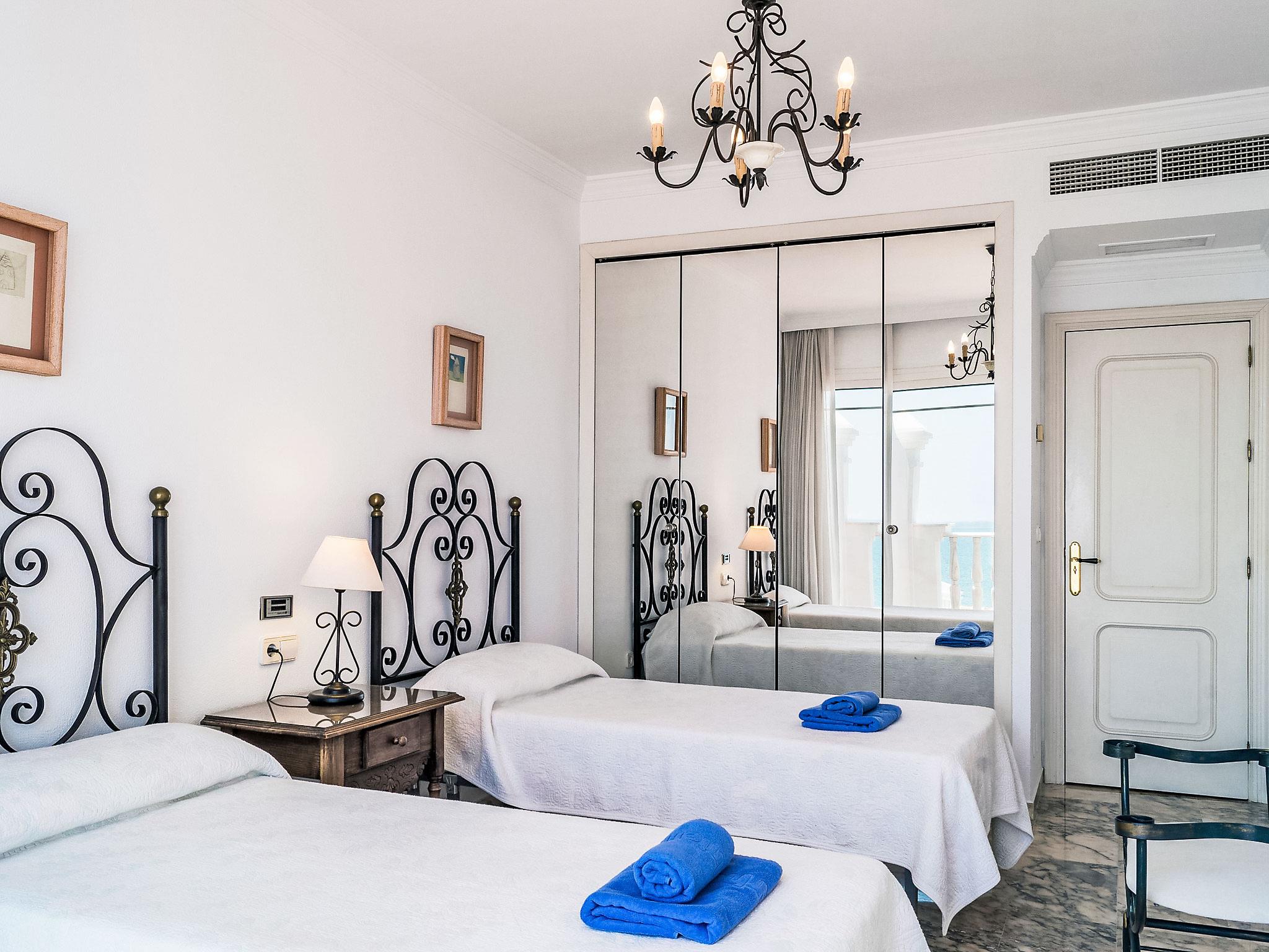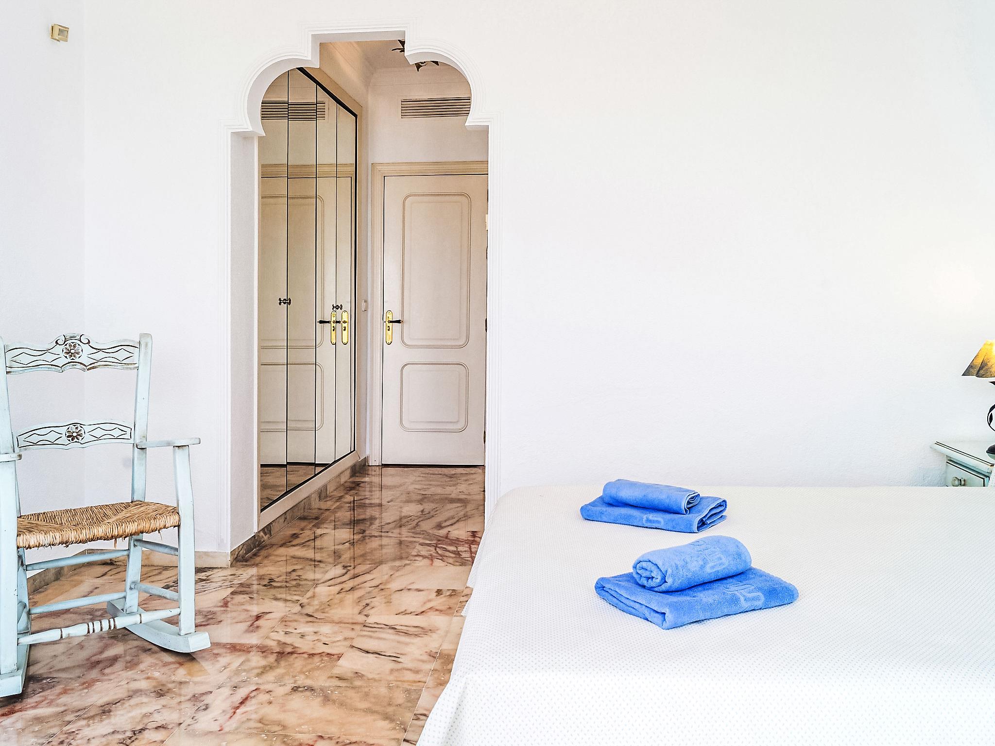 "Mijas Beach", 4-room terraced house 230 m2 on 2 levels. Object suitable for 6 adults + 2 children. Partly renovated in 2016: living/dining room 40 m2 with 1 double sofabed (135 cm, length 190 cm), digital TV, air conditioning and forced-air heating. Exit to the terrace. Kitchen (oven, dishwasher, 4 ceramic glass hob hotplates, microwave, freezer). Sep. WC. Underfloor heating. Upper floor: 1 room with 1 french bed, bath/bidet/WC, hand-basin and TV. Exit to the terrace. 1 room with 2 beds and TV. Exit to the terrace. 1 room with 2 beds. Bath/bidet/WC. Underfloor heating. Terrace 20 m2. View of the sea. Facilities: washing machine, children's high chair, baby cot. Internet (WiFi, free). Parking. VUT/MA/10340 // Reg. Nr.: ESFCTU0000290440001288710000000000000000VUT/MA/103401