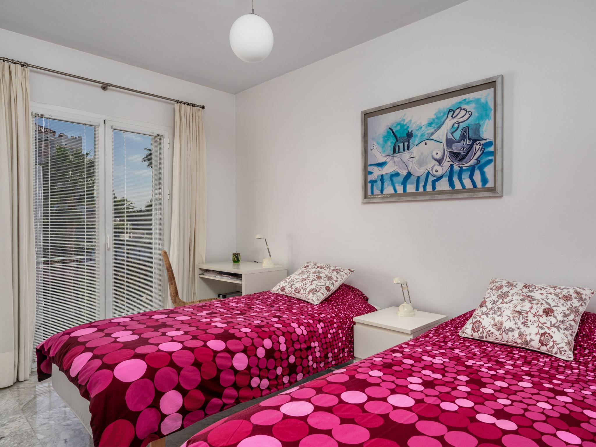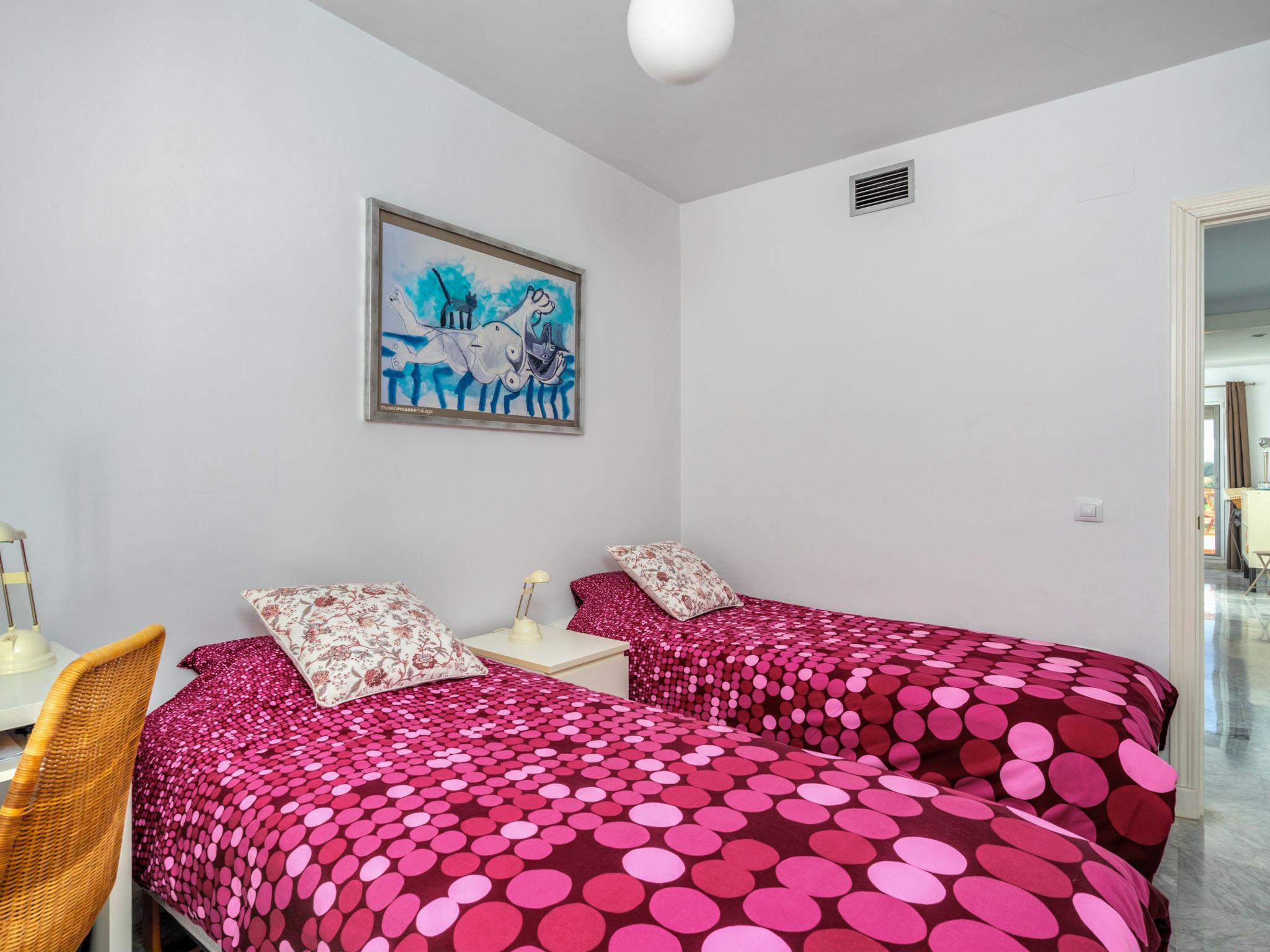 "Las Golondrinas Golf view", 3-room apartment 84 m2, on the upper floor, south-west facing position. Comfortable and beautiful furnishings: living/dining room with digital TV. Exit to the terrace. 1 room with 1 french bed (180 cm, length 200 cm). Exit to the terrace. 1 room with 2 beds (90 cm, length 200 cm). Kitchen (oven, dishwasher, 4 ceramic glass hob hotplates, toaster, kettle, microwave, freezer, electric coffee machine). Shower/WC, shower/bidet/WC. Air-conditioning, forced-air heating. Terrace 40 m2, terrace 15 m2 partly roofed. Terrace furniture. Very beautiful view of golf course. Facilities: washing machine, iron, children's high chair, baby cot, hair dryer. Internet (WiFi, free). Garage space n 27. Please note: non-smokers only. VUT/MA/59766