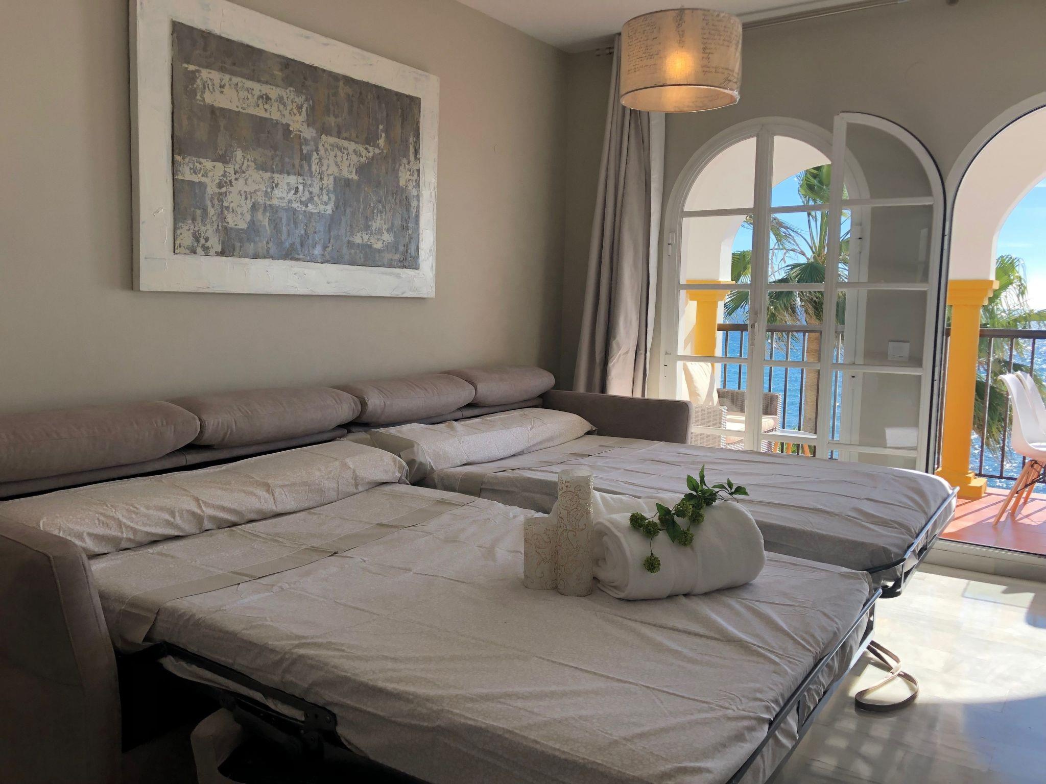 Discover the magic of the Costa del Sol by staying in this beachfront flat in La Cala de Mijas, Malaga, Andalusia. This charming accommodation promises to be the perfect holiday retreat, offering unrivalled sea views from its wonderful terrace, plus the convenience of free WiFi, and is ideal for families or groups of friends, with two bedrooms and a sofa bed for two people, ensuring a memorable stay by the sea.