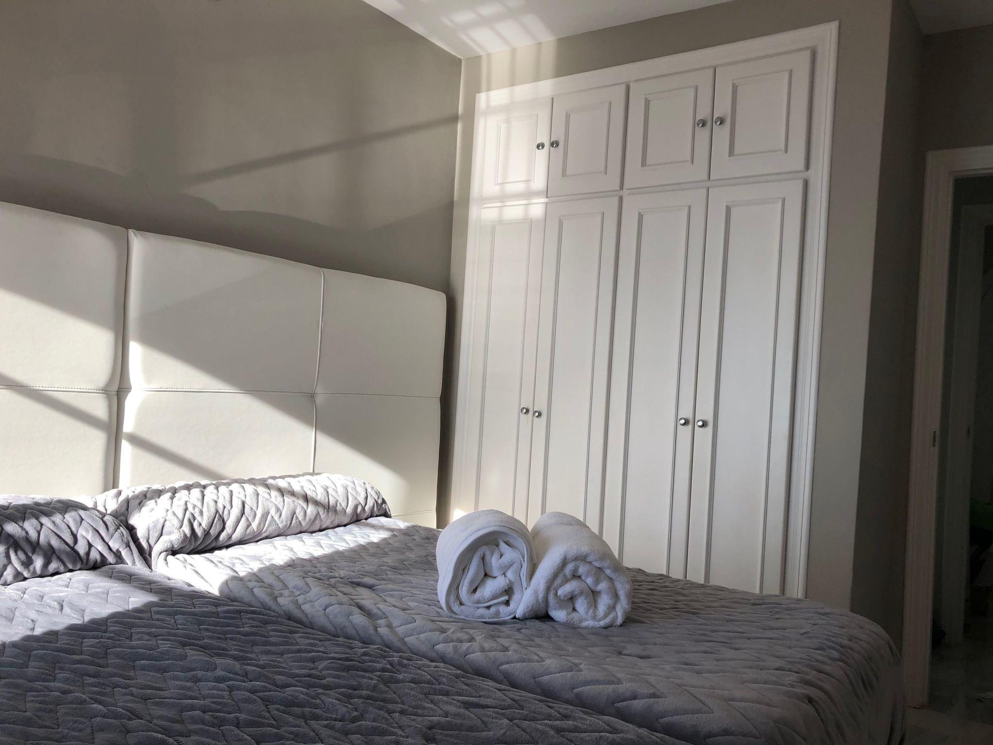 The interior of the flat is designed to offer the utmost comfort and convenience. There are two full bathrooms and a fully equipped kitchen with dishwasher and microwave, perfect for preparing meals just like at home. The living room has a flat-screen TV with access to channels in English, German, Russian, Arabic and Spanish. For your convenience, the flat includes free towels, sheets, blankets and toiletries.