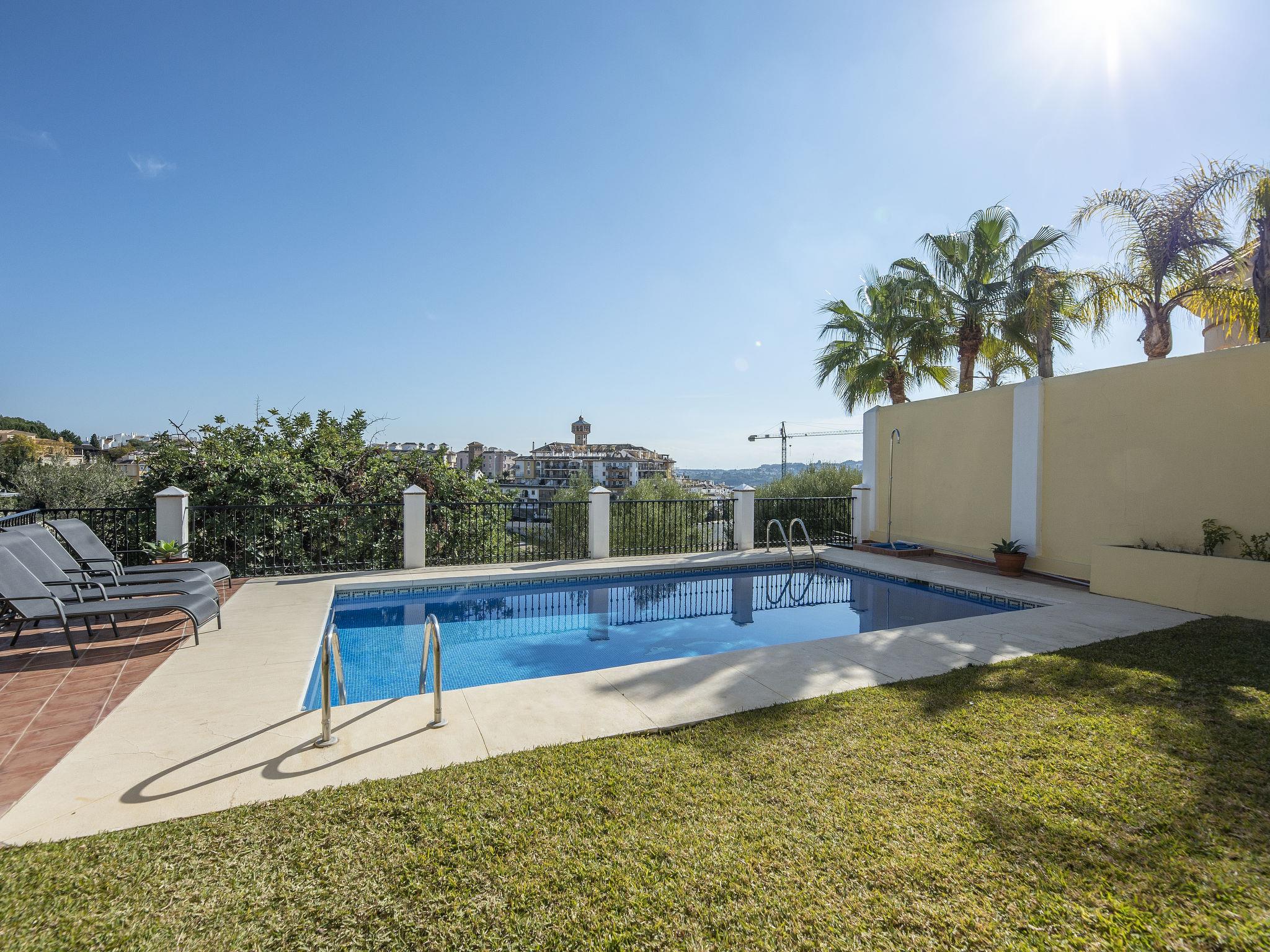Mijas Golf: Modern house "Villa Unica", 4 storeys, built in 2003. 5 km from the centre of Fuengirola, 8 km from the centre of La cala de Mijas, in a quiet position on top of a hill, 5 km from the sea, on the golf course. Private: property 800 m2 (fenced), garden with lawn, swimming pool angular (9 x 4 m, seasonal availability: 01.Jan. - 31.Dec.). In the house: billiard table. Public parking on the road. Grocery 1 km, restaurant 2 km, bus stop "Publito Mijas" 1.1 km, sandy beach "Fuengirola" 5 km. Golf course (36 hole) 1 km. Neighbourhood highly sensitive to noise. Quietness and good behaviour expected.
