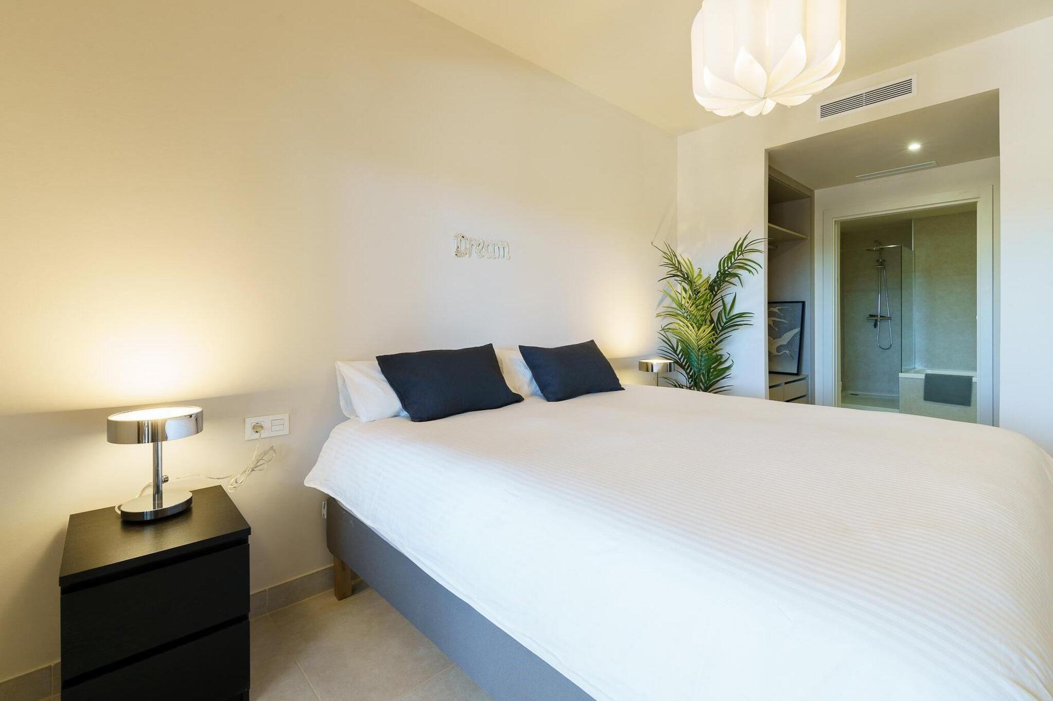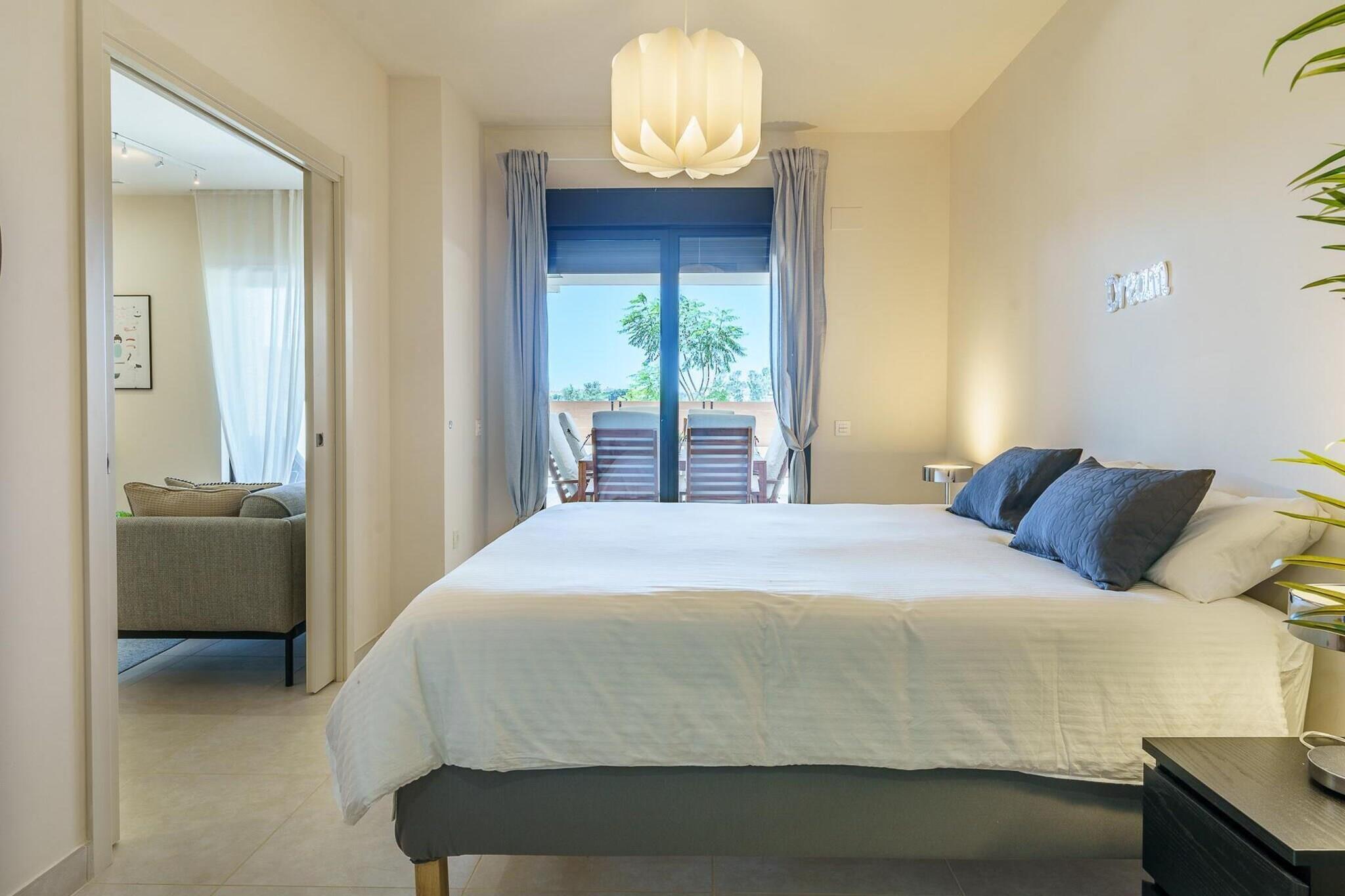 Træd ind i en verden af moderne elegance i denne nybyggede lejlighed, en sand perle i et eftertragtet boligområde, kun 600 meter fra den solbeskinnede strand La Cala de Mijas. Designet med rigeligt lys, åbne rum og minimalistisk stil, bidrager hver detalje til en atmosfære af ren afslapning og sofistikeret komfort. Her møder stil ro og skaber den perfekte ramme for en uforglemmelig ferie med familie eller venner. Denne udsøgte lejlighed har komfortabelt plads til seks gæster fordelt på tre smukt indrettede soveværelser og to uberørte badeværelser. Du vil øjeblikkeligt forelske dig i designermøblerne, der er valgt for at forbedre den rummelige og lyse atmosfære. Hjertet i dette hjem er dens store private terrasse, et sandt udendørsparadis med dedikerede afslapnings- og spiseområder, hvor du kan nyde middelhavssolen og nyde måltider under åben himmel. Selve urbaniseringen kan prale af et vidtstrakt haveområde, der skaber en frodig, grøn oase omkring den indbydende fælles pool. Beliggende i La Noria, et førsteklasses boligområde, er du perfekt placeret til både fritid og bekvemmelighed. Spil tee på de nærliggende golfbaner, besøg det charmerende lokale marked, eller slentre blot et par minutter til den pulserende by La Cala de Mijas. Her venter en gastronomisk scene i verdensklasse, lige fra innovativ moderne mad til traditionelle strandbarer som den berømte Olivia's eller BeachClub Florida. Med supermarkedet lige på den anden side af gaden og stranden, restauranterne og byen inden for gåafstand, er alle nødvendigheder og ønsker lige ved hånden. Gå ikke glip af en afslappet gåtur langs den maleriske kyststi, den perfekte afslutning på dine solkyssede dage ved havet.