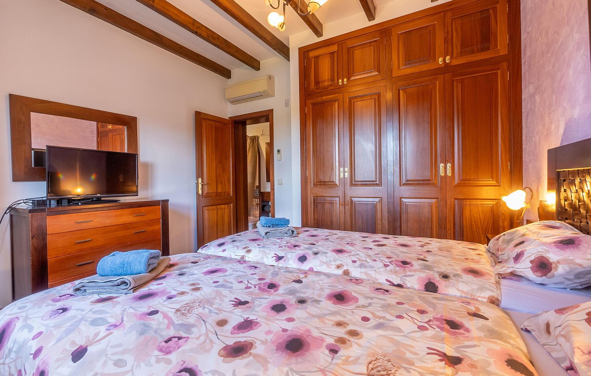 Denne smukke finca er ideelt placeret til at udforske både de maleriske Tramuntana-bjerge og Mallorcas mangfoldige kyst. Gør jeres ærinder i shoppingbyen Inca og smag mallorcanske retter i en af ??de rustikke kælderrestauranter. Gå en tur gennem det farverige ugentlige marked i Sineu og gå ikke glip af en svømmetur i det turkise vand på Alcúdias kilometerlange sandstrand.