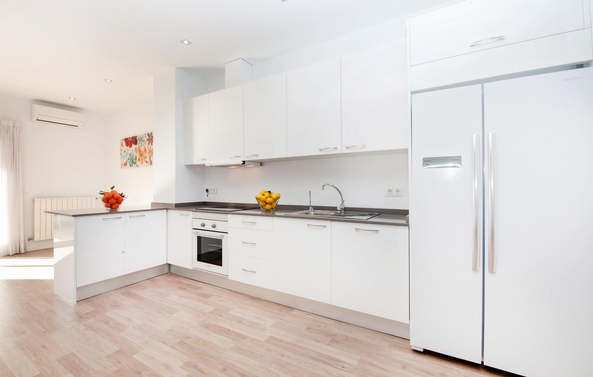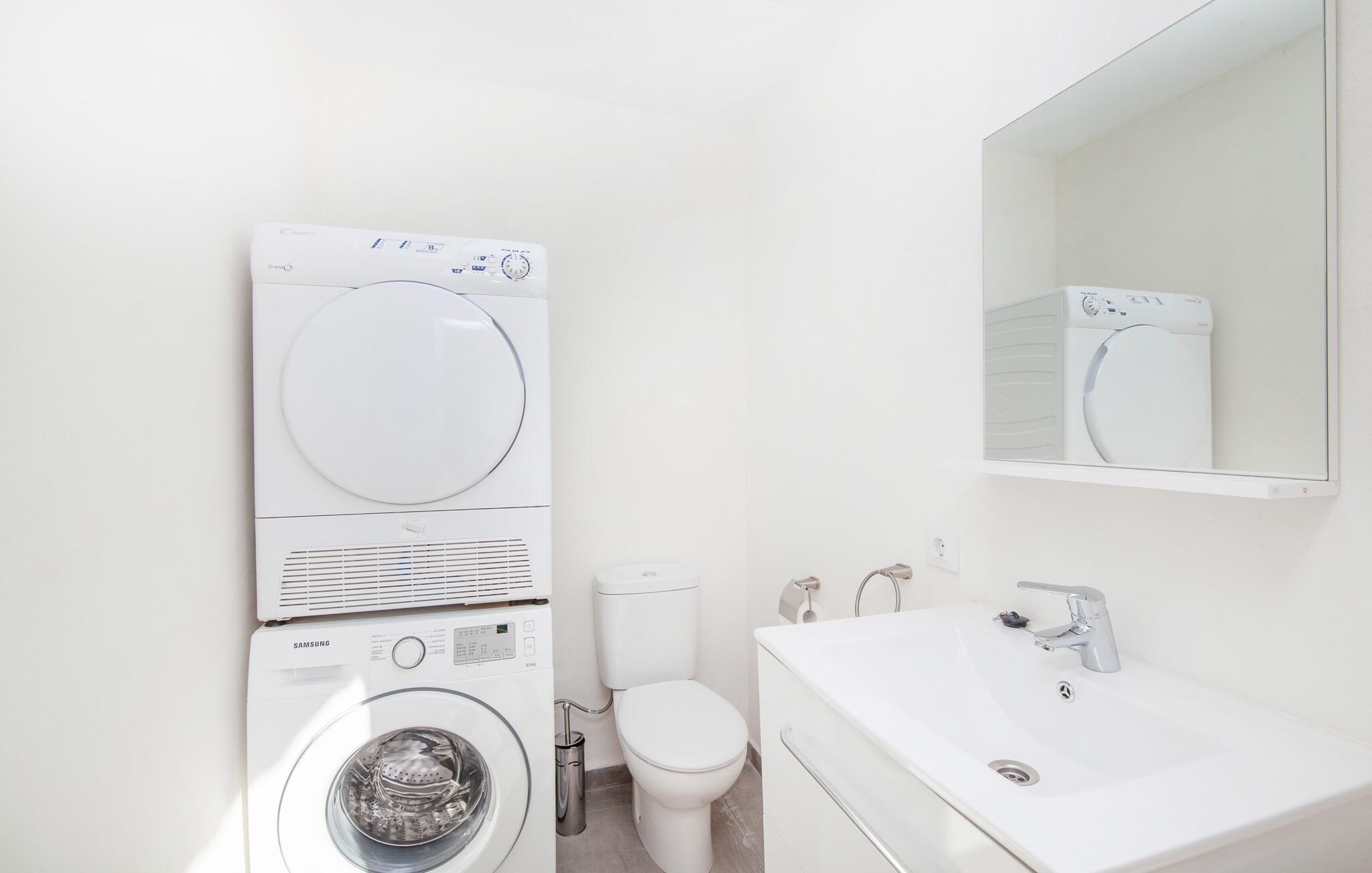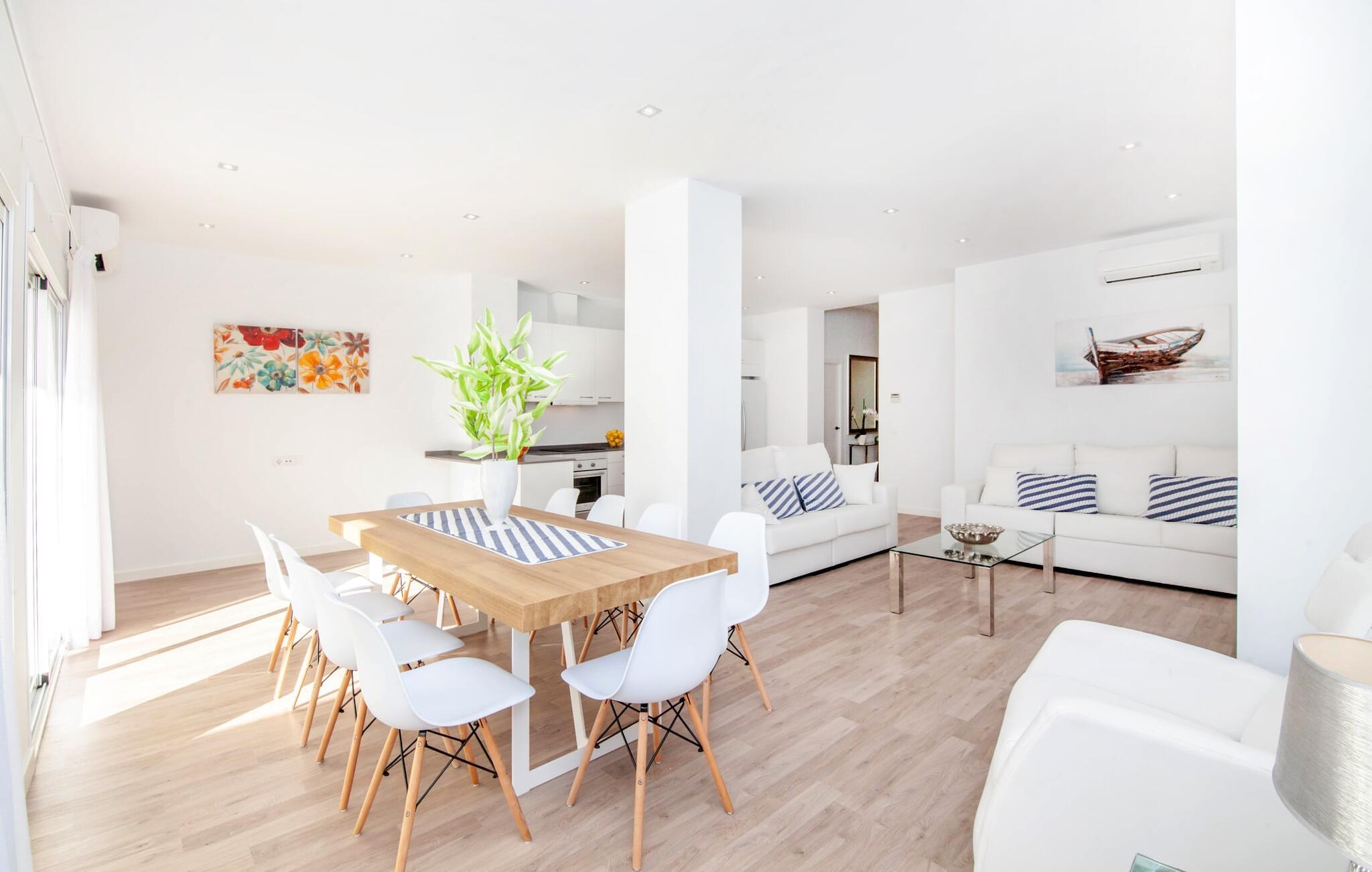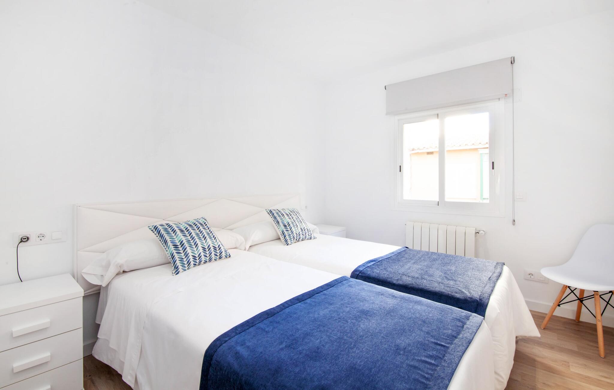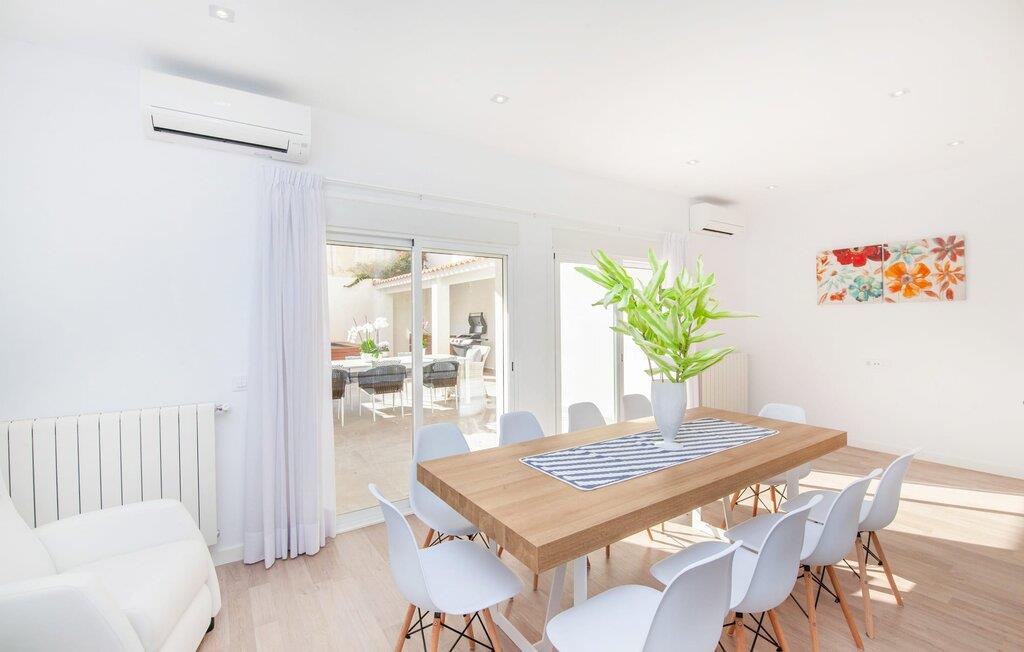Kan I indimellem godt lide at danse til jeres egen rytme? Er den klassiske mallorcanske stil med sandsten lidt for gammeldags til dig? Så prøv at leve helt i hvidt. Enhver, der kan lide dette klare udseende af lethed, vil elske det smukke rækkehus "Miquel Santandreu 40" i Palma. Den glitrende turkisblå pool indrammet af træ er et absolut blikfang i jeres brolagte gårdhave. Her kan I slappe af i middagssolen og nyde en siesta, mens butikkerne er lukkede. Den mobile grill under den overdækkede terrasse og det lange spisebord venter bare på, at I skal prøve den ene delikatesse efter den anden. På tagterrassen kan I nyde udsigten til den solrige øs blå himmel. Men først ting først, inden I går til første sal: I stueetagen kan I forvente et åbent design med masser af plads til jeres personlige ferieglæde. Det hvide, moderne køkken harmonerer perfekt med sofaen og spisepladsen. Takket være det store køleskab kan I holde mange af jeres hverdagsting friske. Hvis I får lyst til at lave mad, kan I gå i gang med det samme. Et soveværelse med dobbeltseng og toilet samt eget badeværelse fuldender indretningen af stueetagen. Med billeder af sejlbåde kan I endda mærke en let havbrise her i byen. En vindeltrappe og en trappe med moderne glasomgivelser tager jer til høje højder. Anden sal byder jer også velkommen med lyse hvide og subtile nuancer af blå. To soveværelser med dobbeltsenge og to værelser med enkeltsenge byder på masser af plads. Badeværelserne er ekstremt moderne takket være de få fliser på væggen. En stor fordel ved rækkehuset er, at I hurtigt kan nå jeres drømmedestinationer takket være gaden direkte foran huset. Det nærmeste supermarked ligger kun 400 m væk. Lufthavnen ligger kun 10 km væk, så I kan tjekke ind i jeres rækkehus praktisk talt, så snart I lander og ikke behøver at køre en lang køretur. Palma er hovedattraktionen på hele øen. Glem ikke at give nok tid til sightseeing og shopping, selvom I føler jer hjemme i jeres rækkehus. Det ugentlige marked i s'Arenal ligger kun 13 km væk. I kan også nyde den strålende green på den nærliggende golfbane, som ligger kun 6 km væk. Med dette rækkehus kan I være sikker på, at alle vil finde passende aktiviteter i umiddelbar nærhed: uanset om de er festdeltagere, dem, der søger fred og ro, byboere eller strandelskere. Turen langs Platja de Palma er omkring 10 km lang. Mallorcas hjerte ligger i Palma. Så meget desto bedre venter det smarte rækkehus "Miquel Santandreu 40", hvor I kan nyde afslappende stunder på trods af det livlige byliv. Leder I efter sightseeing i den gamle bydel, eller elsker I omfattende shoppingture i trendy butikker eller hele festlivet i s'Arenal? I øens hovedstad finder I alt, hvad I leder efter på jeres solrige ø. Og selvfølgelig kan havet hurtigt nås. Den berømte Platja de Palma ligger omkring 10 km væk.
