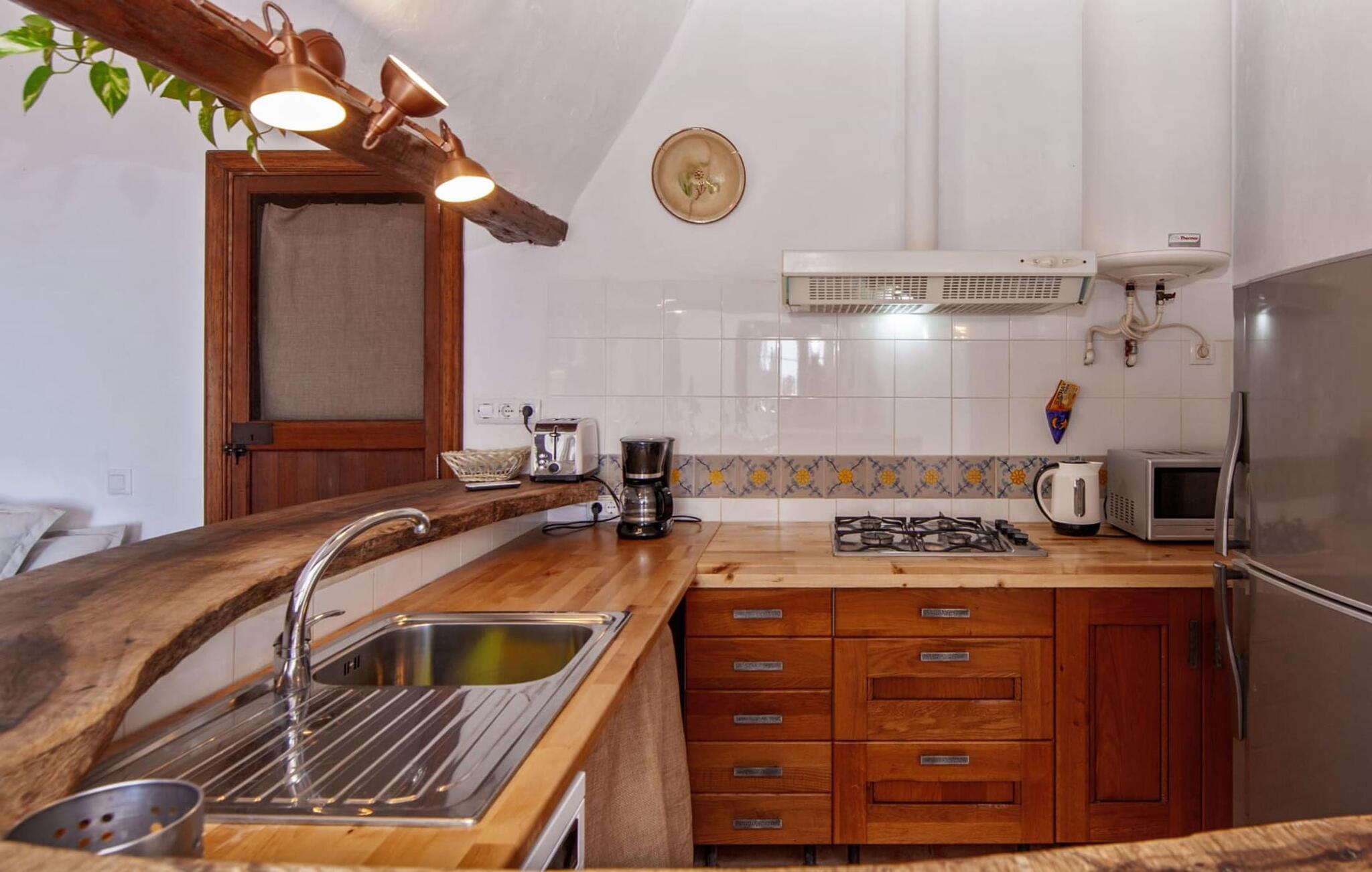 Dette autentiske feriehus "Miranda" er beliggende over havet i den vestlige del af Mallorca, beliggende mellem de charmerende landsbyer i Valldemossa og Deia Villaen er ideel for dem, der ønsker at værdsætte roen i vest og udforske nærliggende bugter såsom Cala Deia, den har en afsondret 2.000 m² bjergskråningsejendom med en betagende udsigt Terrasser, der fører til en pool, der inviterer dig til at slappe af og nyde betagende solnedgange. Poolen, der er tilgængelig via en stige, er dekoreret med blå mosaikfliser. Der er komfortable liggestole til solbadning, og der er en grillplads ved siden af huset plads Indenfor udstråler en-etagers villa en rustik charme, med flere vinduer, der indrammer den majestætiske havudsigt. Det omfatter to pænt møblerede soveværelser med dobbeltsenge, et badeværelse, en rummelig stue med pejs og et rustikt køkken, der er udstyret til selvforplejning. Bemærk venligst, at denne ejendom ikke er egnet til familier med små børn på grund af dens beliggenhed ved klippen og delvist sikrede udvendige trapper. Den muntre villa "Miranda" ligger afsondret på Mallorcas spektakulære vestkyst og byder på en opsigtsvækkende udsigt over øens smukkeste kyststrækning. Den ligger 400 m over havets overflade og er omkring 5 minutters kørsel fra de maleriske landsbyer Deìa og Valldemossa har begge barer, restauranter og et stort supermarked. Den betagende badebugt Cala Deìa ligger kun 8 minutter væk i bil.
