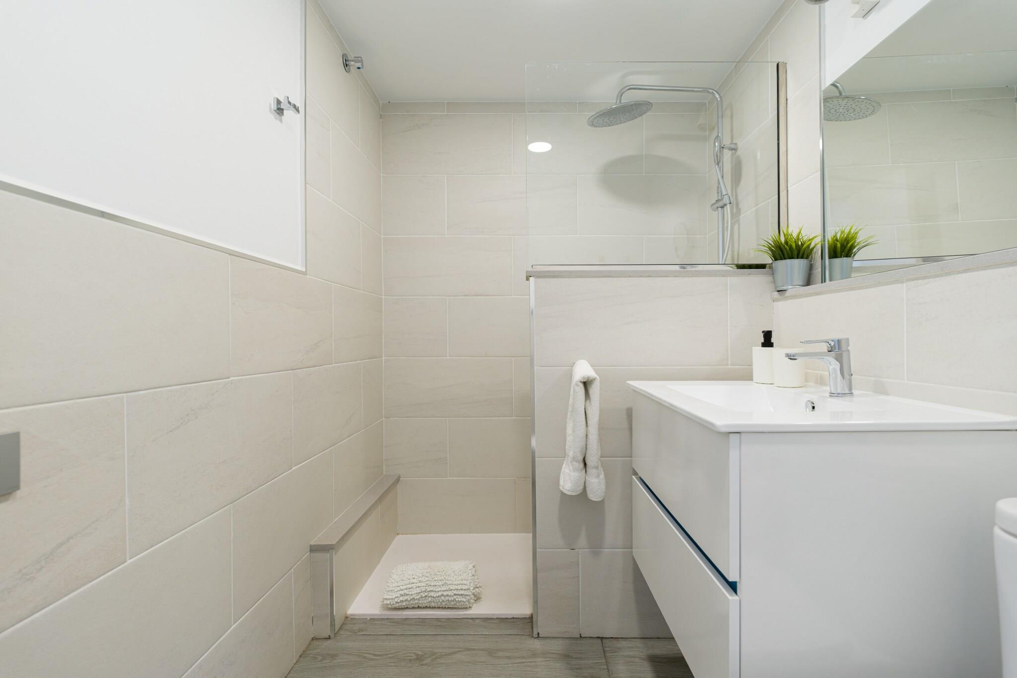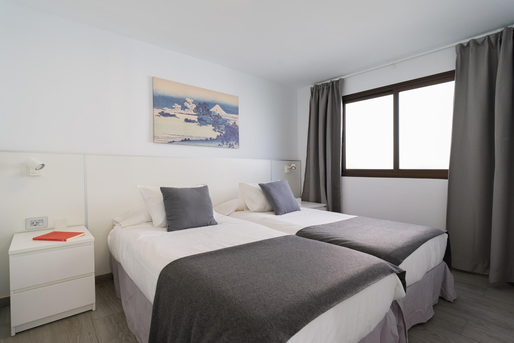 Nyd et afslappende ophold i dette lyse og hyggelige 2-værelses hus i Mogán, ideelt for op til 3 gæster. Med 50 m² plads er denne lyse bolig perfekt til små familier eller par, der søger ro nær havet. Huset byder på en privat have med havemøbler, en 8 m² stor terrasse og adgang til en fælles swimmingpool - ideel til afkøling på solrige dage. Beliggende kun 600 meter fra Playa de Puerto Rico og en kort gåtur fra supermarkeder, restauranter og offentlig transport, er dette hjem godt forbundet, men alligevel fredeligt. Nærliggende attraktioner omfatter Anfi Tauro Golf (4 km), Playa del Cura (5 km), Pueblo de Mogán (10 km), Holiday World (19 km) og Aqualand Maspalomas (21 km). Gran Canaria Lufthavn ligger 49 km derfra. Hjemmet er fuldt udstyret med det væsentlige, herunder Wi-Fi, en vaskemaskine, strygejern, ventilator, hårtørrer og satellit-tv med flersprogede kanaler. Det åbne køkken har en keramisk kogeplade, køleskab, mikroovn, fryser, kaffemaskine, kedel, brødrister, juicer og komplet køkkenudstyr til at tilberede måltider derhjemme. Uanset om du planlægger stranddage, naturudflugter eller rolige aftener i haven, tilbyder dette charmerende tilflugtssted i et familievenligt område den ideelle base for din ferie på Gran Canaria.