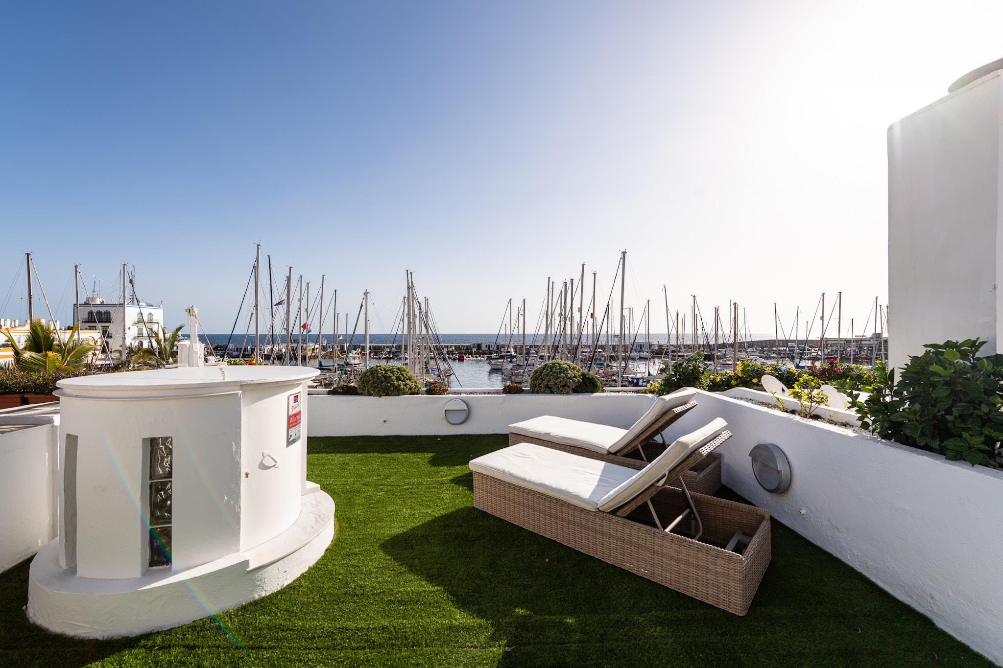 Oplev ro og betagende solopgange på denne charmerende indkvartering i Puerto de Mogán, ofte omtalt som "Lille Venedig" på De Kanariske Øer. Med en privat terrasse med udsigt over lystbådehavnen er dette hyggelige hus med to soveværelser og to badeværelser det perfekte sted for dem, der sætter pris på en fantastisk udsigt og fredfyldte omgivelser. Det er designet til din komfort og har faciliteter såsom ubegrænset Wi-Fi, et smart-tv og aircondition overalt. Du kan slappe af på balkonen, nyde den utrolige havudsigt eller slappe af på det private solarium udstyret med liggestole, en grill og en udendørs bruser, alt sammen let tilgængeligt, når du træder ind i ejendommen. Beliggende i en malerisk lystbådehavn tilbyder Mogán en række fremragende restauranter, supermarkeder og nødvendige faciliteter, hvilket gør det til et bekvemt sted for dit ophold. Dette fortryllende område i den sydvestlige del af Gran Canaria fremviser en harmonisk blanding af både, fiskefartøjer og yachter sammen med dens uberørte hvide sandstrand, hvilket styrker dens status som et af de mest tiltalende turiststeder på øen. Kendt for at have et af de bedste klimaer i verden, er det et idyllisk sted for en ferie. Bemærk venligst, at denne ejendom er beliggende i et boligområde, hvor stilhed og hensyn til naboer er i højsædet. En baby op til to år kan overnatte gratis i en barneseng, og en høj stol er tilgængelig efter anmodning.