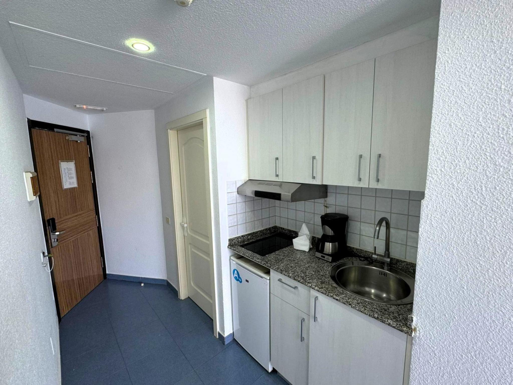 "Playa del Cura 3", 2-room apartment 45 m2. Object suitable for 2 adults. Very comfortable and cosy furnishings: living room with TV, flat screen and air conditioning. Exit to the terrace. 1 room with 2 beds (90 cm, length 190 cm), air conditioning. Exit to the terrace. Open kitchen (oven, dishwasher, 4 ceramic glass hob hotplates, toaster, kettle, microwave, freezer, electric coffee machine). Shower/WC. Terrace furniture. Beautiful view of the sea. Facilities: washing machine, dryer, iron, children's high chair, baby cot for up to 2 year olds, hair dryer. Internet (WiFi, free). Please note: non-smokers only. 2024-T18639