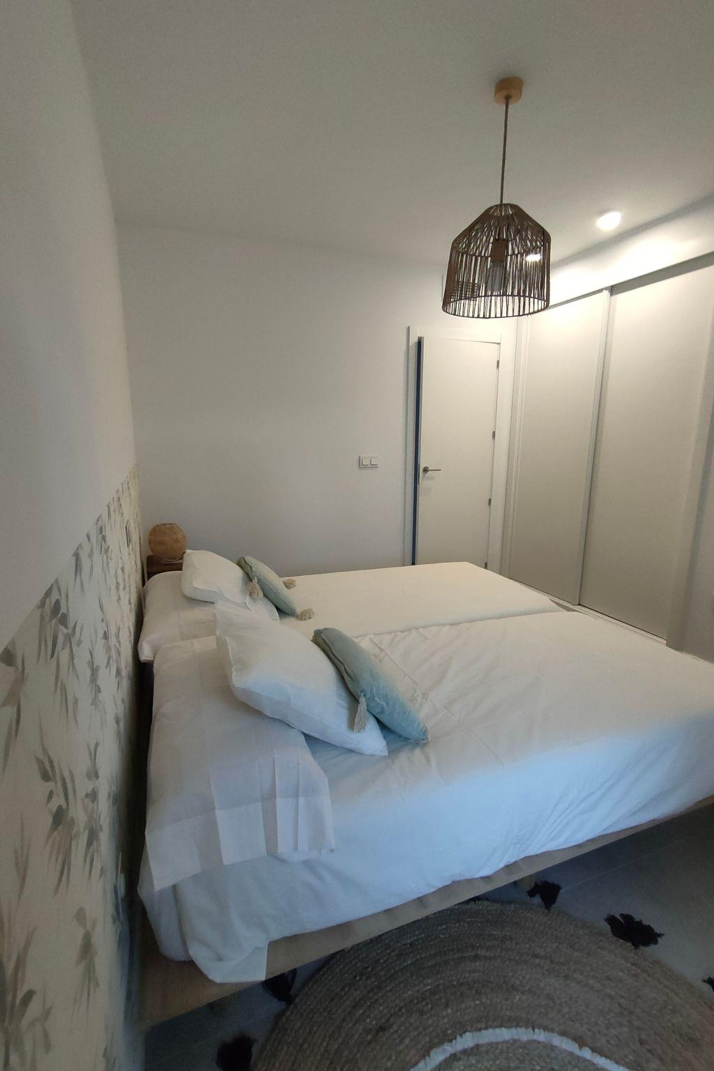 It is a 60m2 flat with two bedrooms: one with a 150cm bed and private bathroom, another bedroom with two 90cm beds on a tatami type base that you can transform into a 180cm bed. Both bedrooms have built-in wardrobes. There are two bathrooms: one common and one private to one of the bedrooms. There is a living room/kitchen with direct access to the terrace. All the big and small appliances at your disposal. In the living room you have a sofa that converts into a 135 cm bed, as well as a 55" TV with streaming channels and digital tuner to watch European digital channels and a 600mb wifi with the possibility of cable network. In addition to having air conditioning / central heating in all rooms.