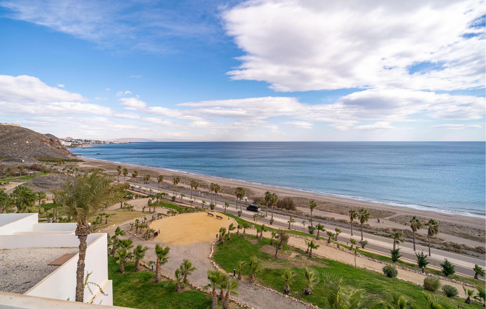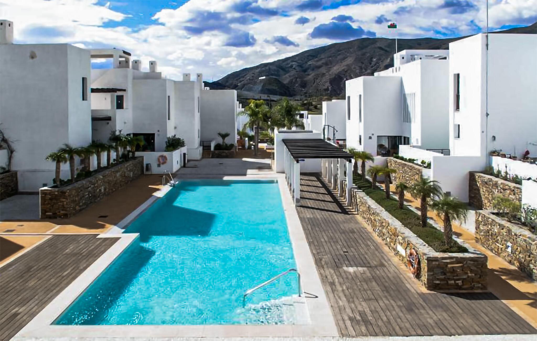 Tag den lille familie under armen og rejs til Mojacar, hvor denne stilfulde lejlighed bliver jeres base for en allelunde dejlig ferie. Prikken over i'et er den storslåede panoramaudsigt, som kan nydes fra stuen, fra jeres altan og fra den fælles pool. Begynd blot dagen med en lækker morgenmad på altanen, inden I begiver jer ned til dagens første dyp. Køl jer af i det lækre vand, bad i solen på en liggestol og læs en god bog, inden I begiver jer på udflugt i området.